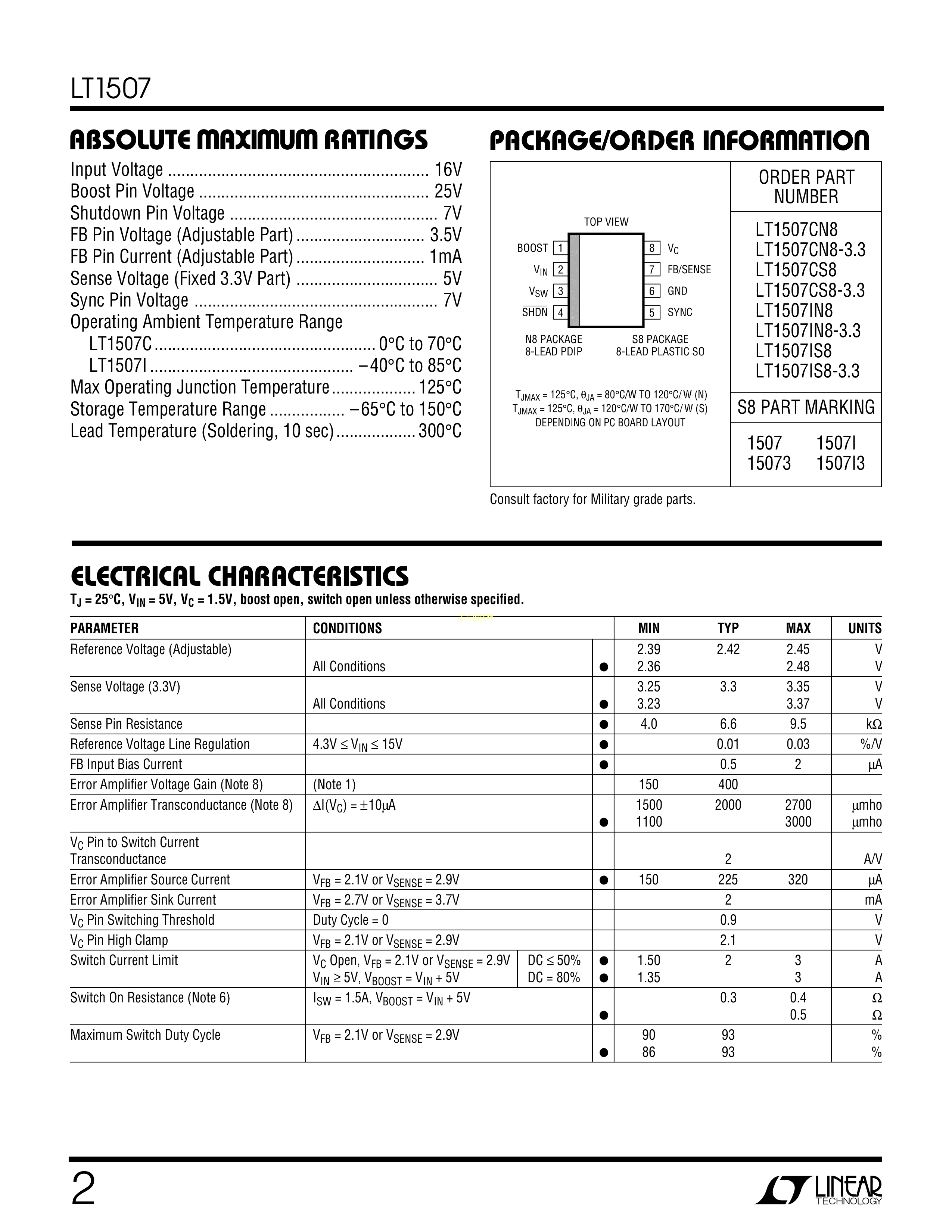 LT1507IS8-3.3#TRPBF数据手册SO-8封装ADI(亚德诺)-LINEARPDF规格书