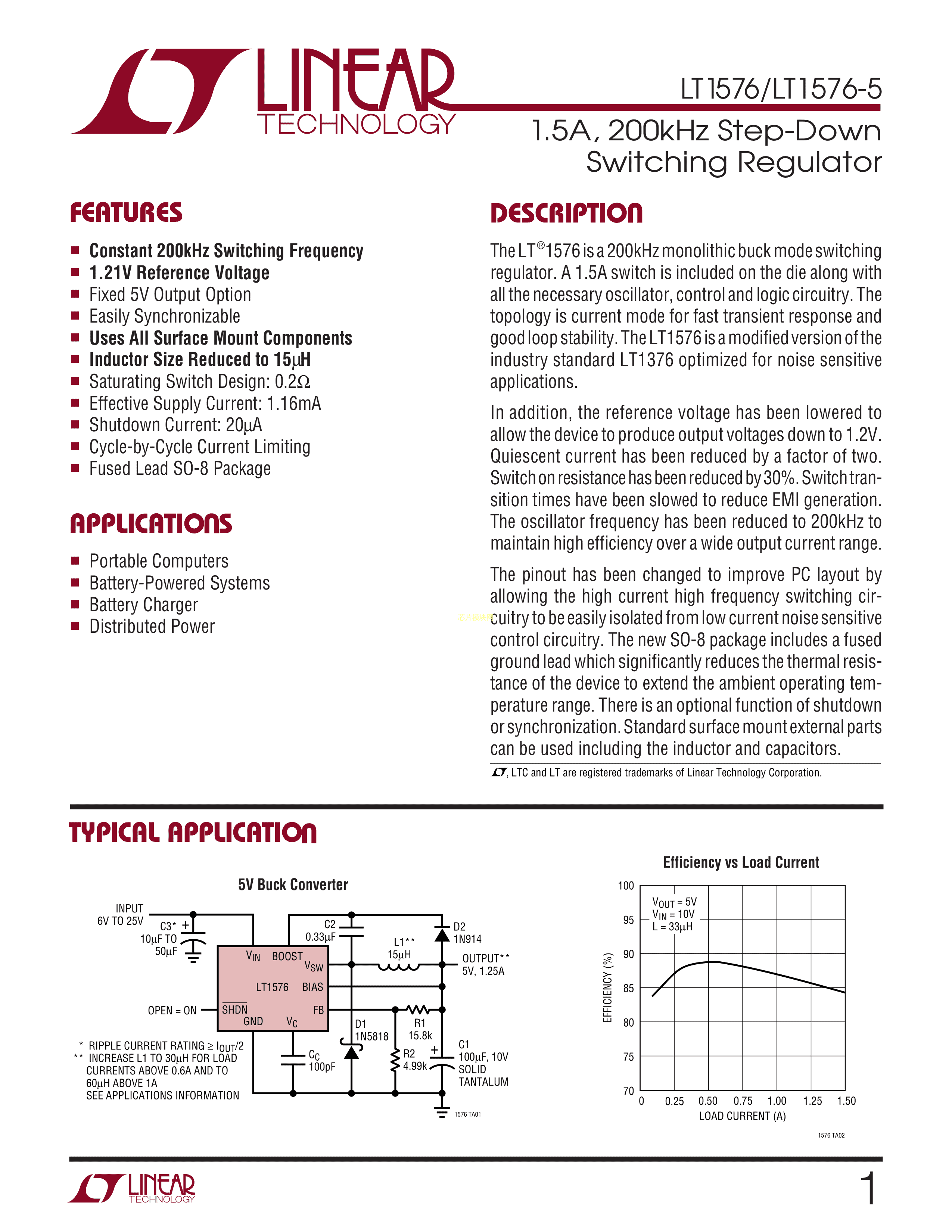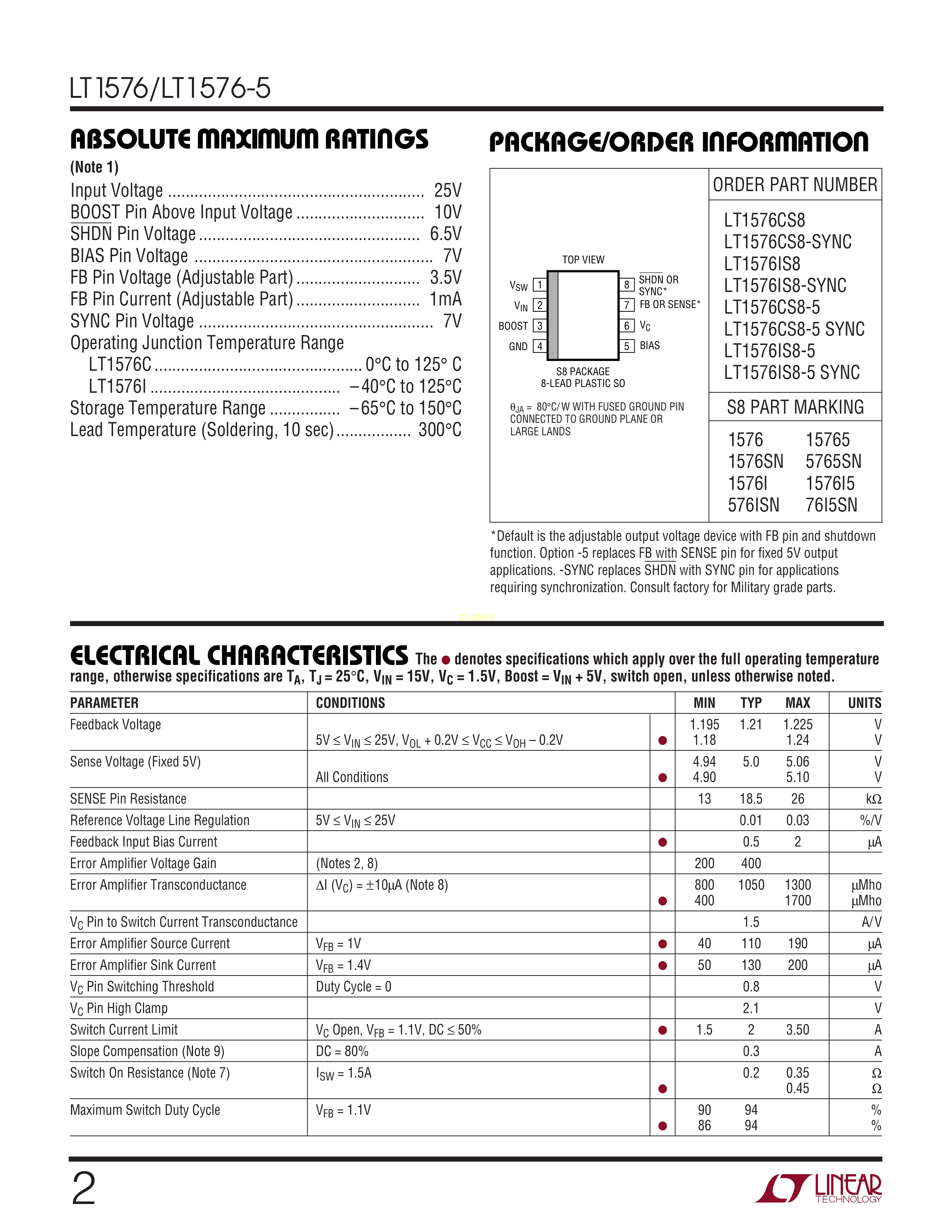 LT1576CS8-5SYNC#PBF数据手册SO-8封装ADI(亚德诺)-LINEARPDF规格书