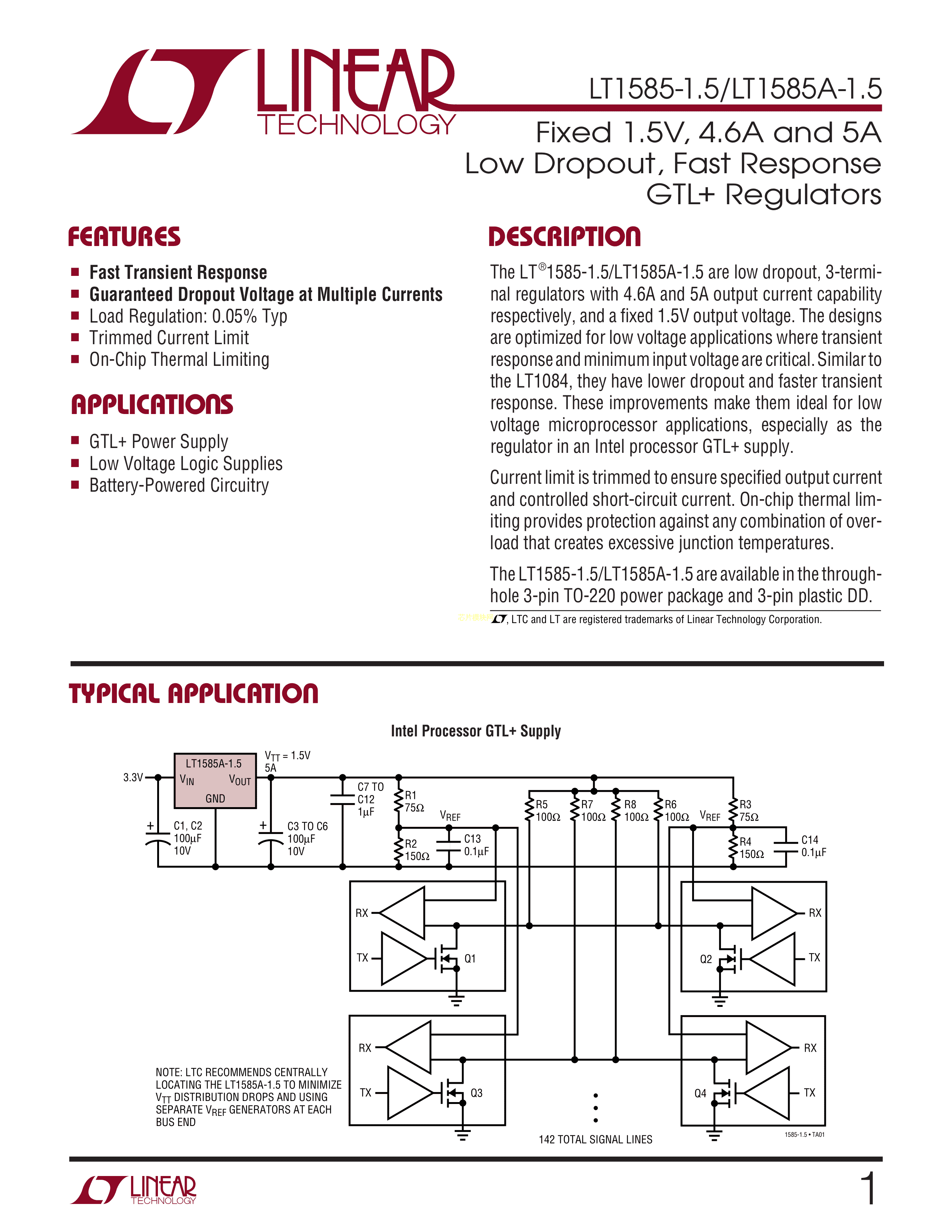 LT1585CM-1.5#PBF数据手册DDPAK-3封装ADI(亚德诺)-LINEARPDF规格书,中英文下载