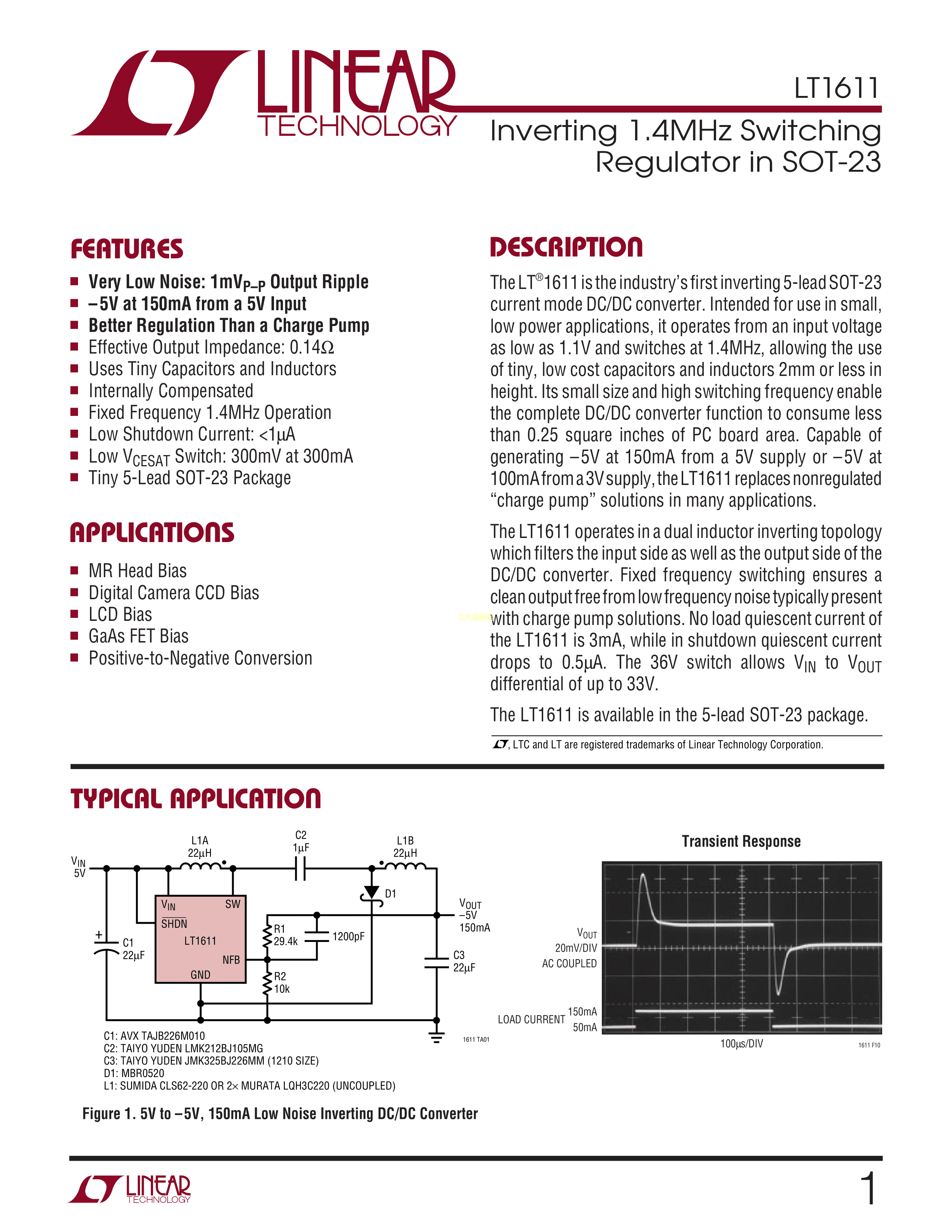 LT1611CS5#PBF数据手册SOT-23-5封装ADI(亚德诺)-LINEARPDF规格书,中