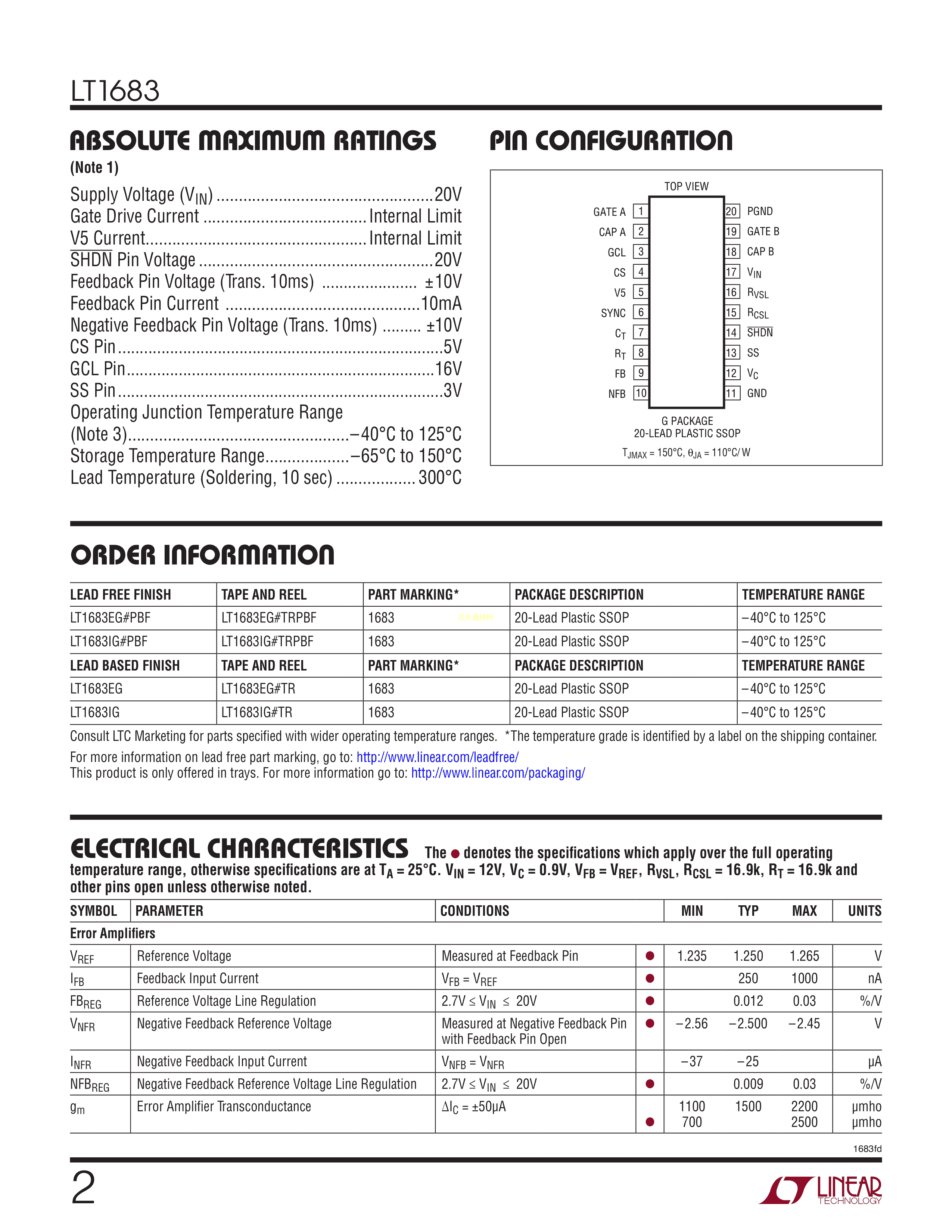 LT1683EG#TRPBF数据手册SSOP-20封装ADI(亚德诺)-LINEARPDF规格书,中