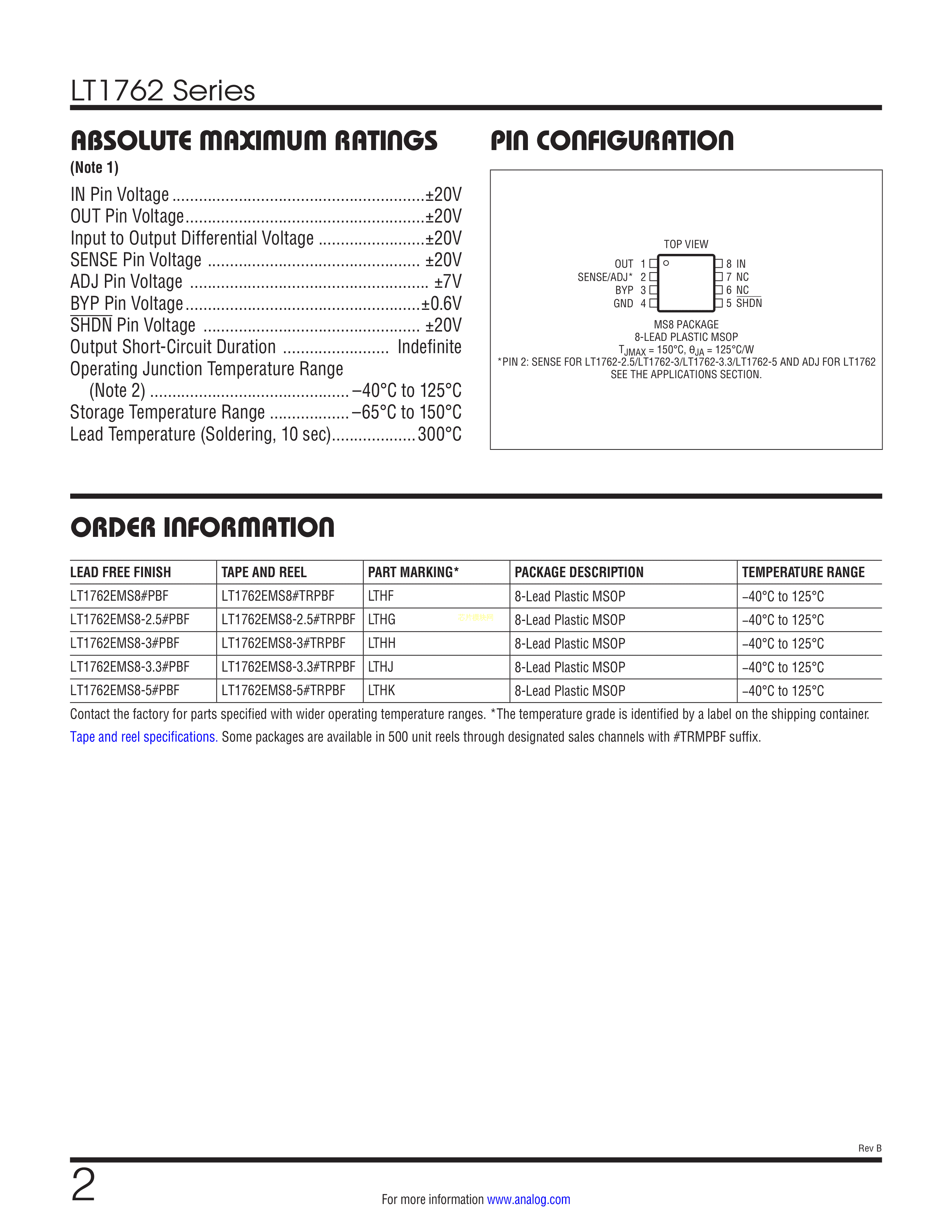 LT1762EMS8-3#PBF数据手册MSOP-8封装ADI(亚德诺)-LINEARPDF规格书,