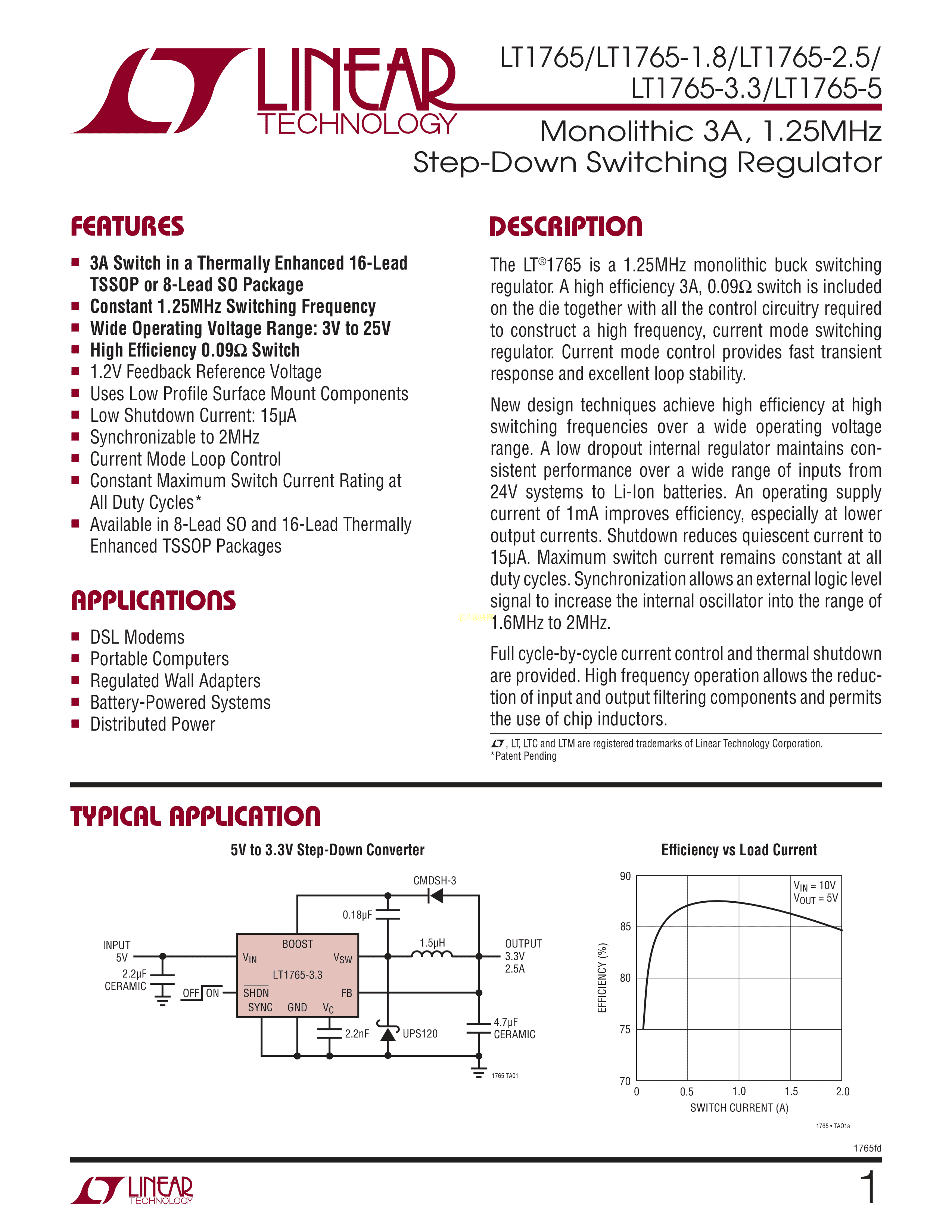LT1765EFE-3.3#PBF数据手册TSSOP-16封装ADI(亚德诺)-LINEARPDF规