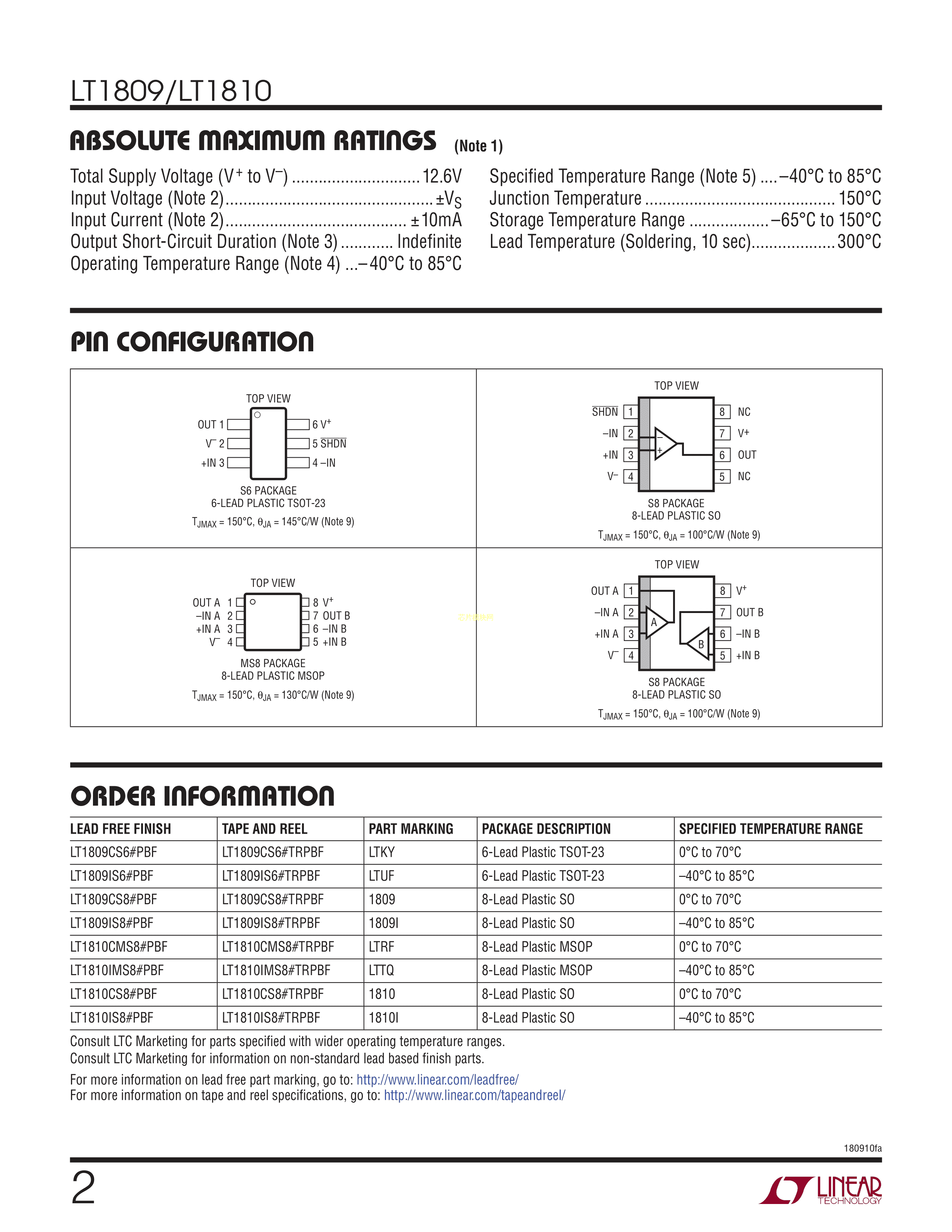 LT1809IS6#TRMPBF数据手册TSOT-23-6封装ADI(亚德诺)-LINEARPDF规格书,中英文下载