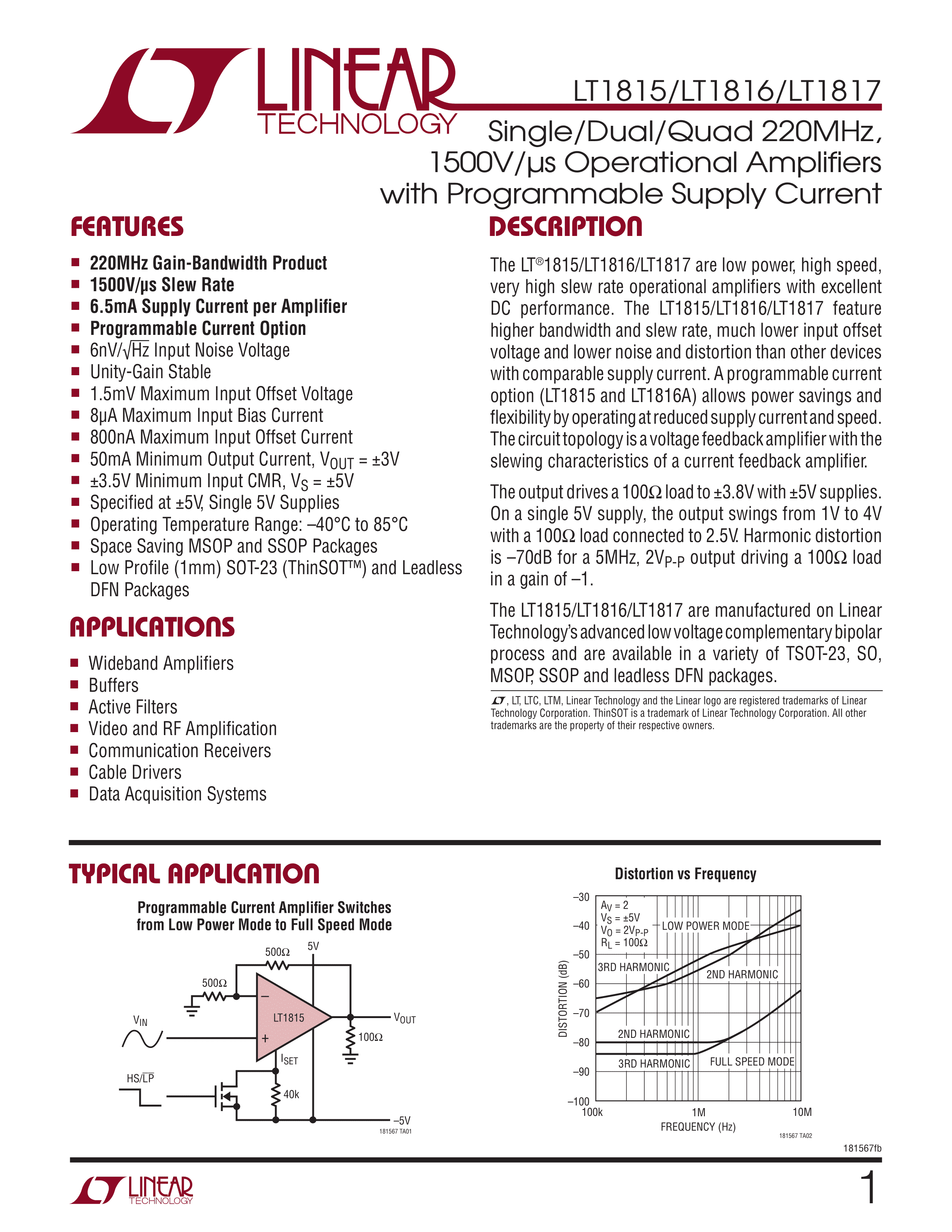 LT1816ACMS#PBF数据手册MSOP-10封装ADI(亚德诺)-LINEARPDF规格书,中