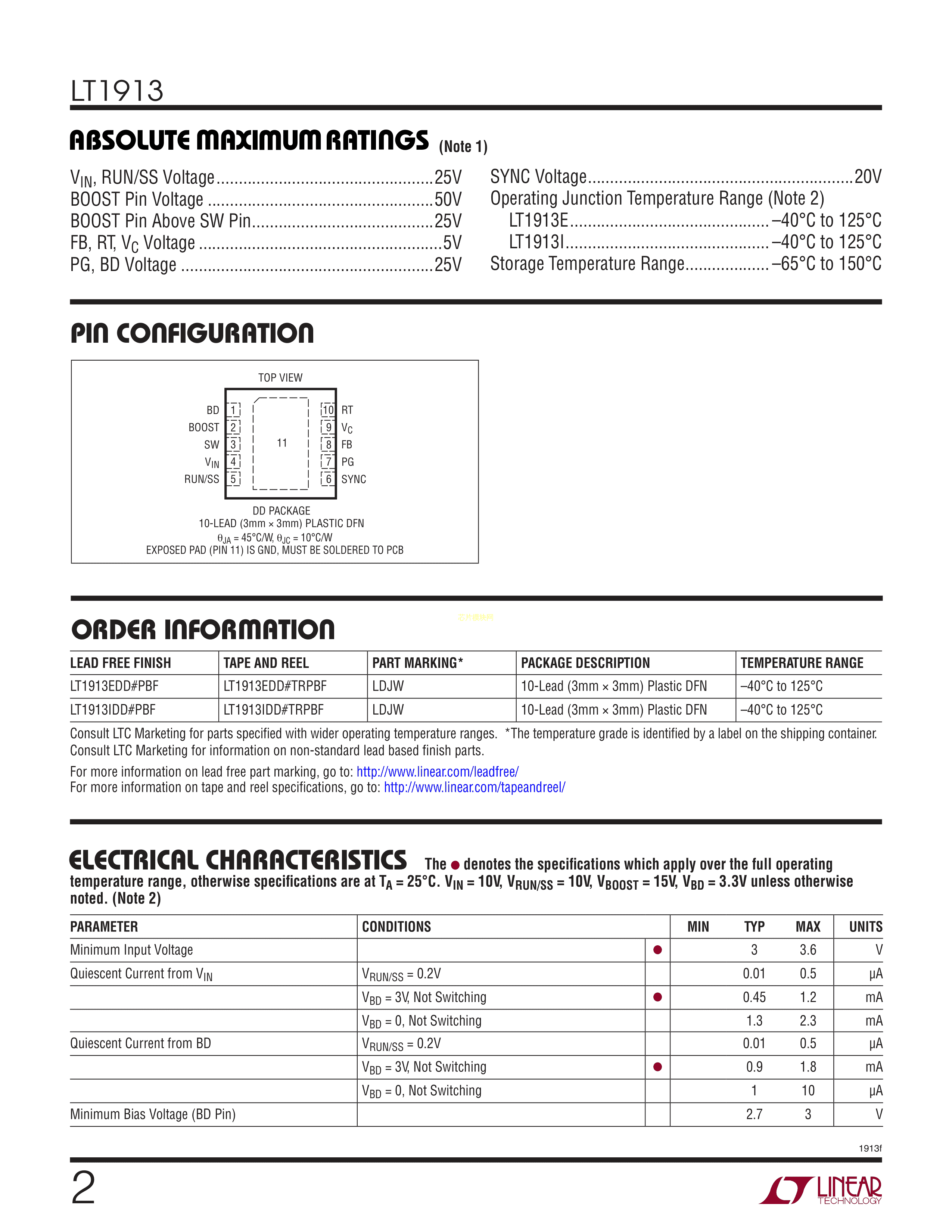 LT1913EDD#TRPBF数据手册DFN-10封装ADI(亚德诺)-LINEARPDF规格书,中