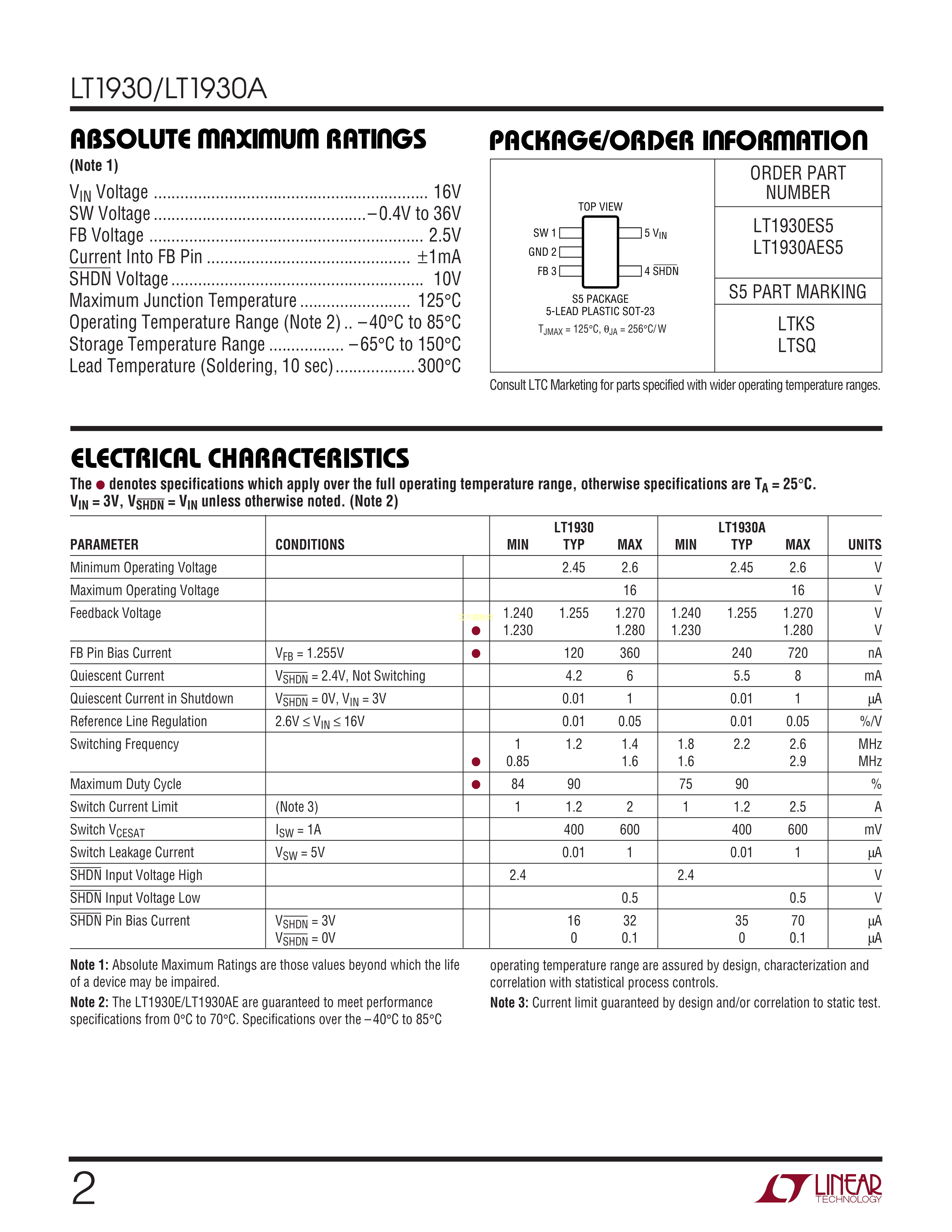 LT1930AES5#PBF数据手册SOT-23-5封装ADI(亚德诺)-LINEARPDF规格书,