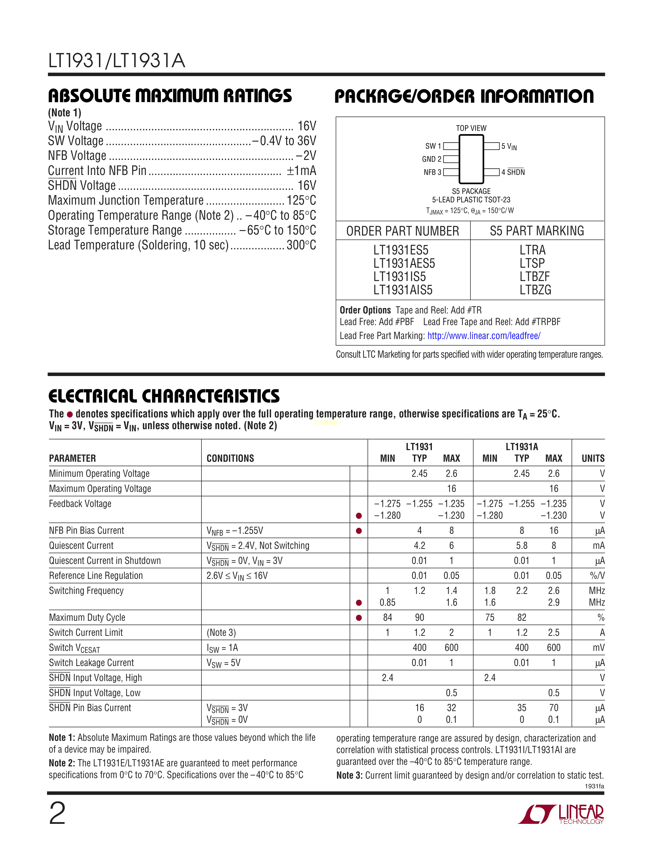 LT1931AES5#TRMPBF数据手册TSOT-23-5封装ADI(亚德诺)-LINEARPDF