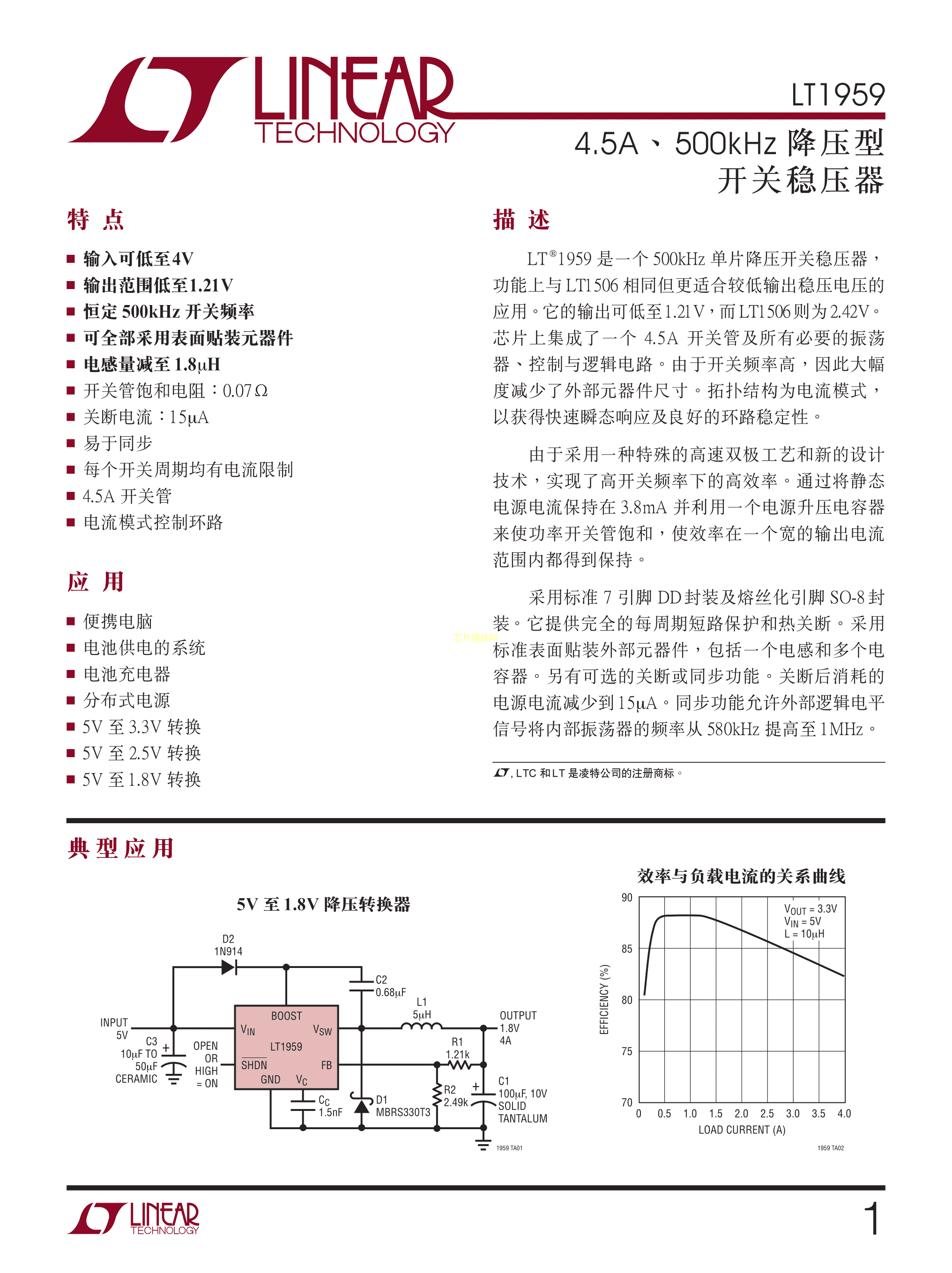 LT1959CR#TRPBF数据手册DDPAK-7封装ADI(亚德诺)-LINEARPDF规格书,中