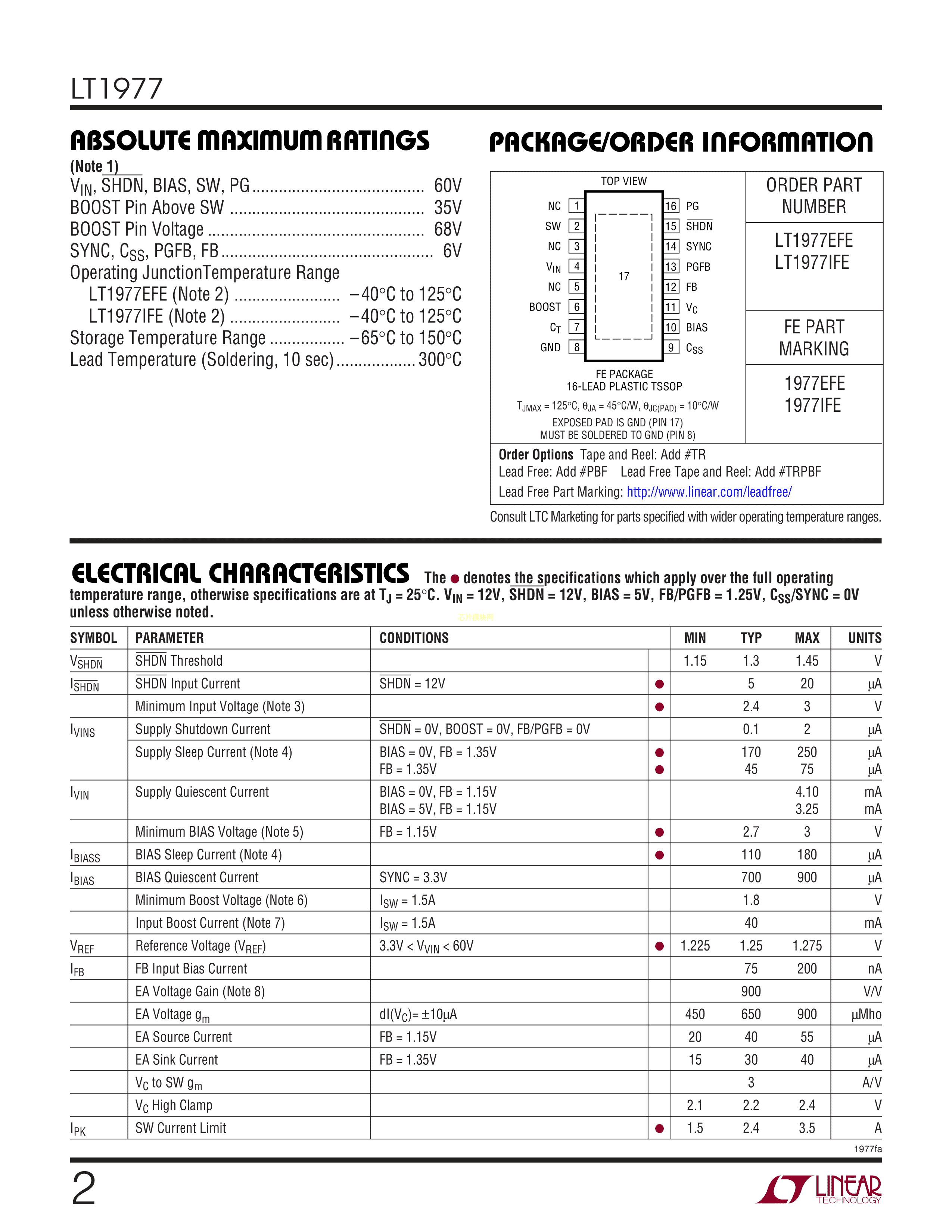 LT1977IFE#TRPBF数据手册TSSOP-16封装ADI(亚德诺)-LINEARPDF规格书