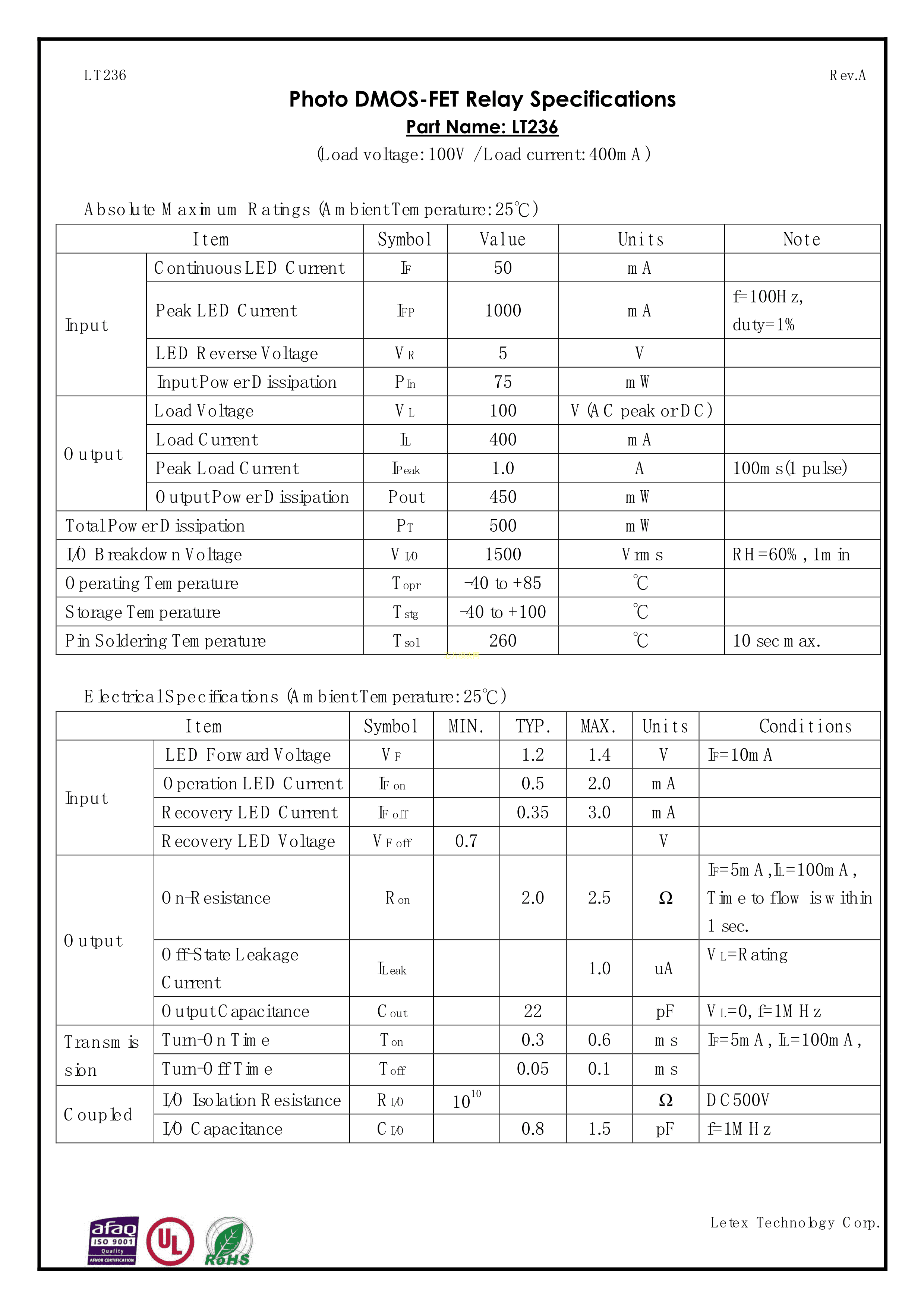 LT236数据手册SOP-4封装Letex(丽太)PDF规格书,中英文下载