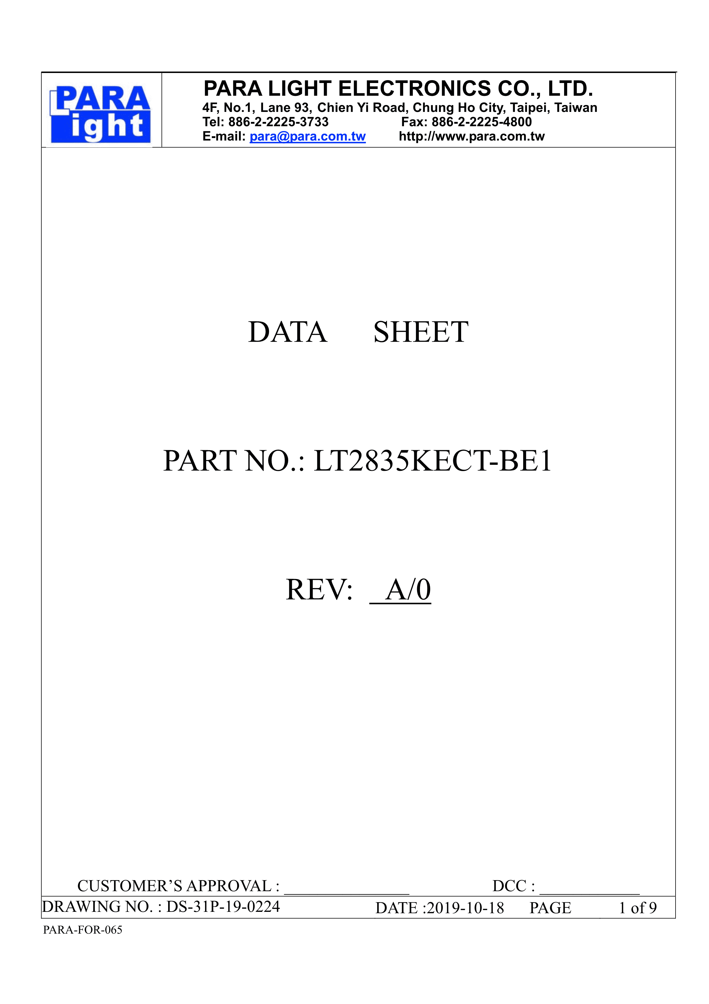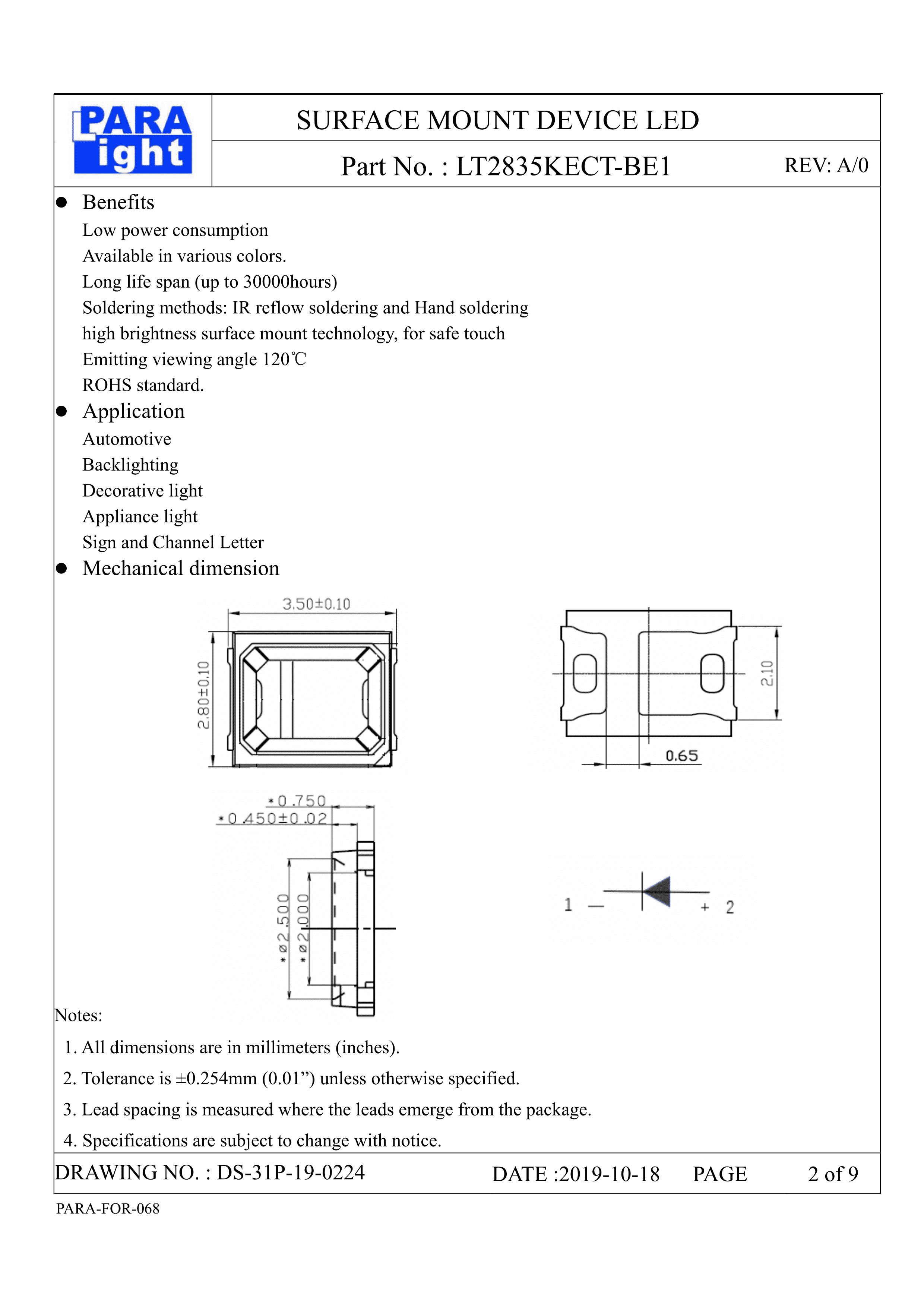 LT2835KECT-BE1数据手册SMD封装PARALIGHT(台湾光鼎)PDF规格书,中英文下载