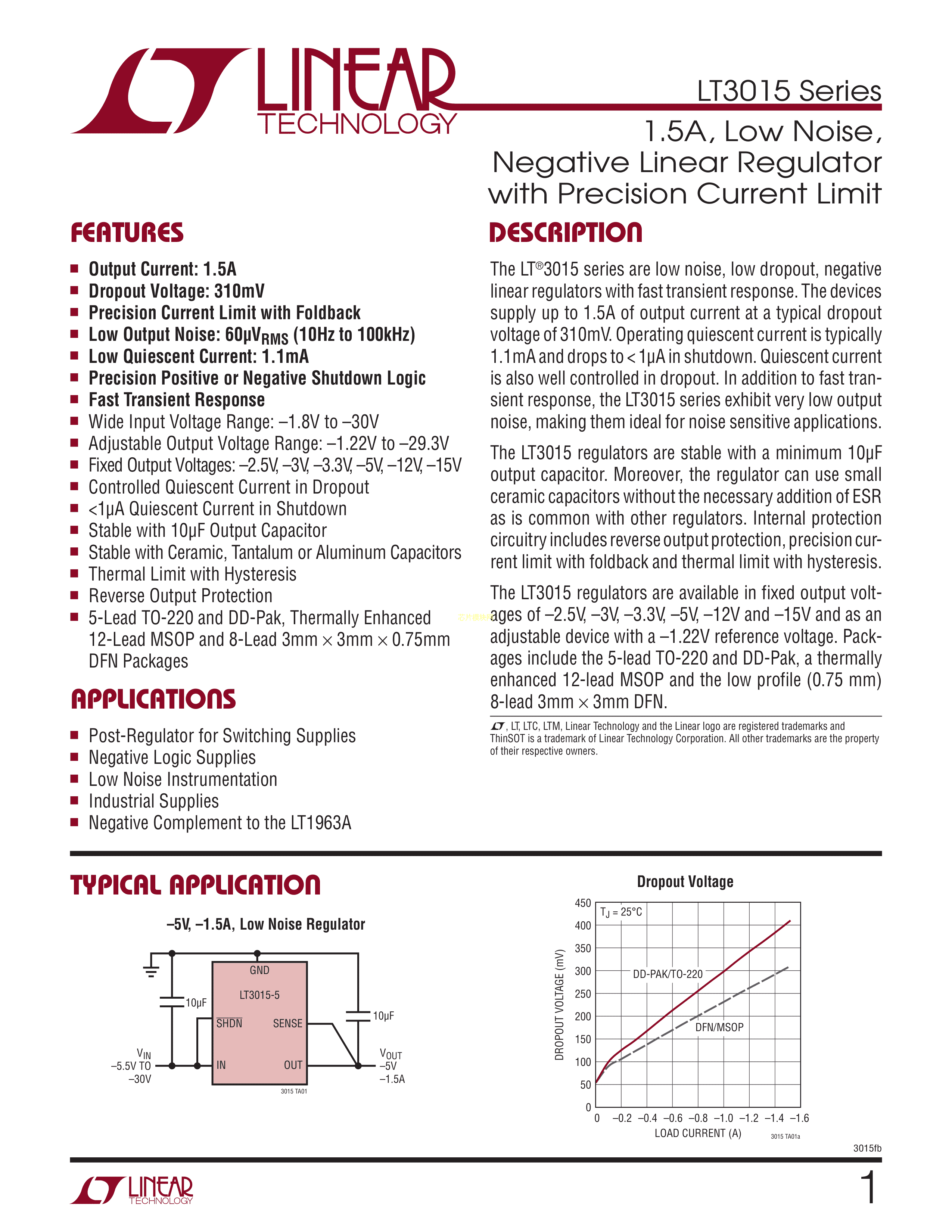 LT3015EQ#PBF数据手册DDPAK-5封装ADI(亚德诺)-LINEARPDF规格书,中英文