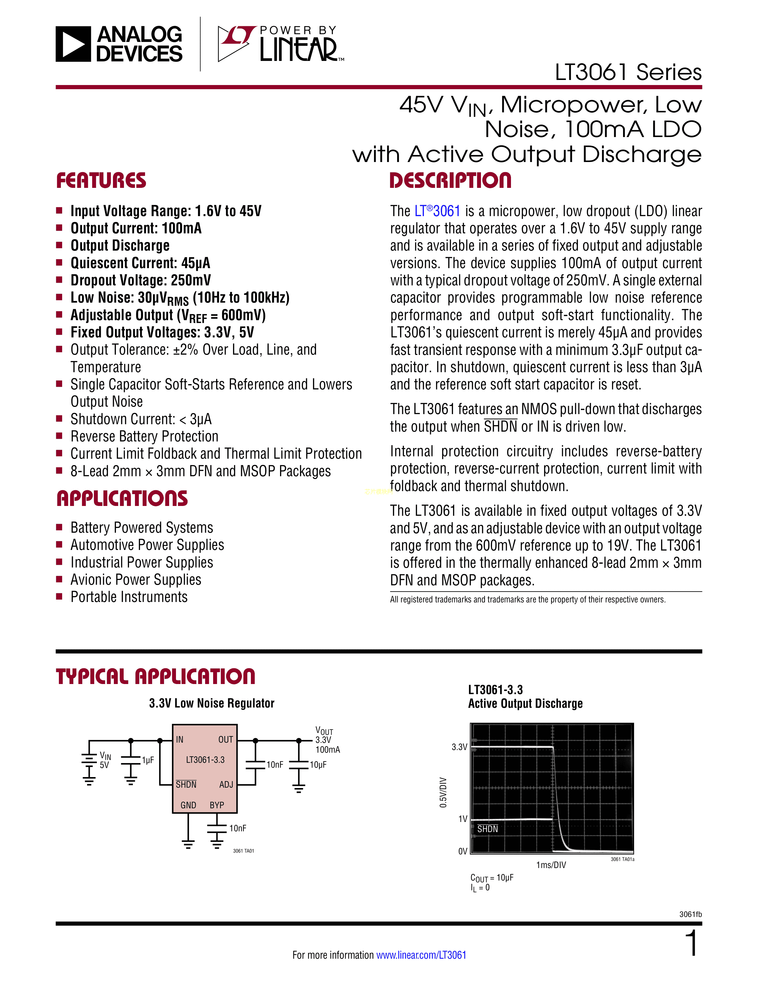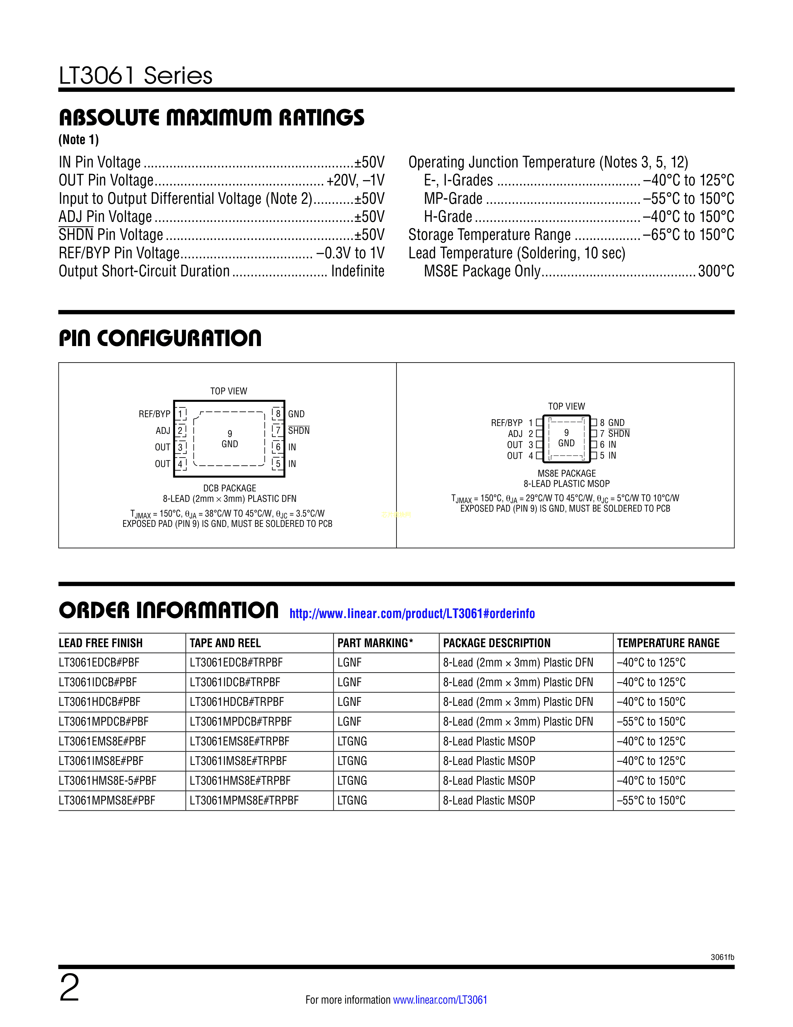 LT3061IMS8E#PBF数据手册MSOP-8封装ADI(亚德诺)-LINEARPDF规格书,中
