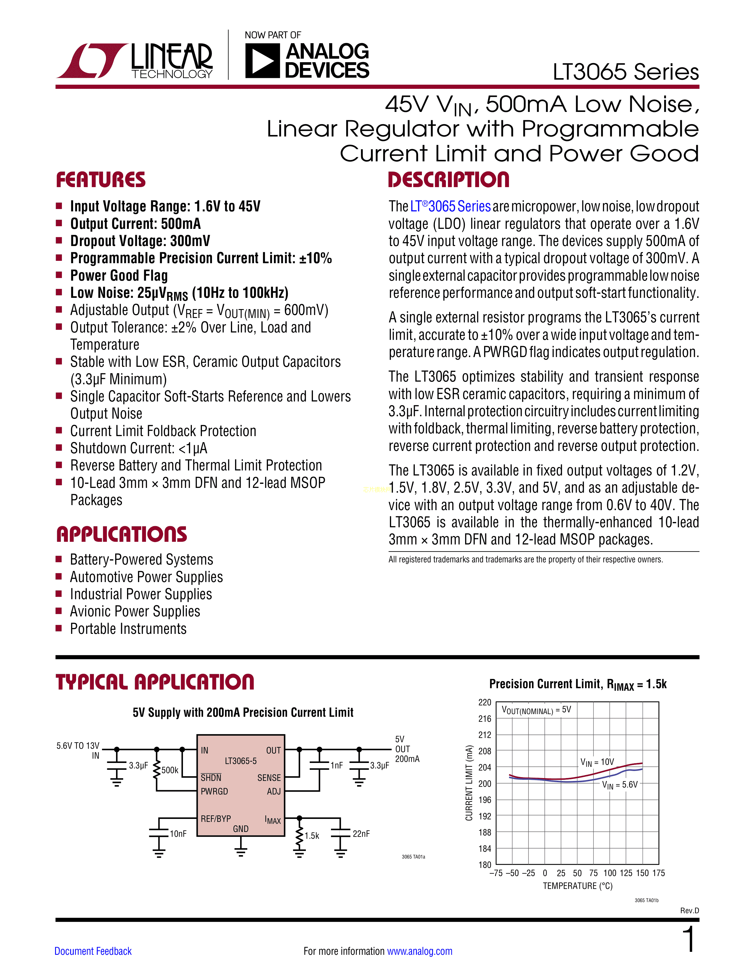 LT3065IDD-1.8#TRPBF数据手册DFN-10封装ADI(亚德诺)-LINEARPDF规