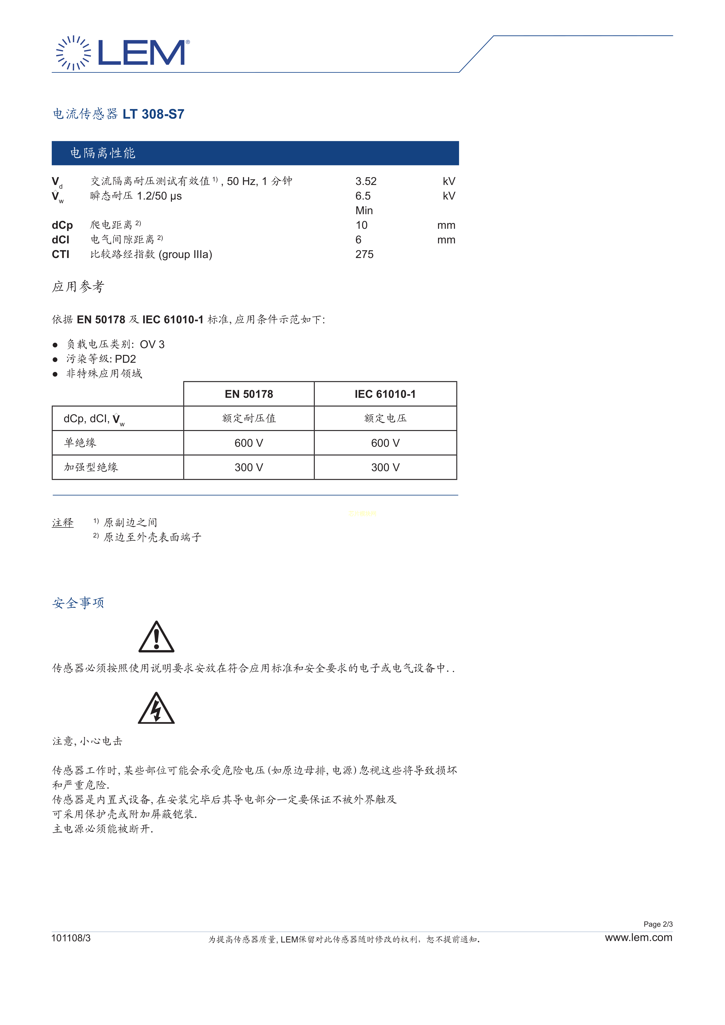 LT308-S7数据手册-封装LEM(莱姆)PDF规格书,中英文下载