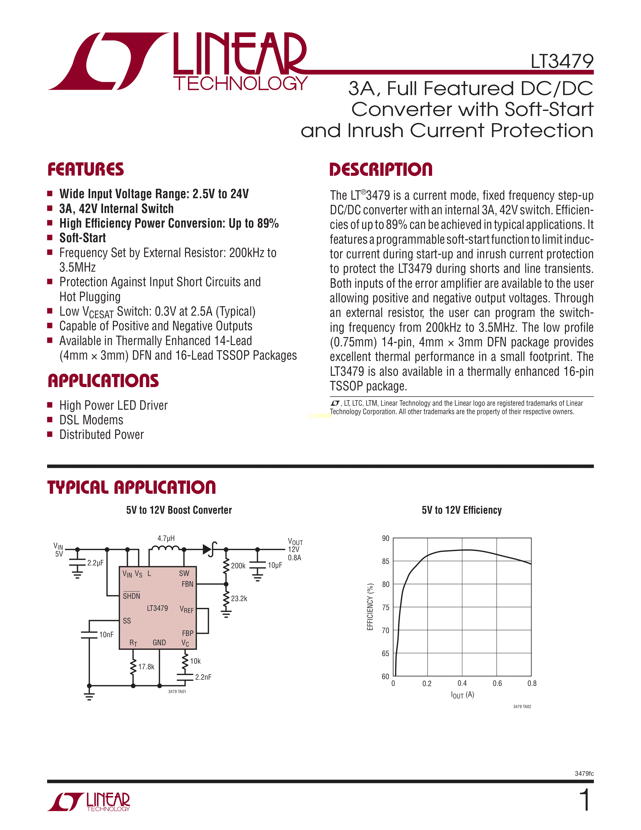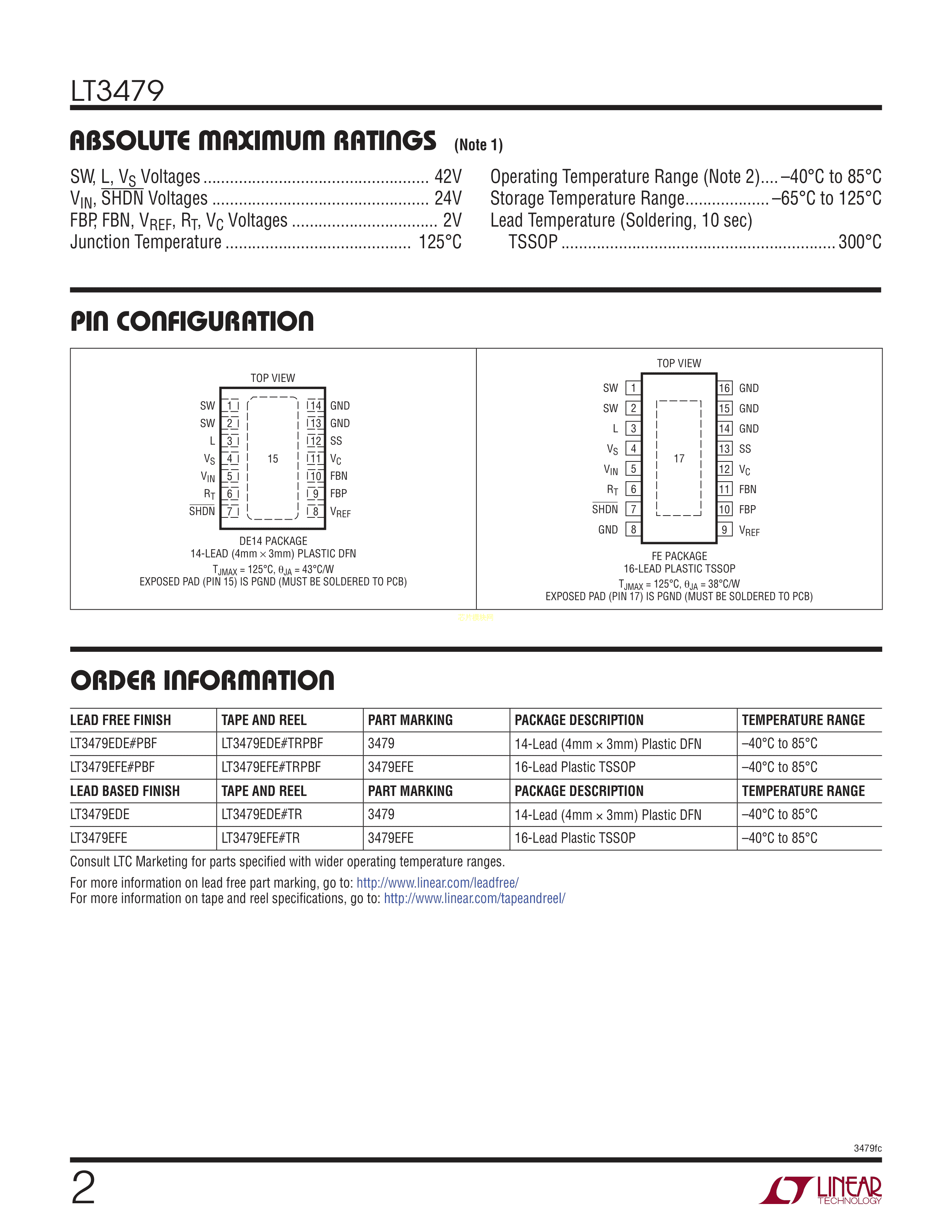 LT3479EDE#PBF数据手册DFN-14封装ADI(亚德诺)-LINEARPDF规格书,中英文