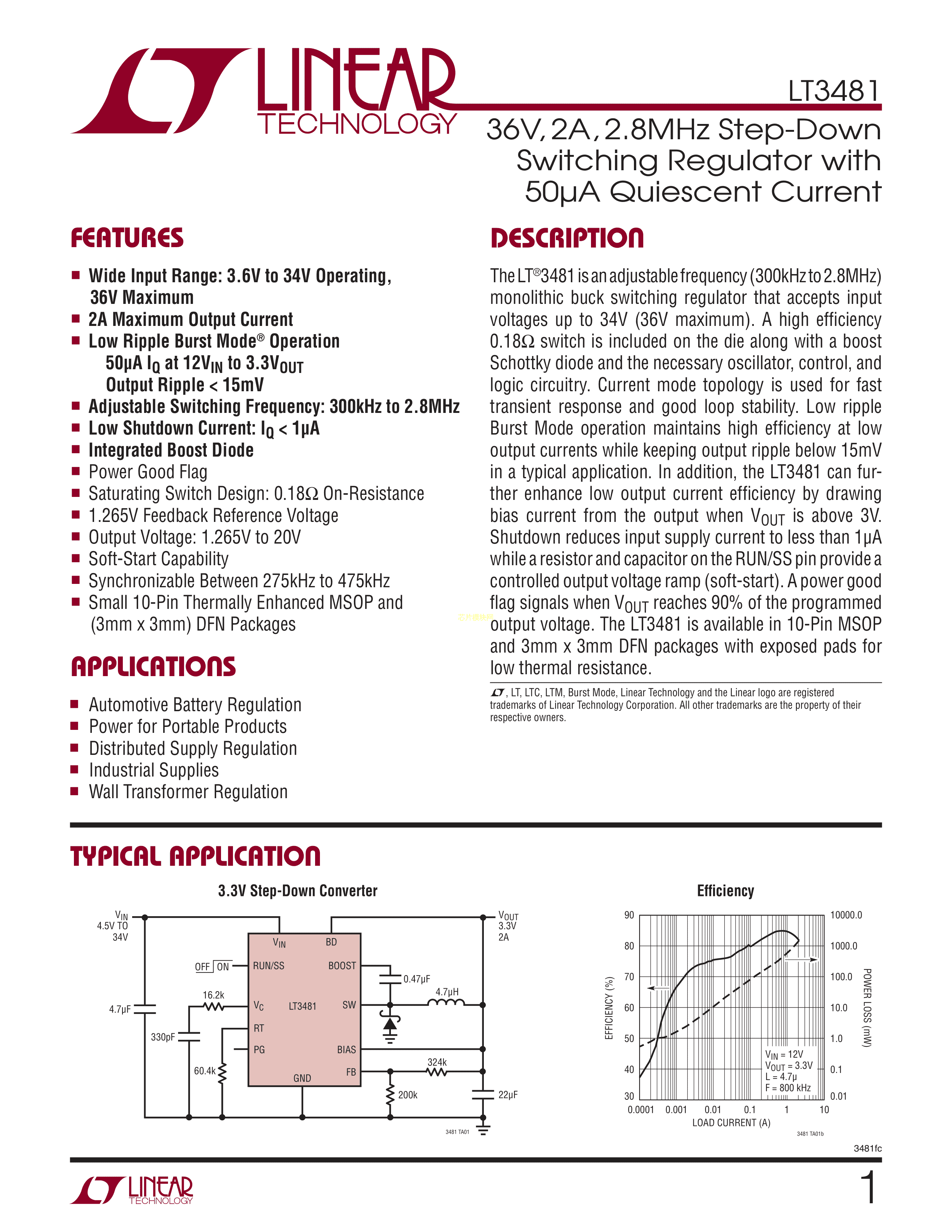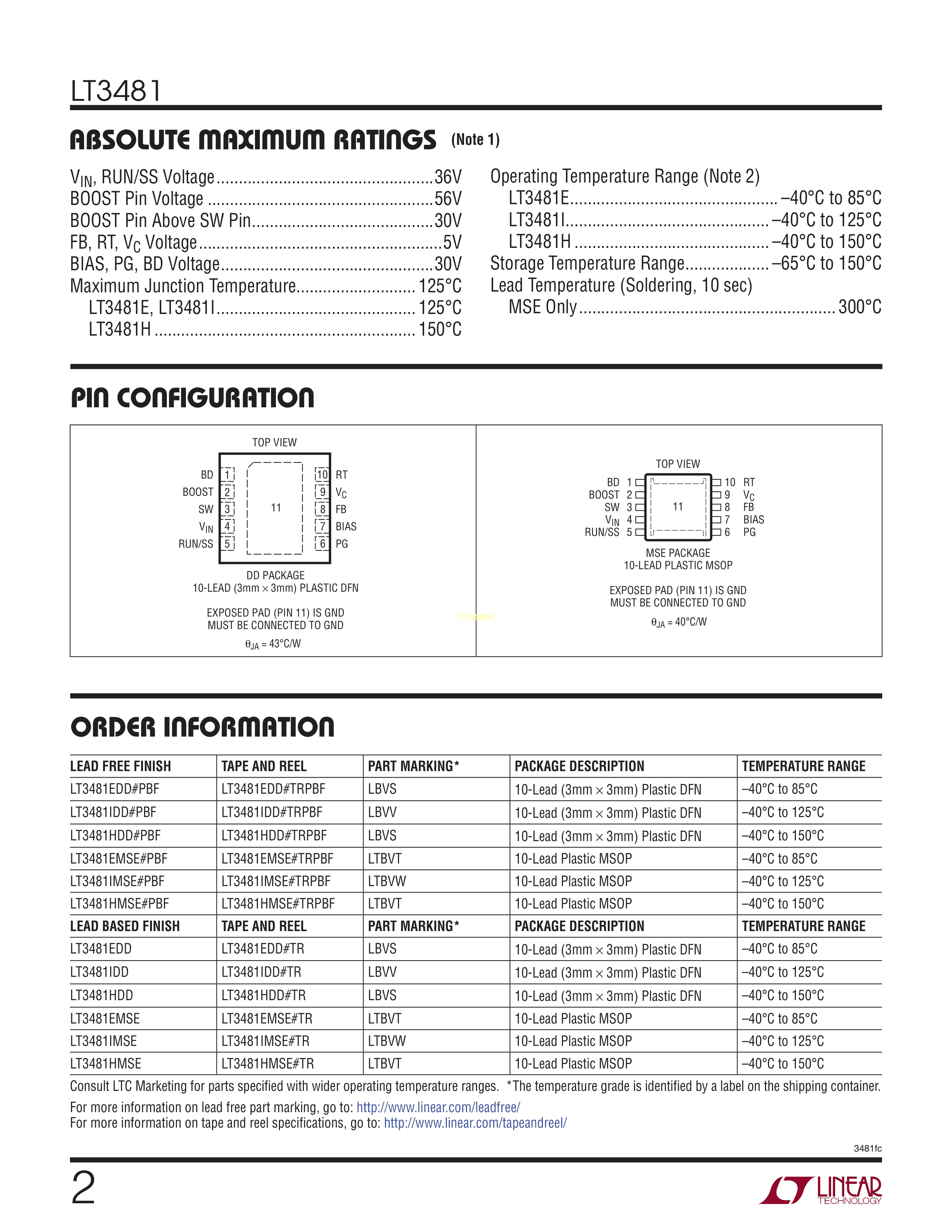 LT3481IDD#PBF数据手册DFN-10封装ADI(亚德诺)-LINEARPDF规格书,中英文