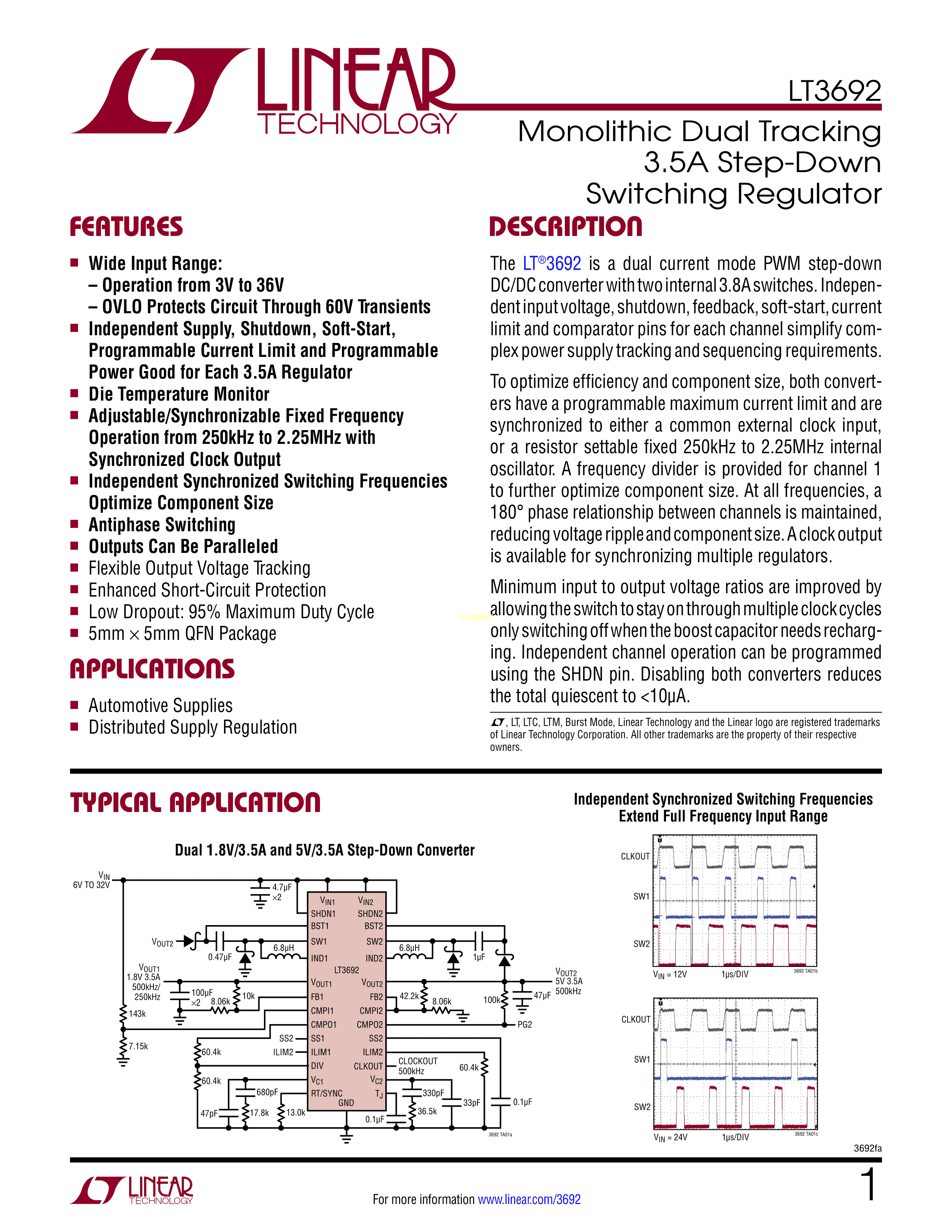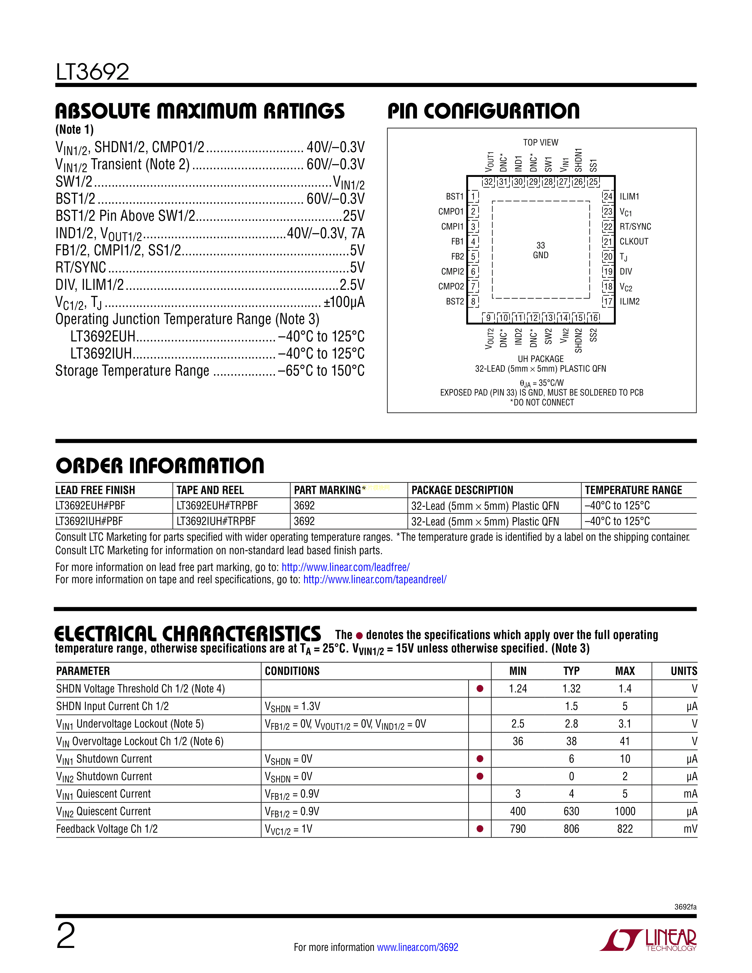 LT3692IUH#TRPBF数据手册QFN-32封装ADI(亚德诺)-LINEARPDF规格书,中