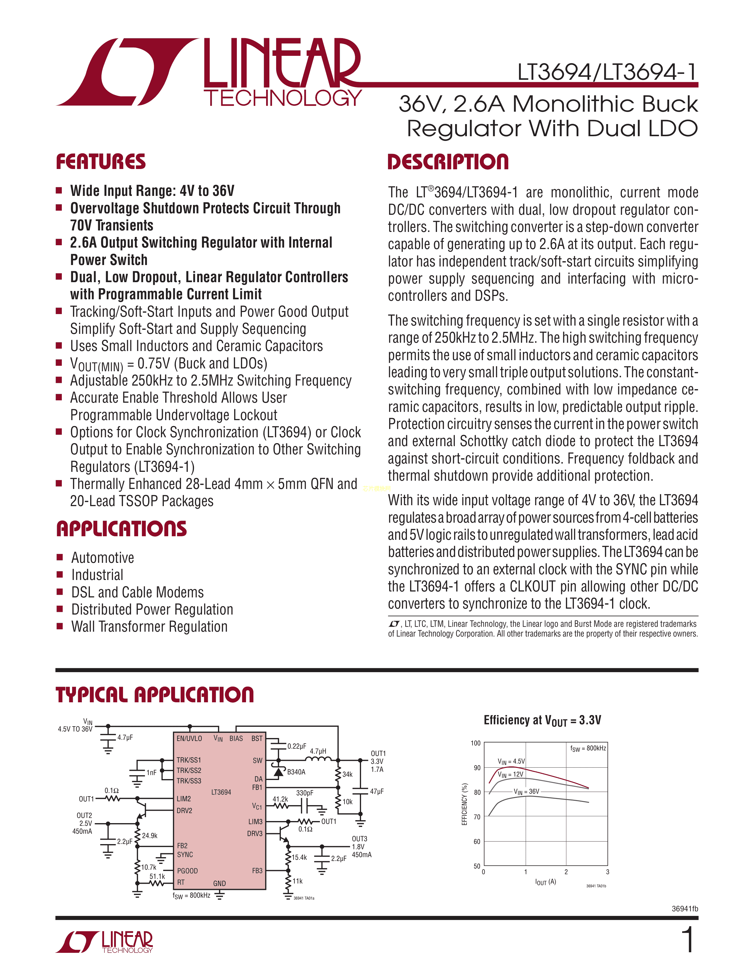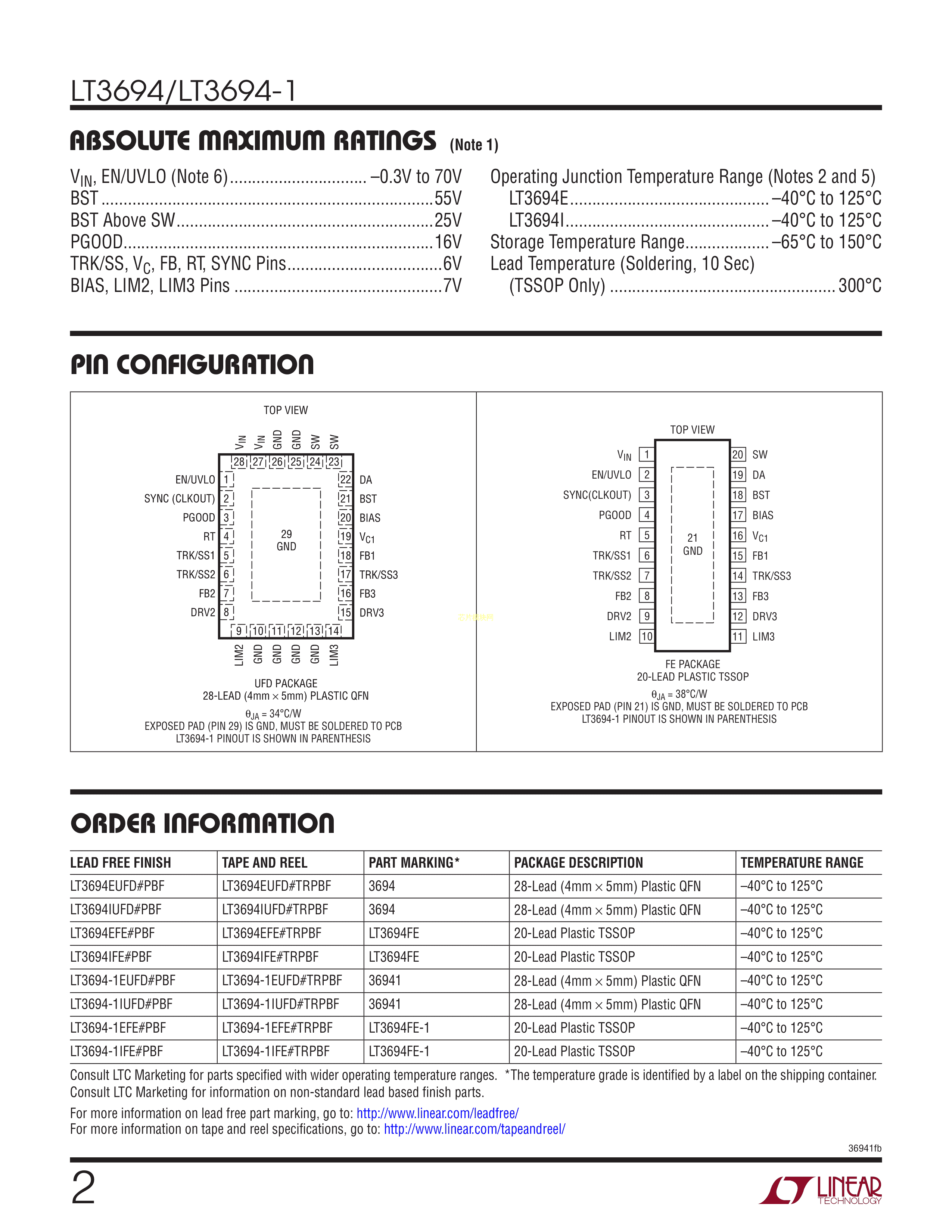 LT3694EUFD#PBF数据手册QFN-28封装ADI(亚德诺)-LINEARPDF规格书,中英