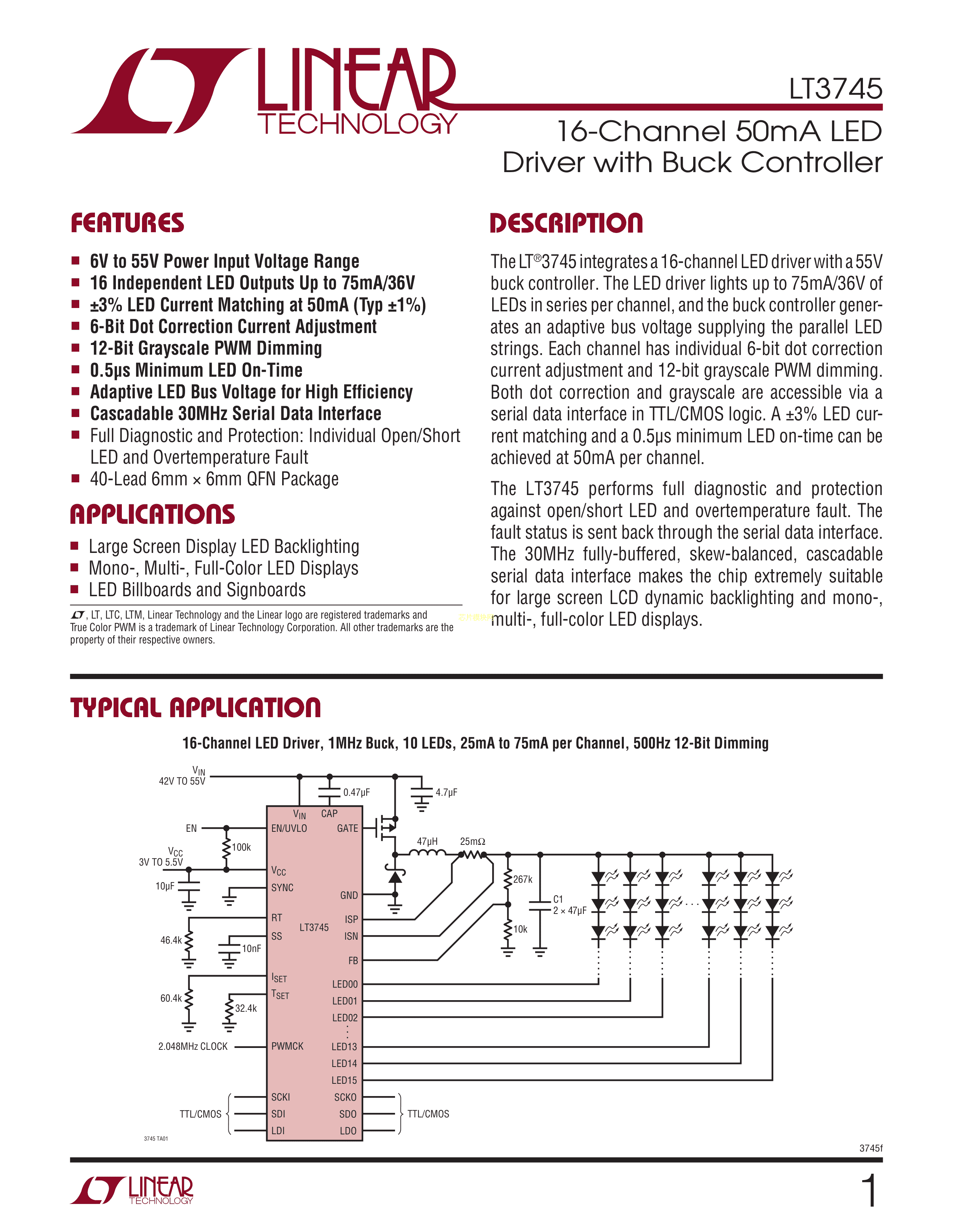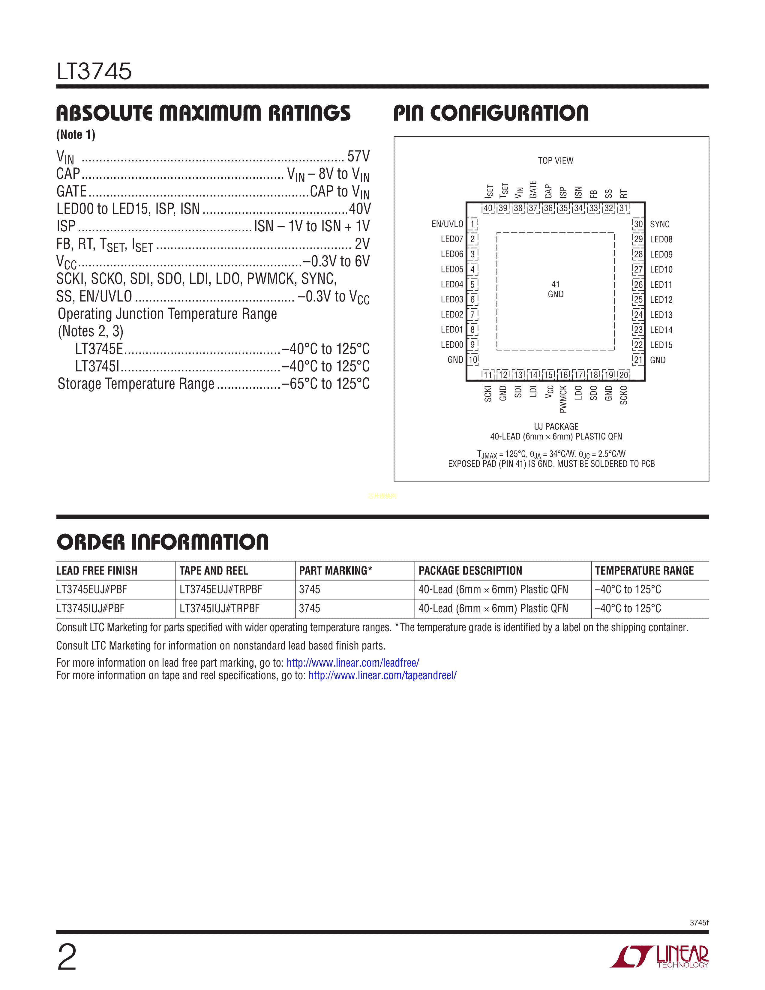 LT3745IUJ#PBF数据手册QFN-40封装ADI(亚德诺)-LINEARPDF规格书,中英文