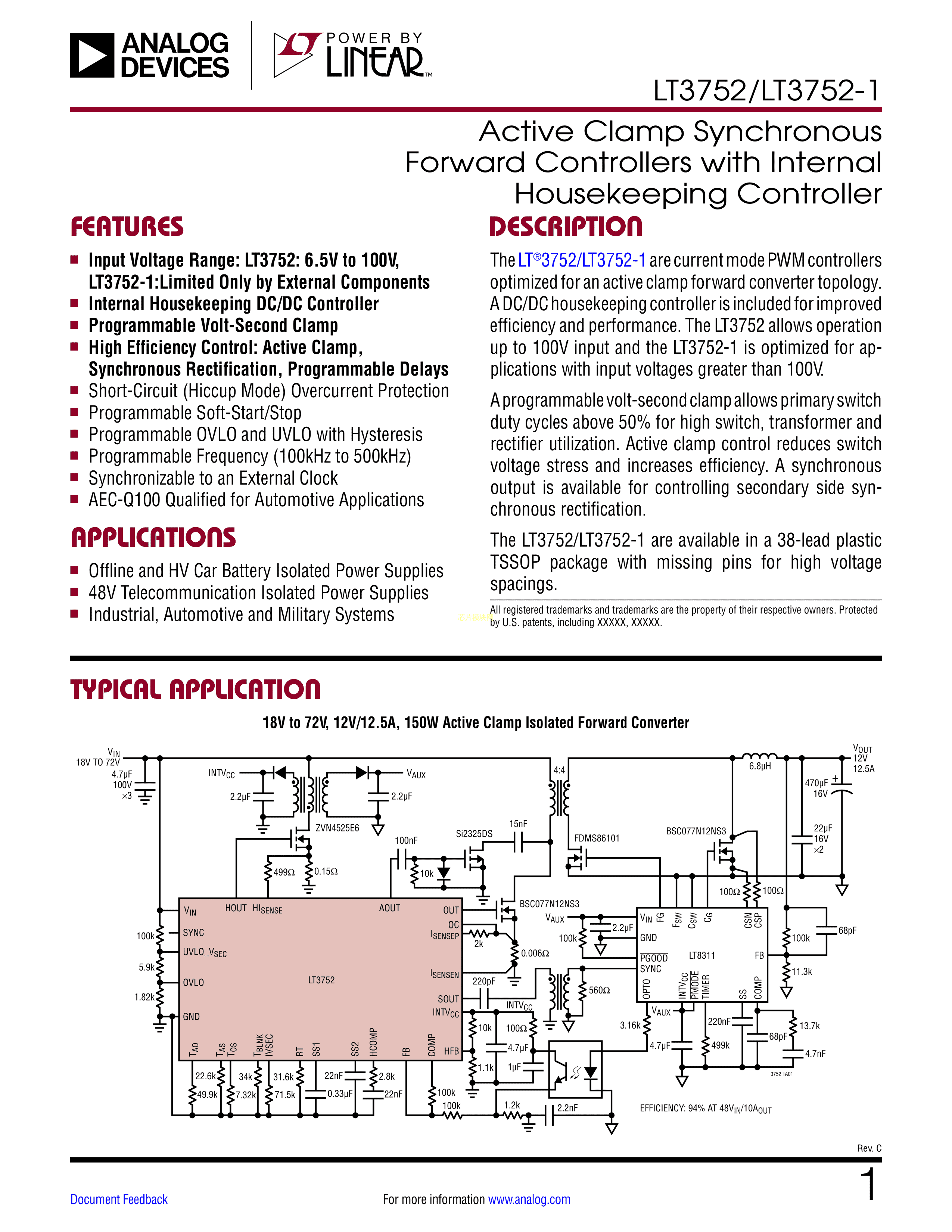 LT3752EFE-1#TRPBF数据手册TSSOP-38封装ADI(亚德诺)-LINEARPDF规