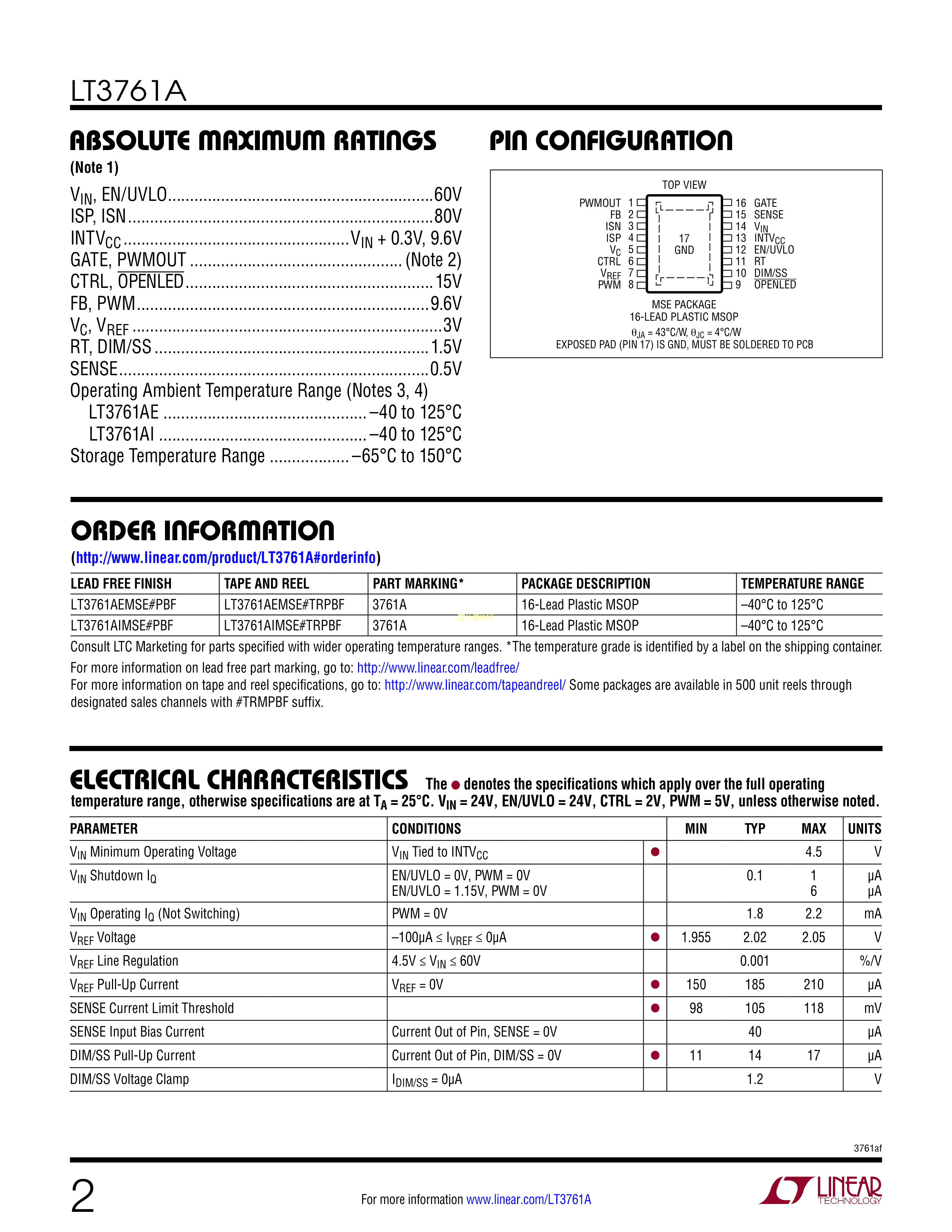 LT3761AEMSE#TRPBF数据手册MSOP-16封装ADI(亚德诺)-LINEARPDF规格