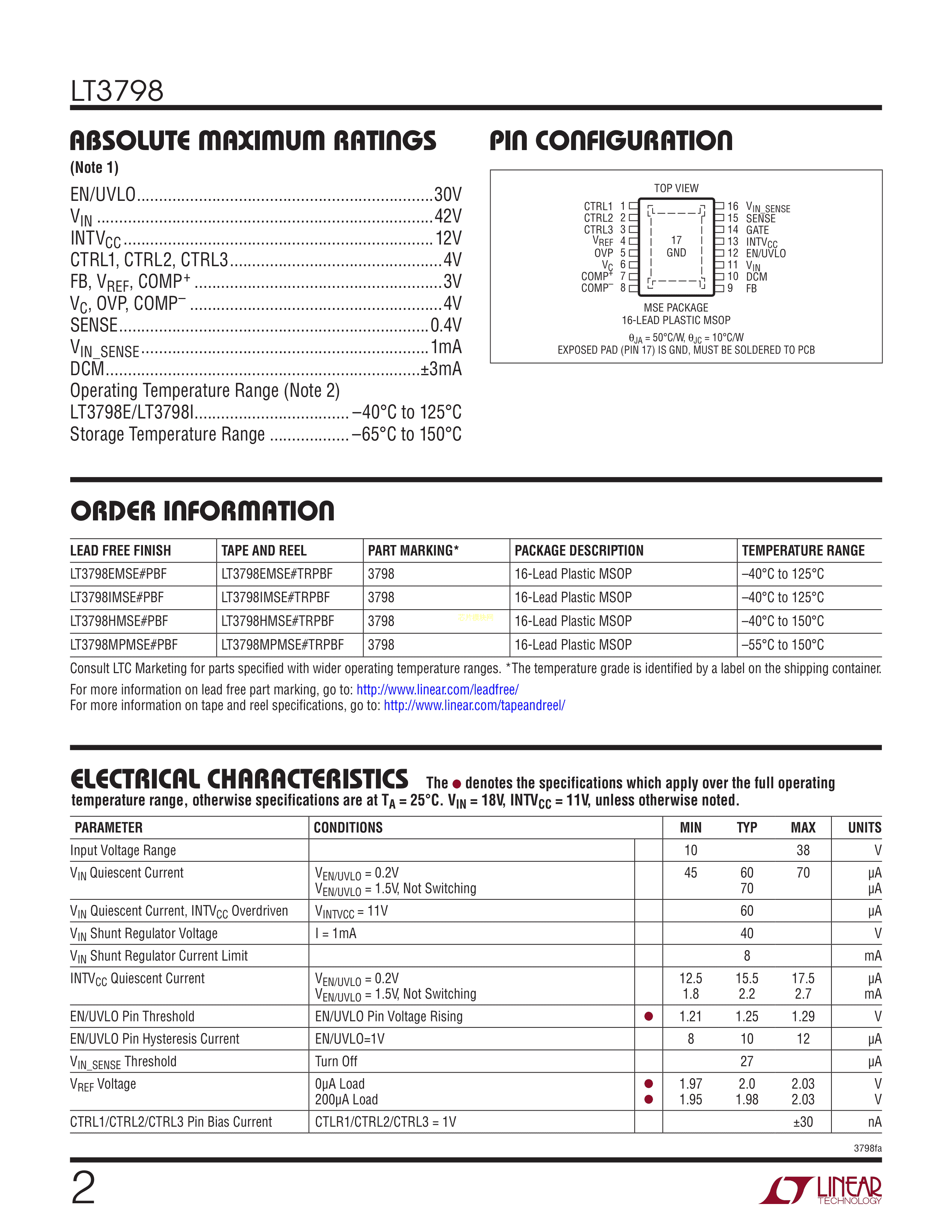 LT3798MPMSE#TRPBF数据手册MSOP-16封装ADI(亚德诺)-LINEARPDF规格