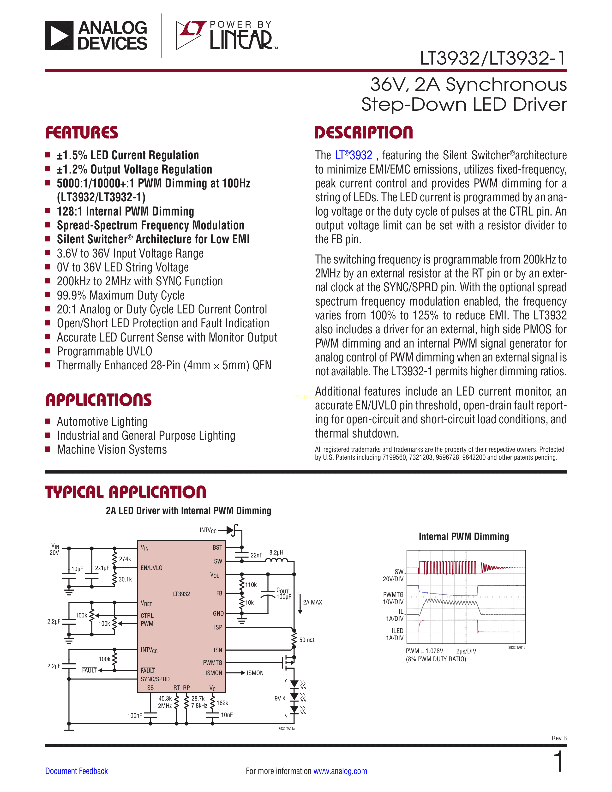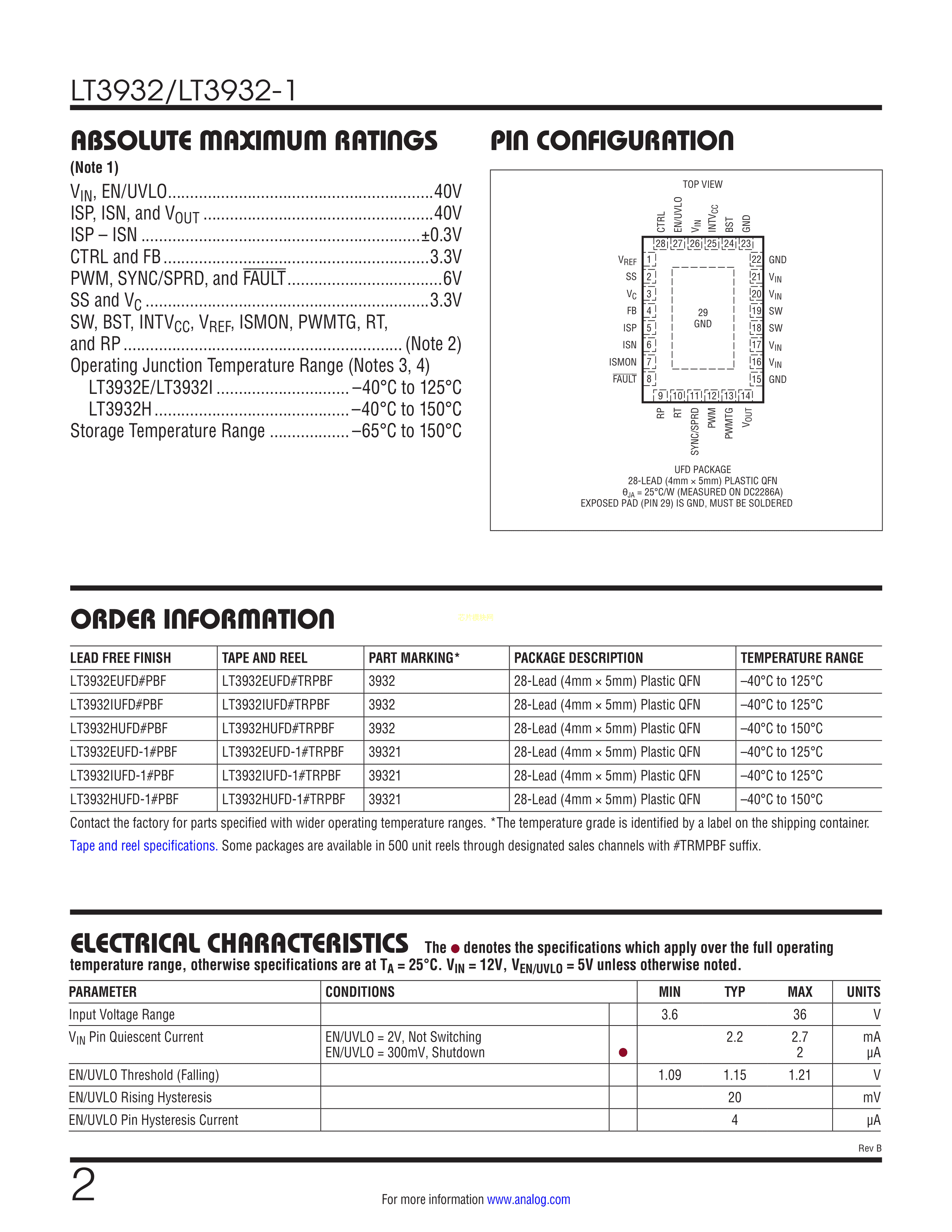 LT3932HUFD#TRPBF数据手册QFN-28封装ADI(亚德诺)-LINEARPDF规格书,