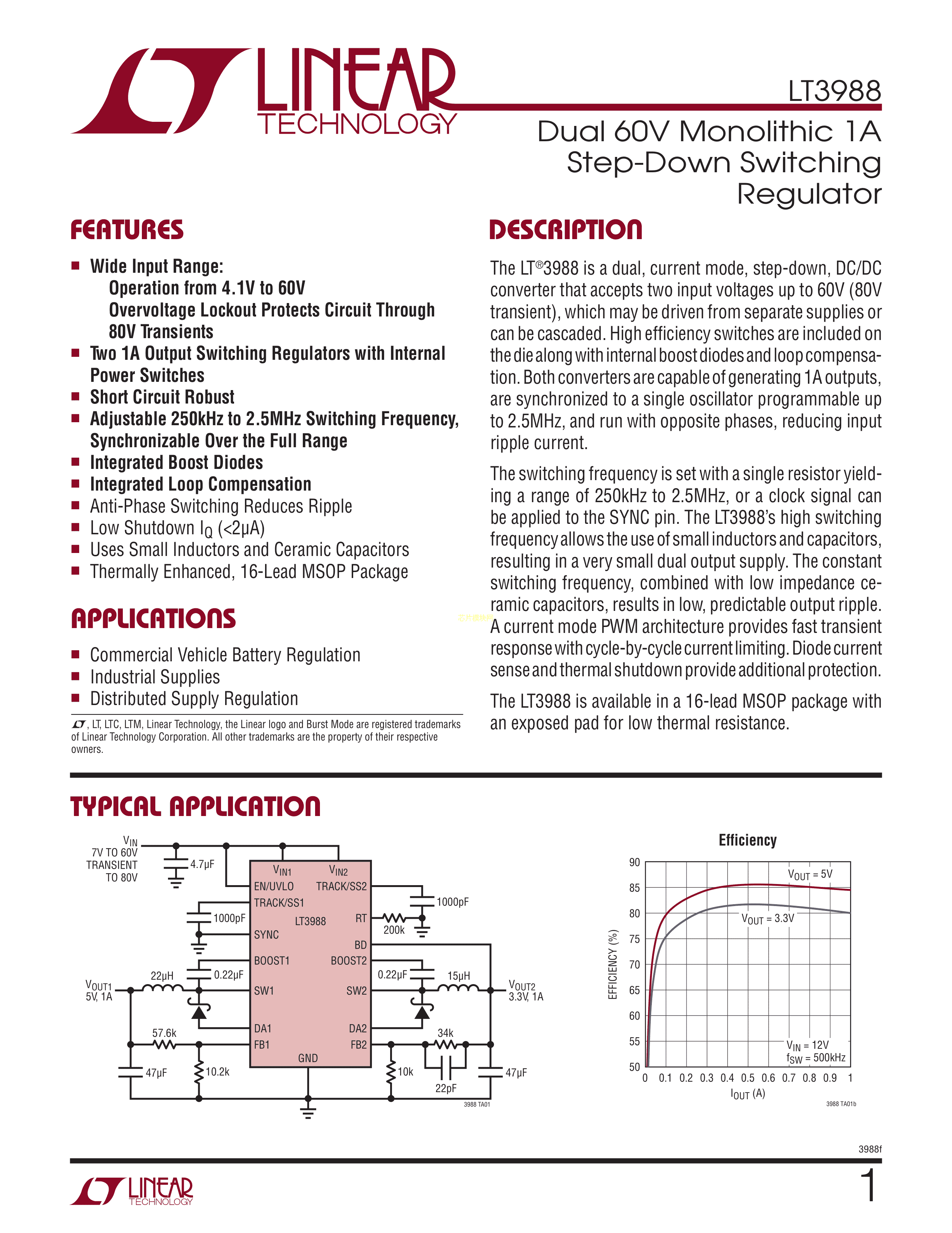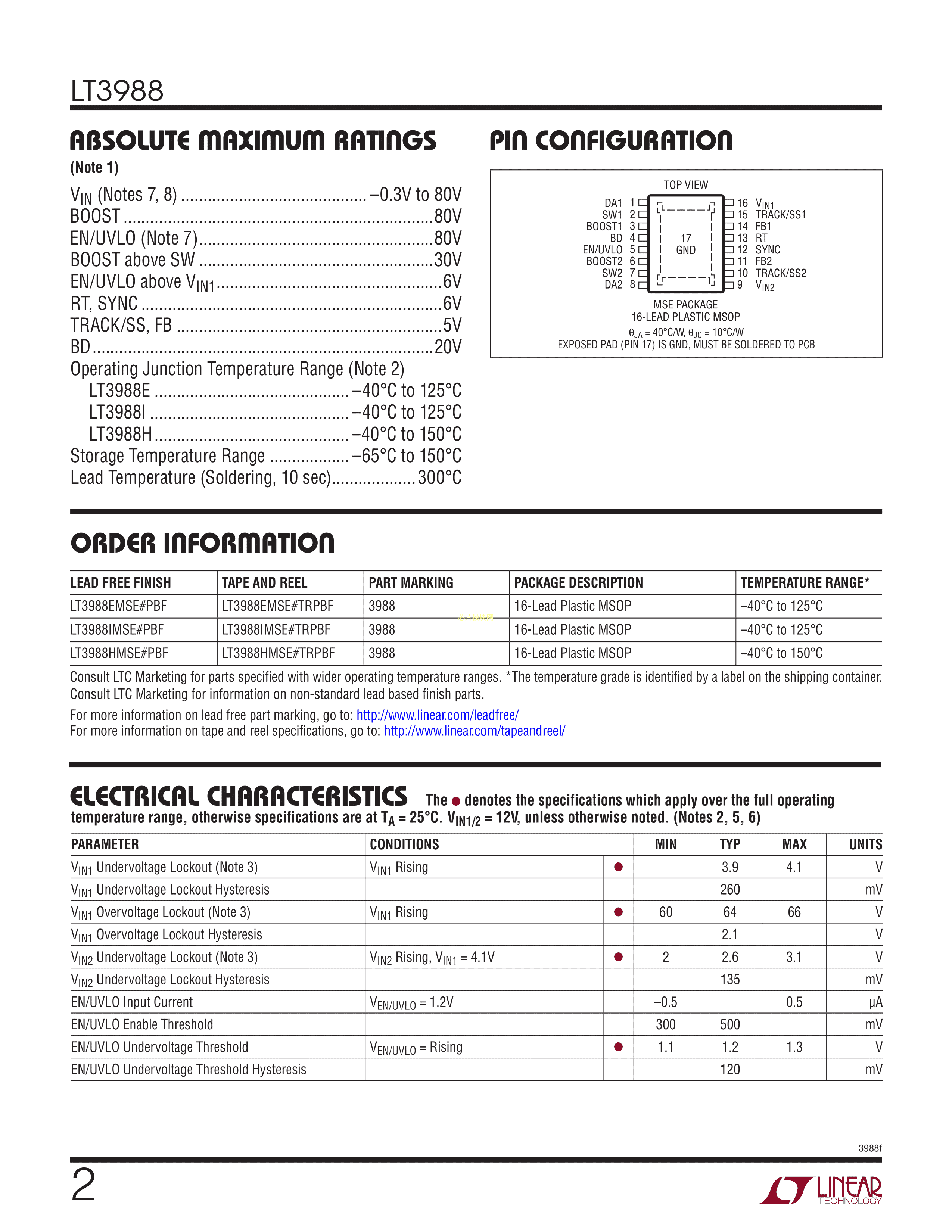 LT3988HMSE#PBF数据手册MSOP-16封装ADI(亚德诺)-LINEARPDF规格书,中