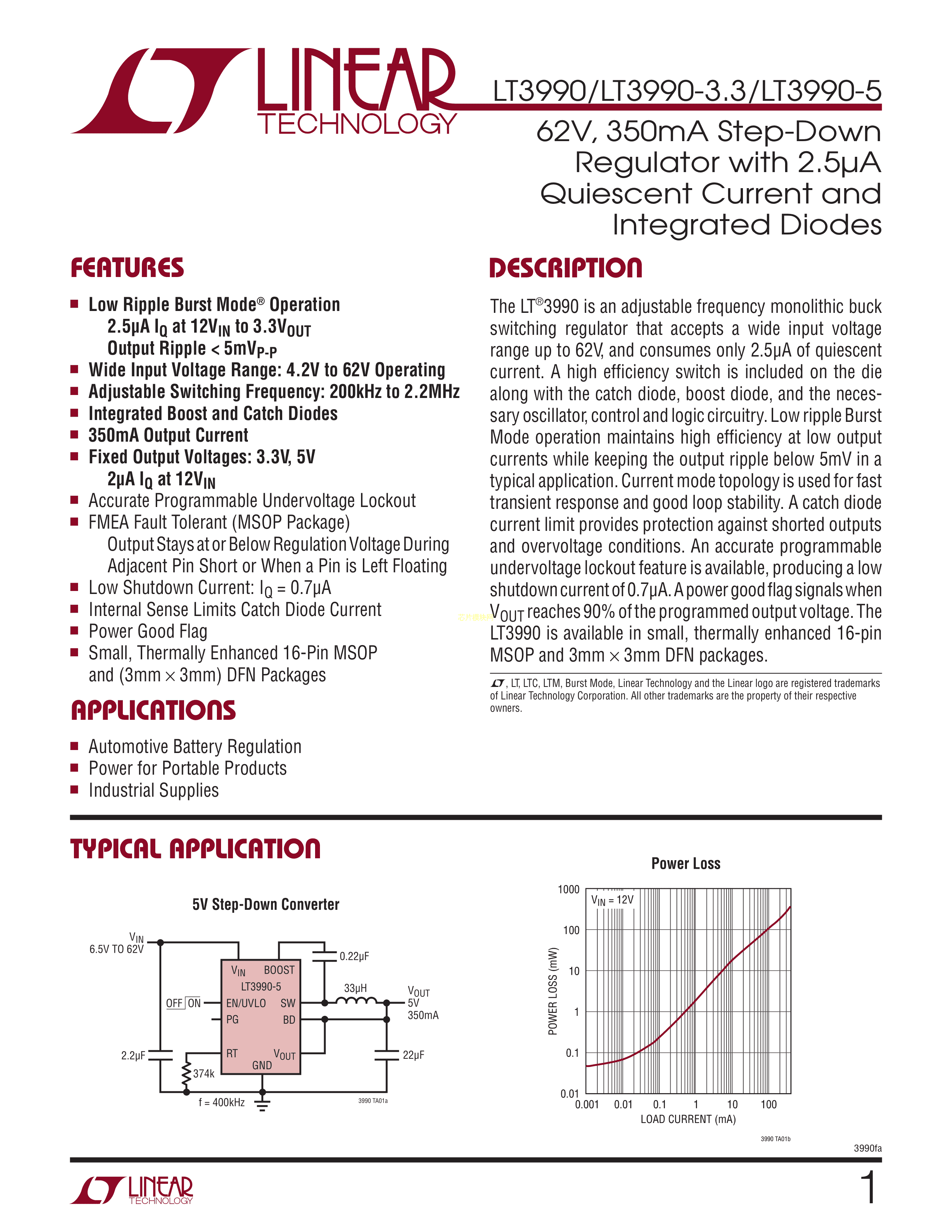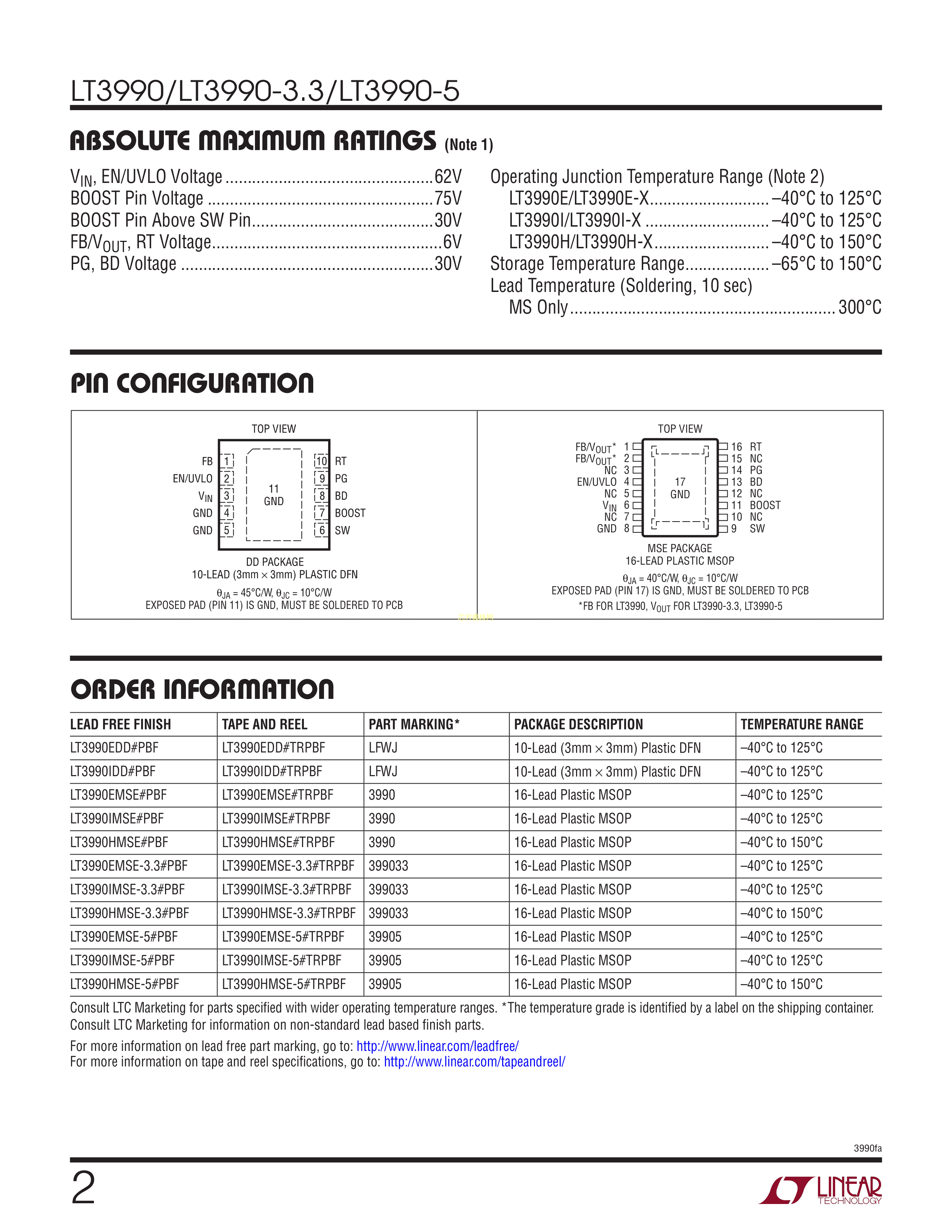 LT3990EMSE-5#TRPBF数据手册MSOP-16封装ADI(亚德诺)-LINEARPDF规