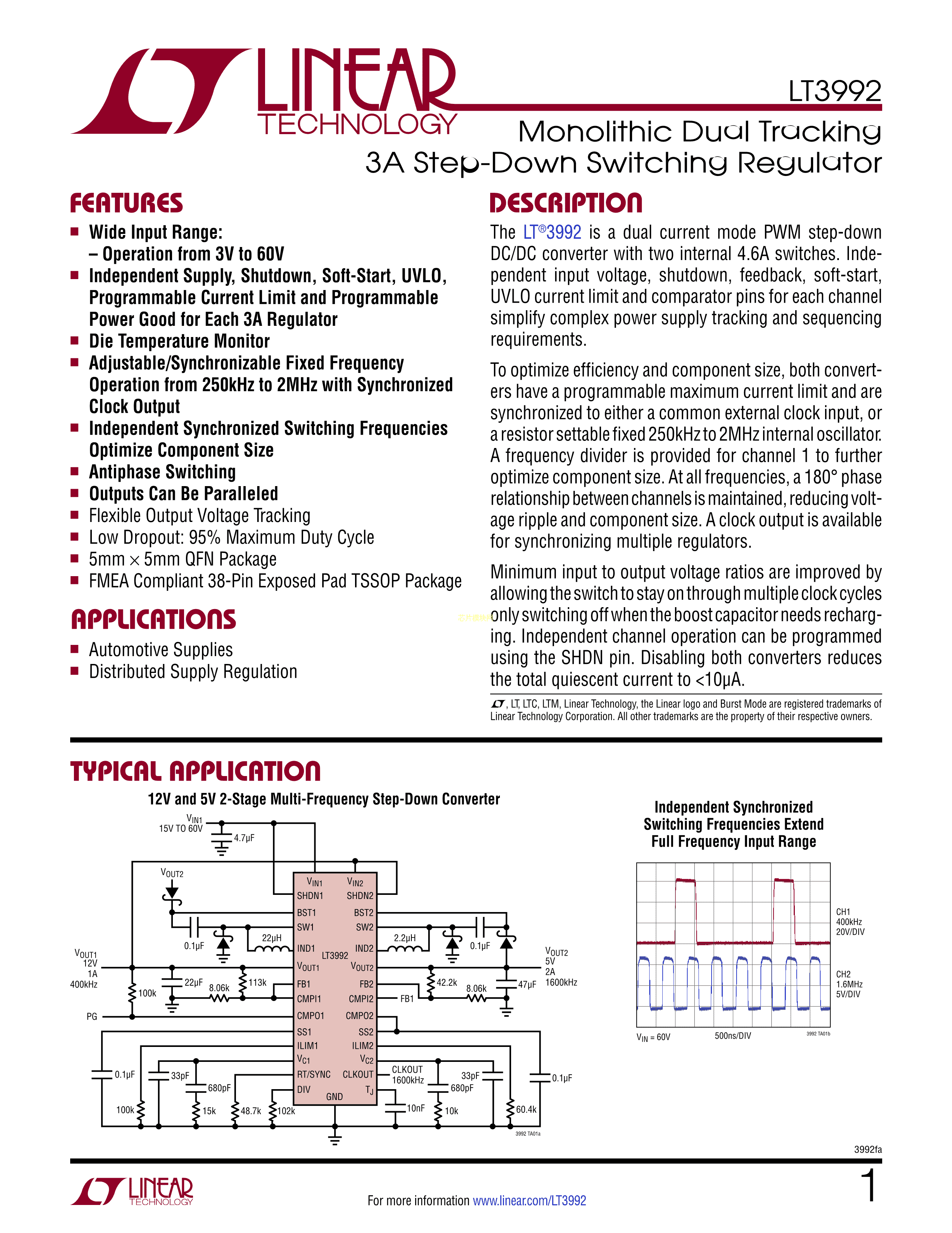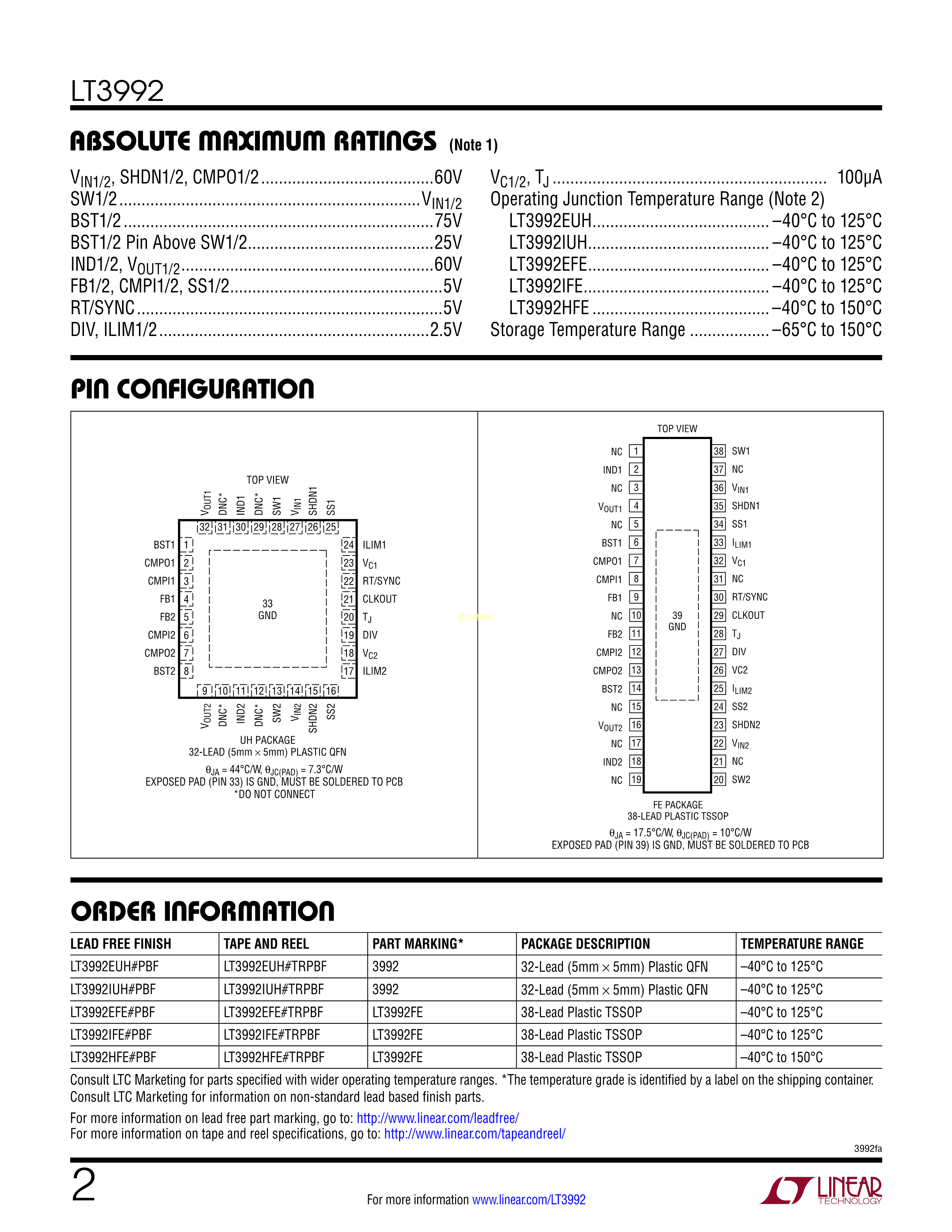 LT3992HFE#TRPBF数据手册TSSOP-38封装ADI(亚德诺)-LINEARPDF规格书
