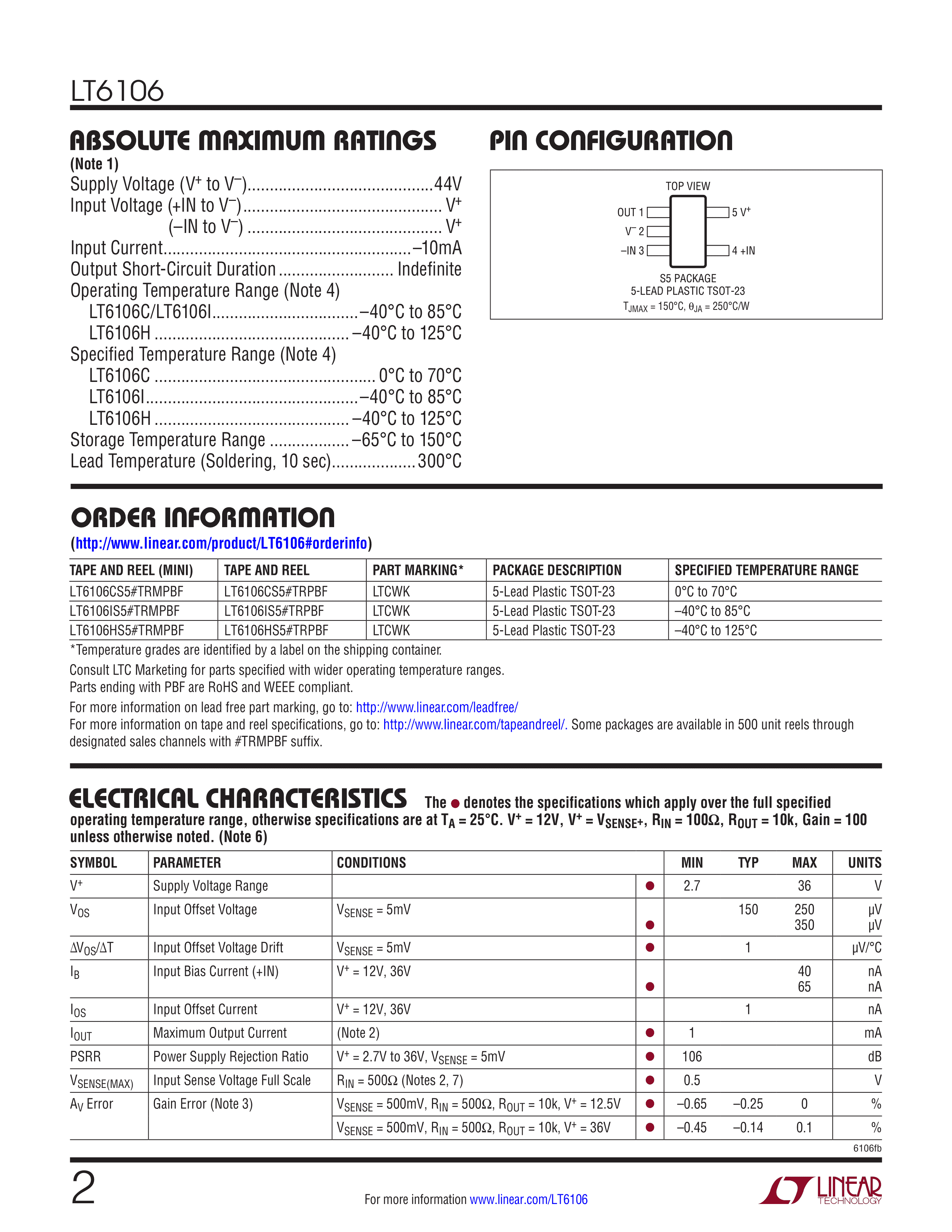 LT6106HS5#TRMPBF数据手册TSOT-23-5封装ADI(亚德诺)-LINEARPDF规