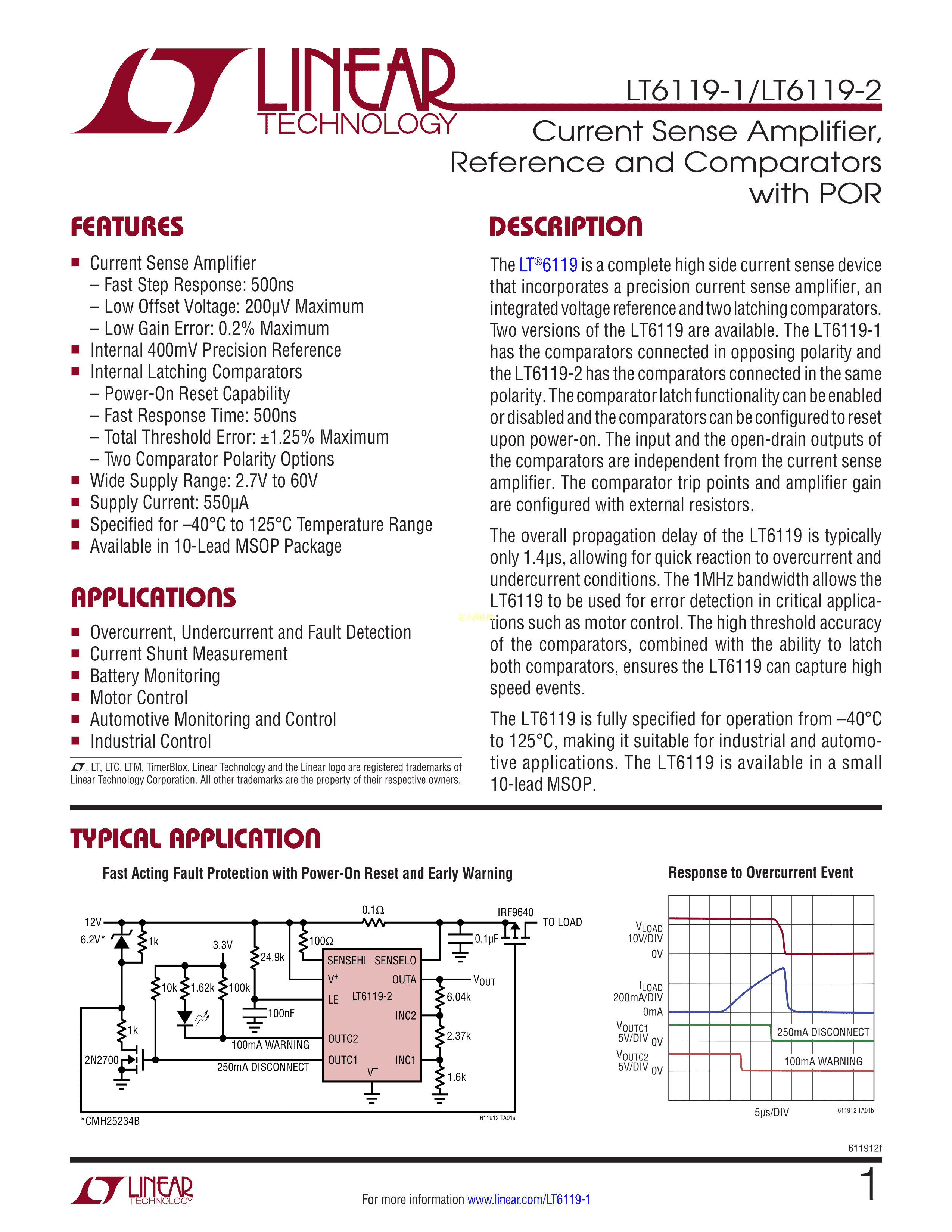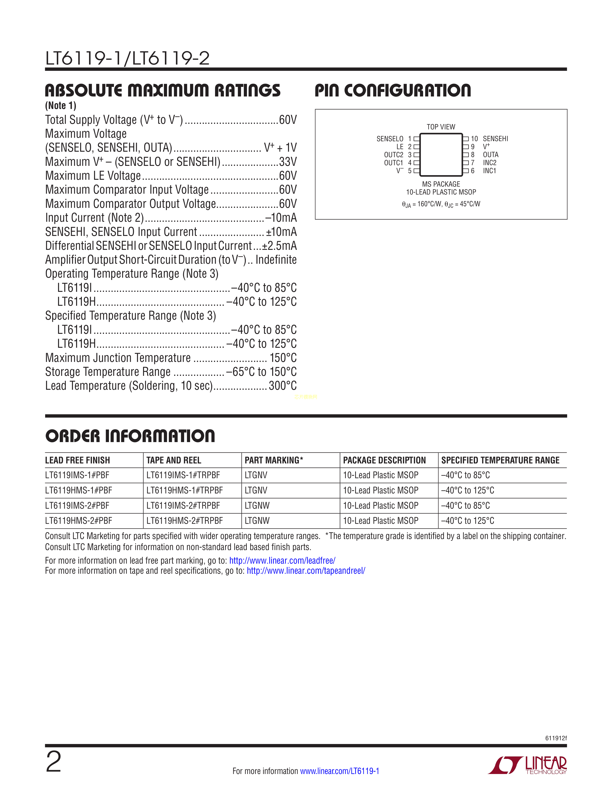 LT6119IMS-1#PBF数据手册MSOP-10封装ADI(亚德诺)-LINEARPDF规格书,中英文下载