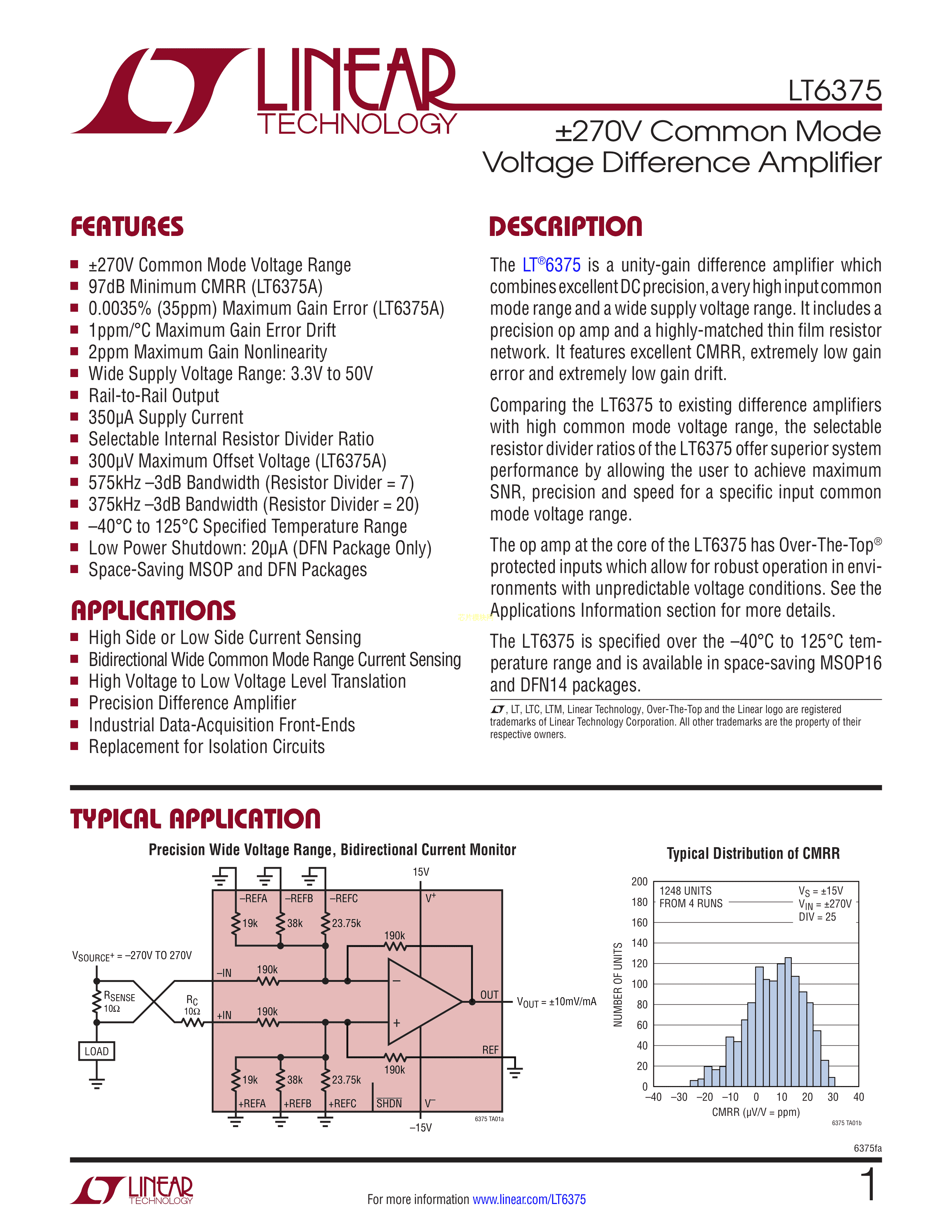 LT6375IMS#PBF数据手册MSOP-16封装ADI(亚德诺)-LINEARPDF规格书,中英文下载