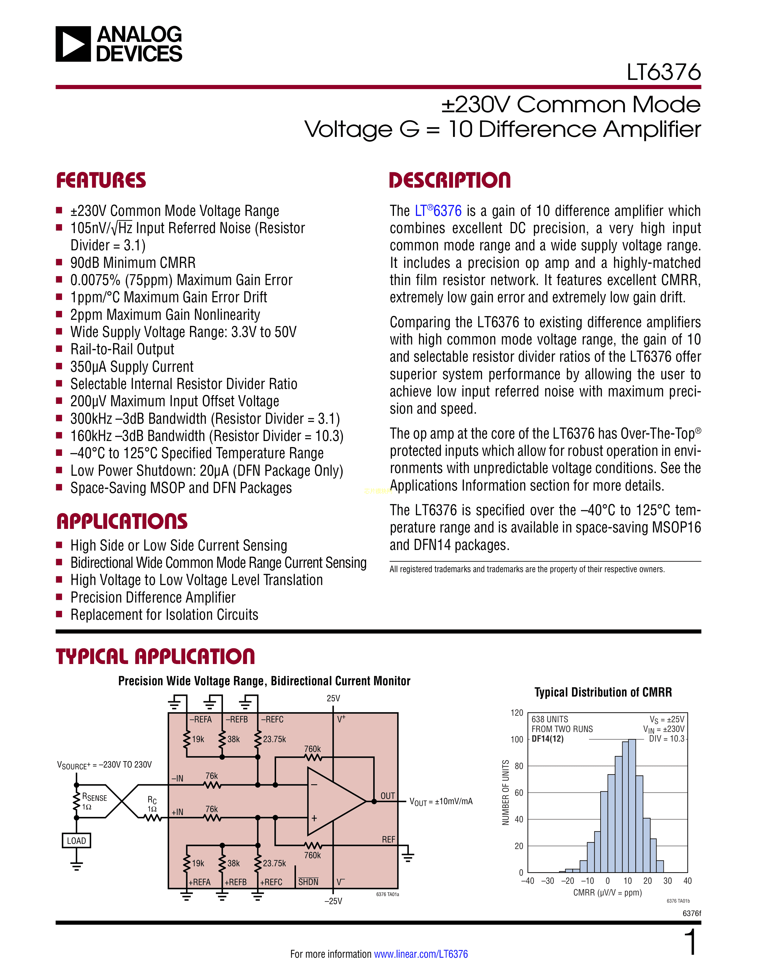 LT6376IDF#TRPBF数据手册DFN-14封装ADI(亚德诺)-LINEARPDF规格书,中英文下载