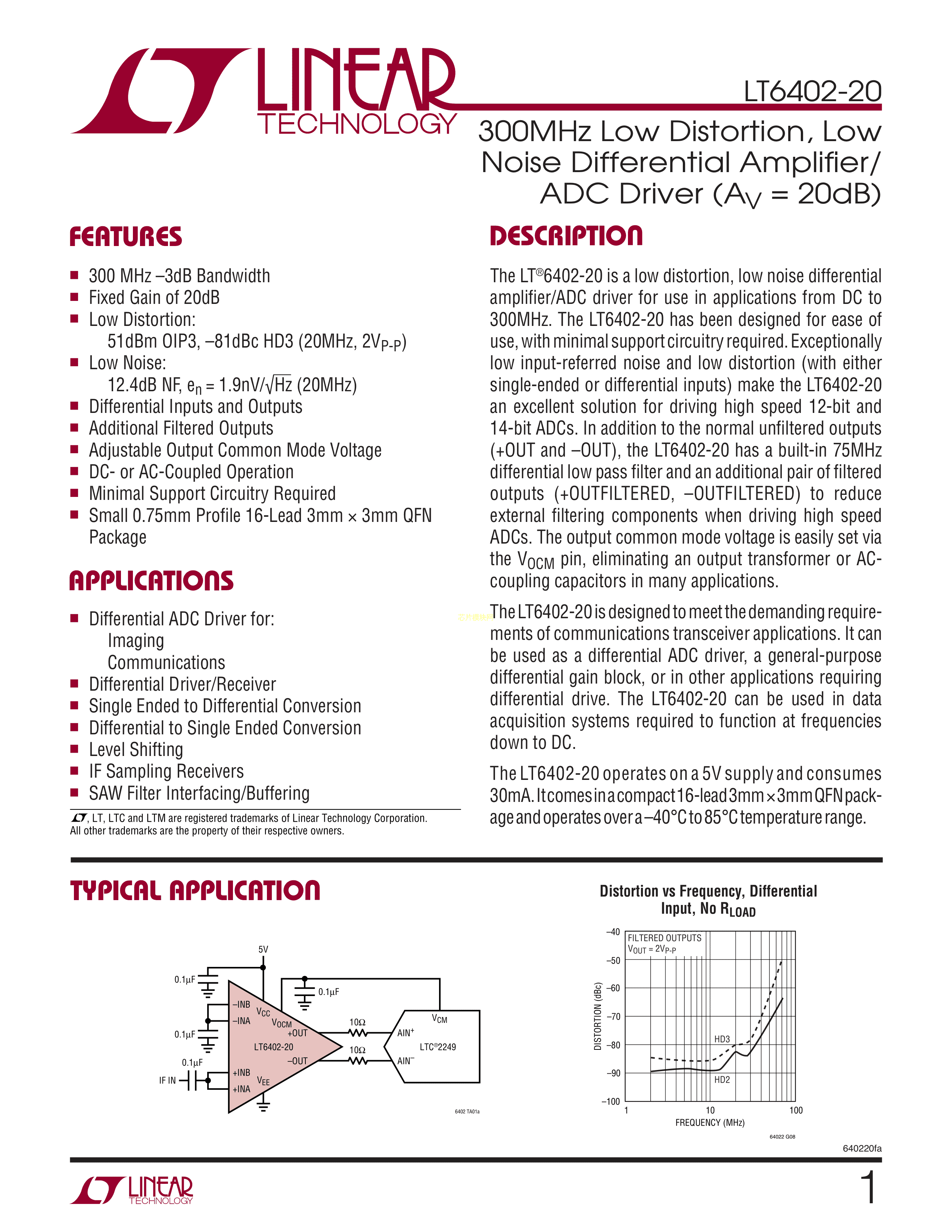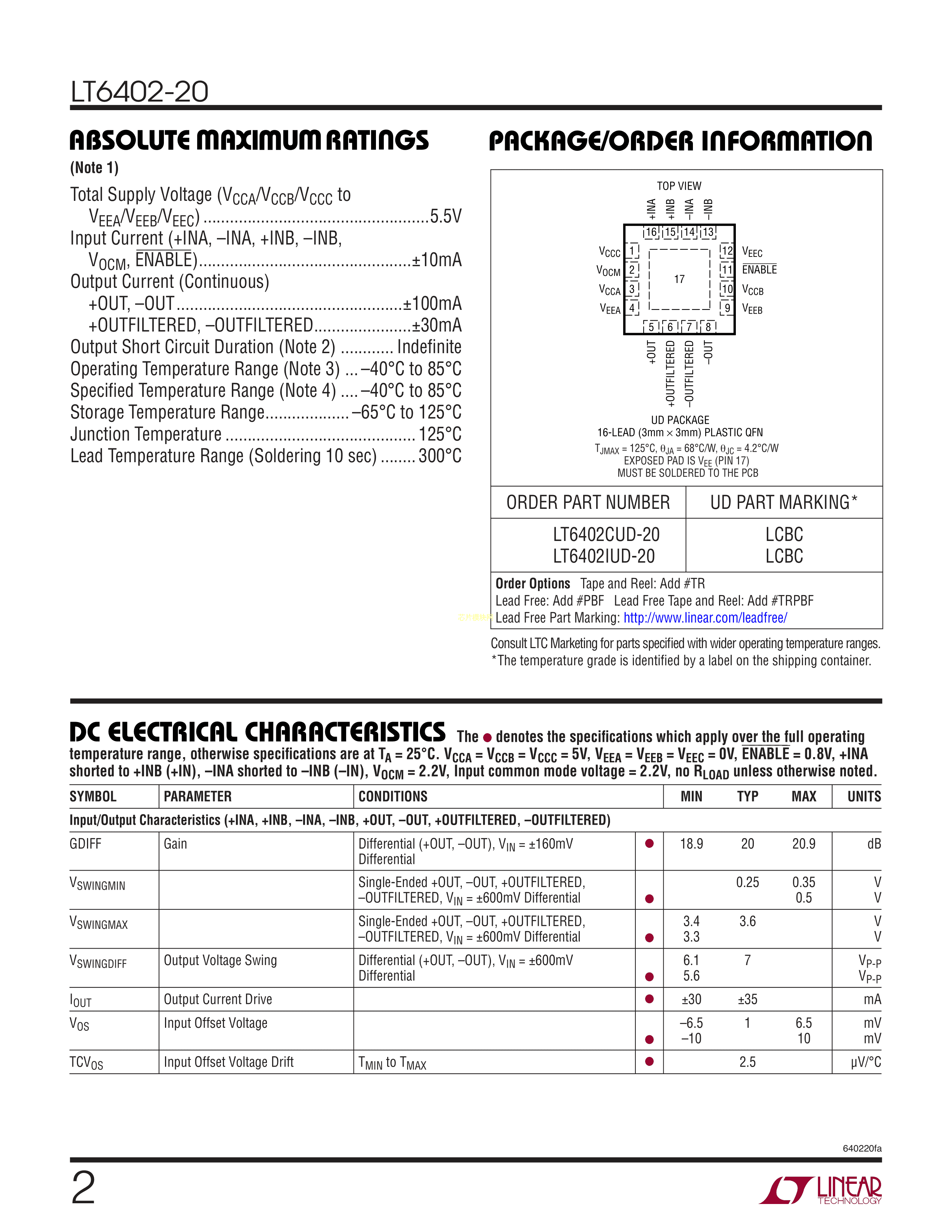 LT6402IUD-20#TRPBF数据手册QFN-16封装ADI(亚德诺)-LINEARPDF规格书,中英文下载
