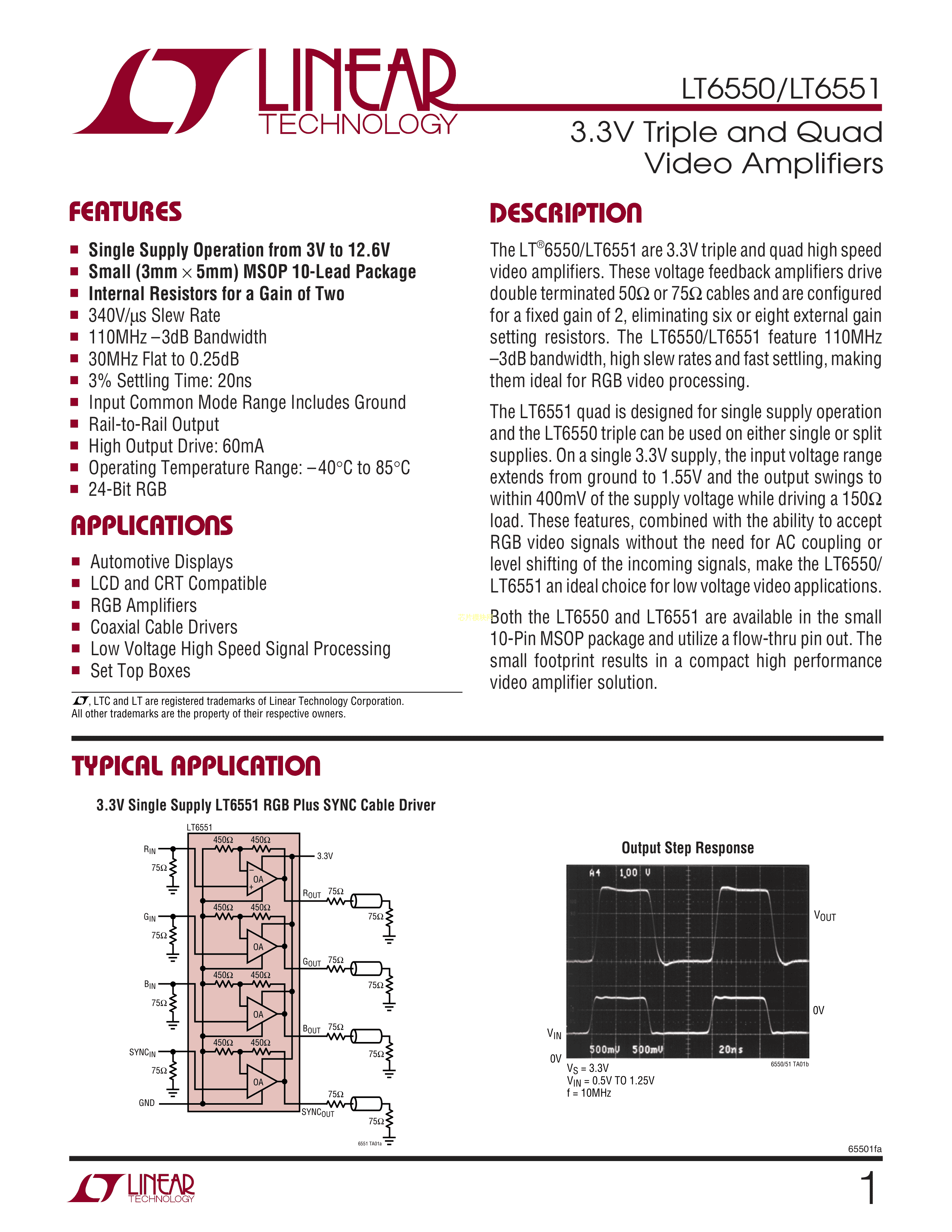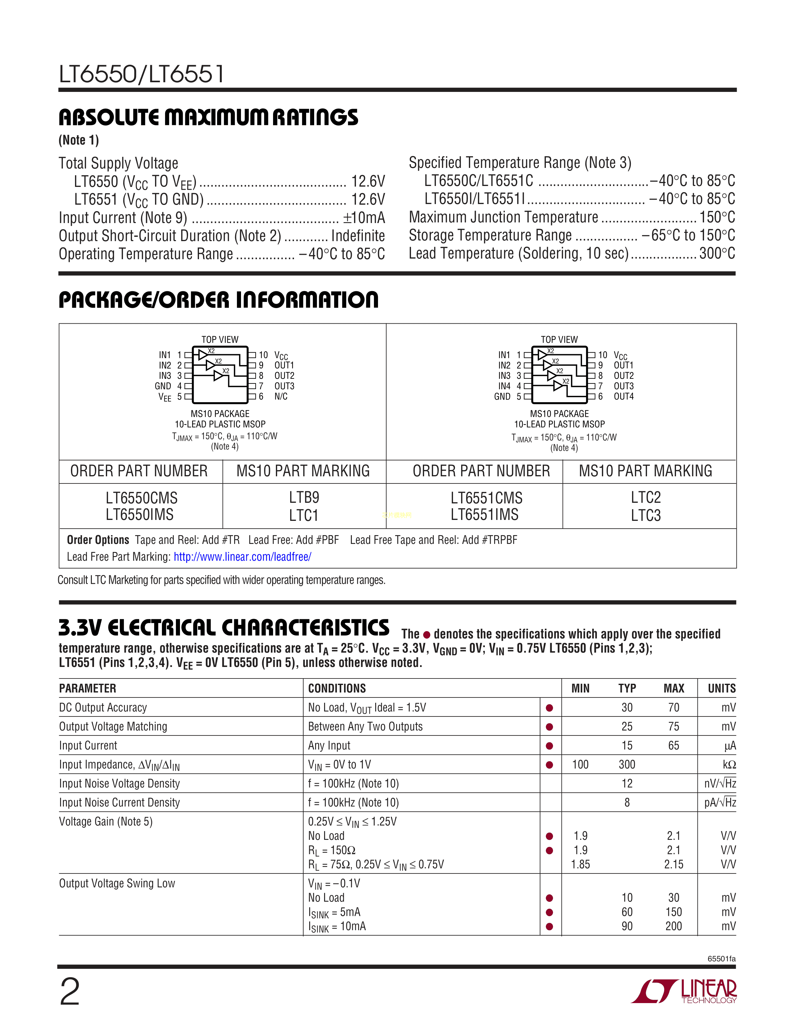 LT6551IMS#PBF数据手册MSOP-10封装ADI(亚德诺)-LINEARPDF规格书,中英文下载