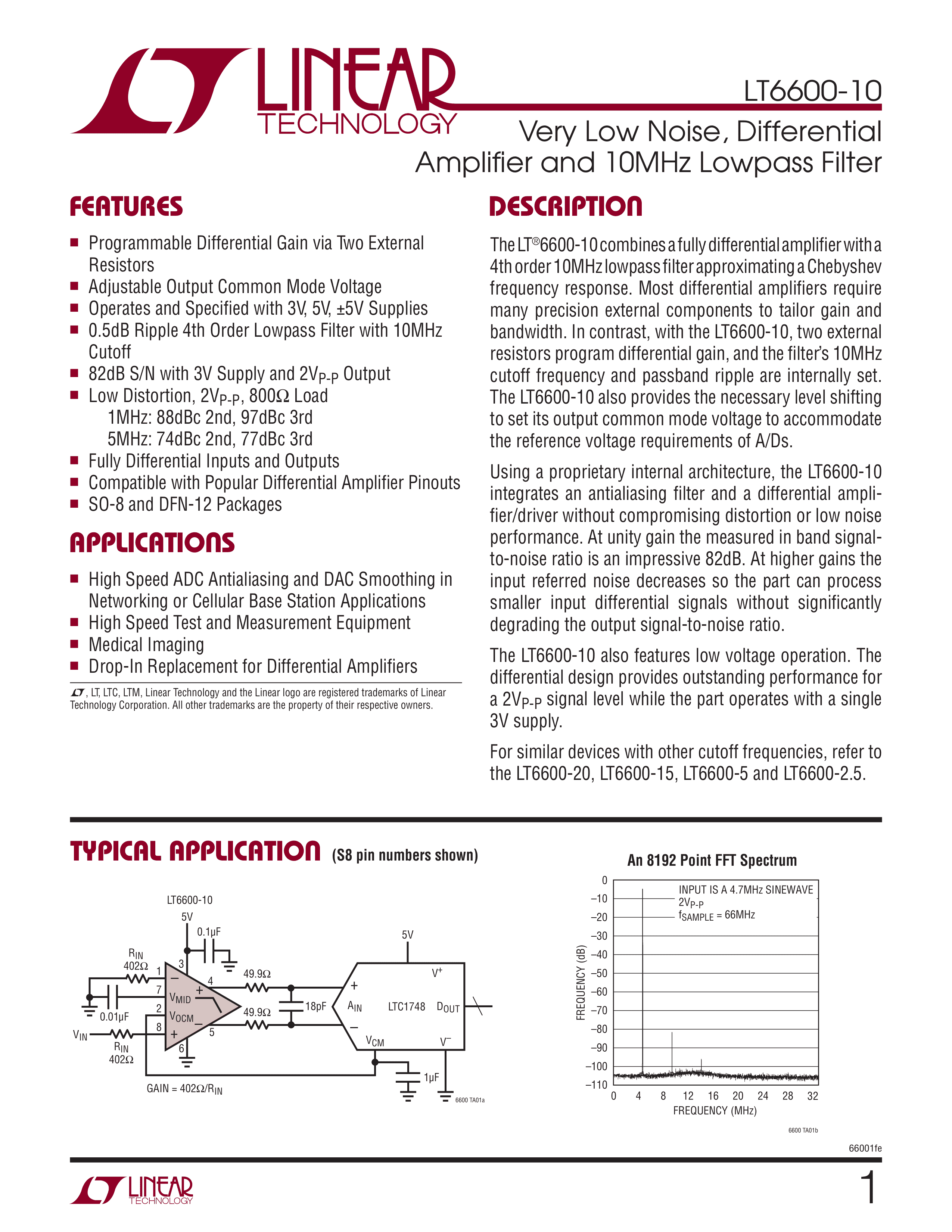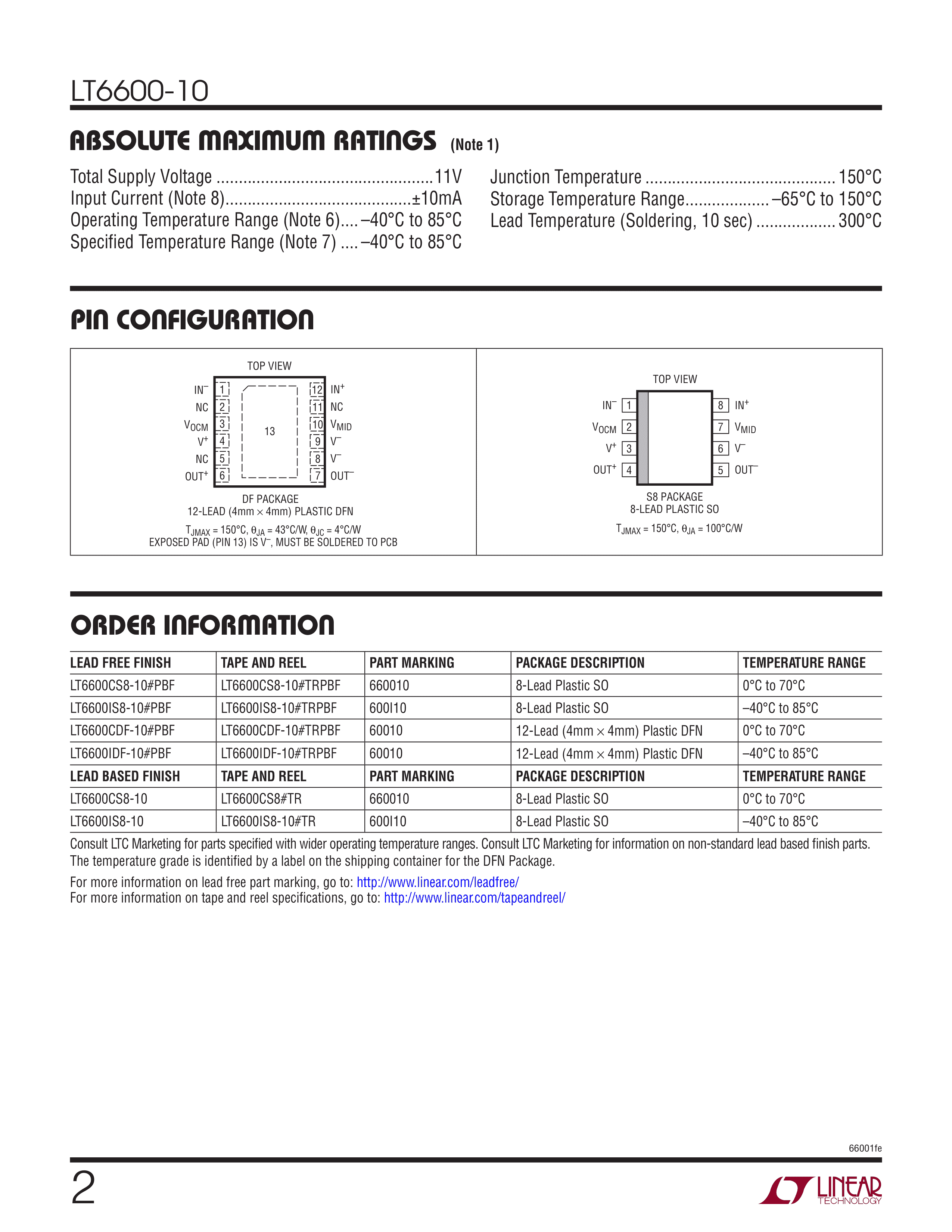 LT6600IDF-10#TRPBF数据手册DFN-12封装ADI(亚德诺)-LINEARPDF规格