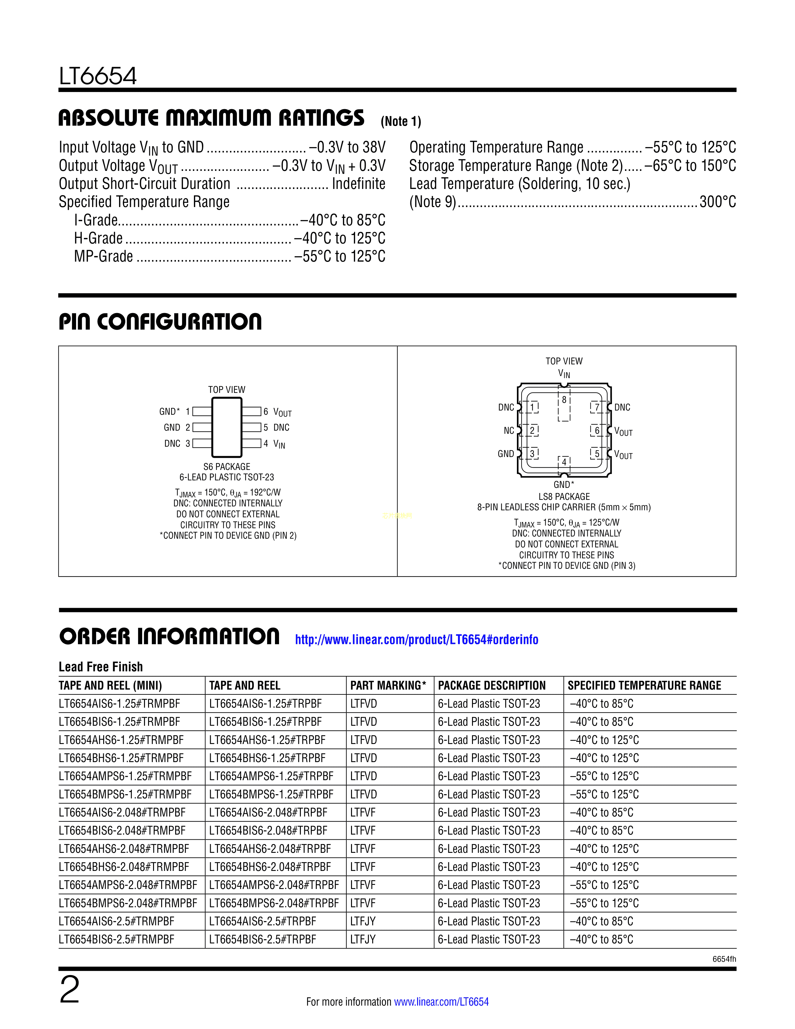 LT6654AMPS6-3.3#TRPBF数据手册TSOT-23-6封装ADI(亚德诺)-LINEARPDF规格书,中英文下载