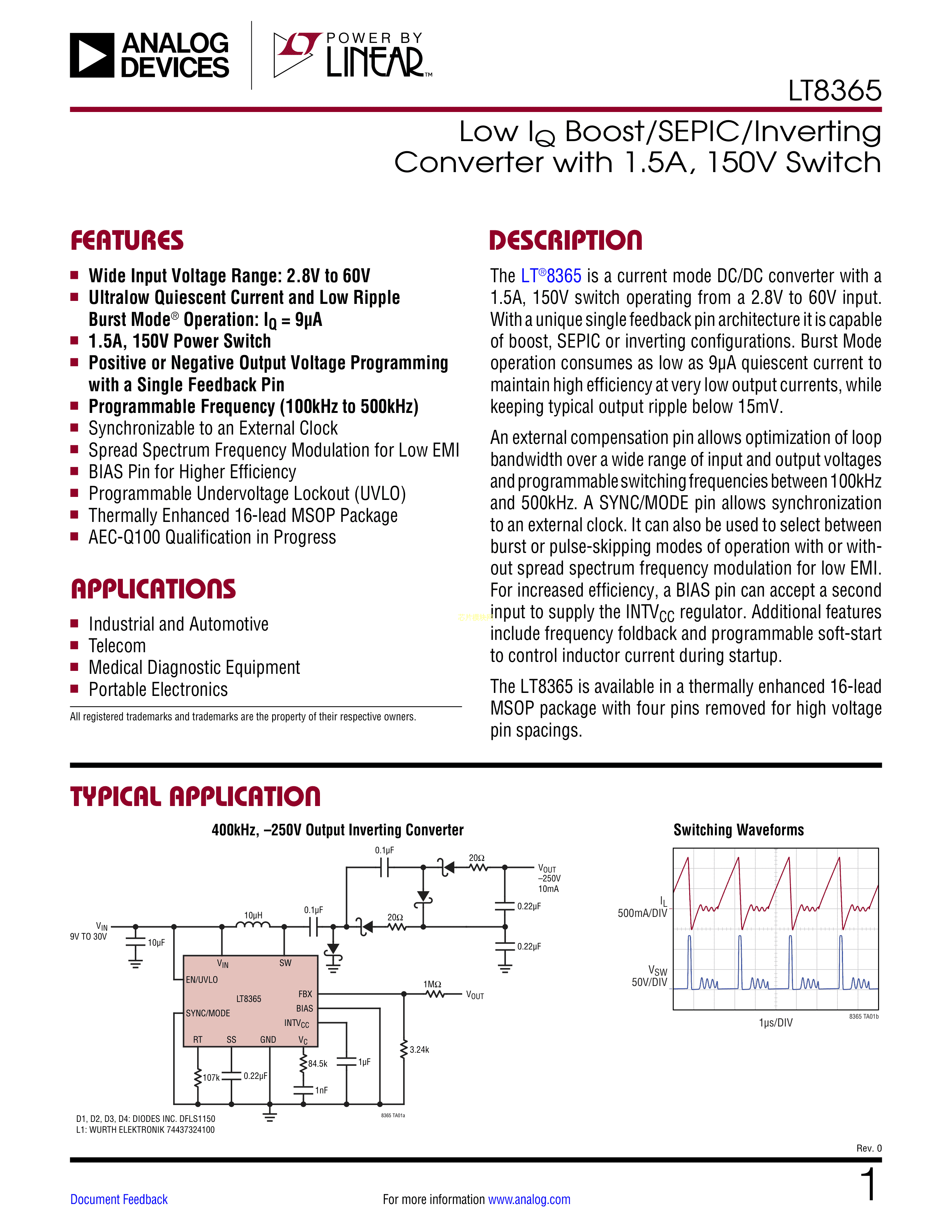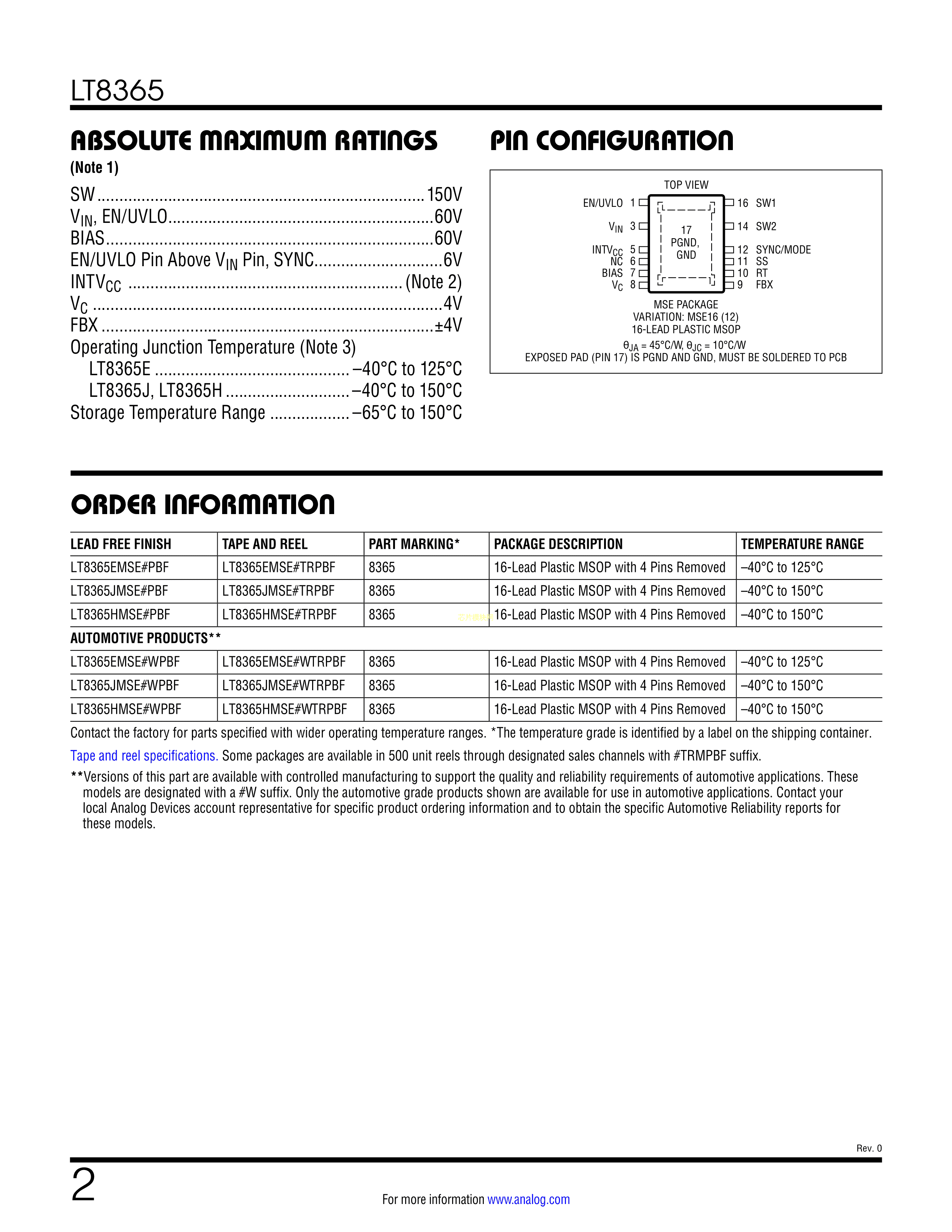 LT8365HMSE#PBF数据手册MSOP-16封装ADI(亚德诺)-LINEARPDF规格书,中英文下载