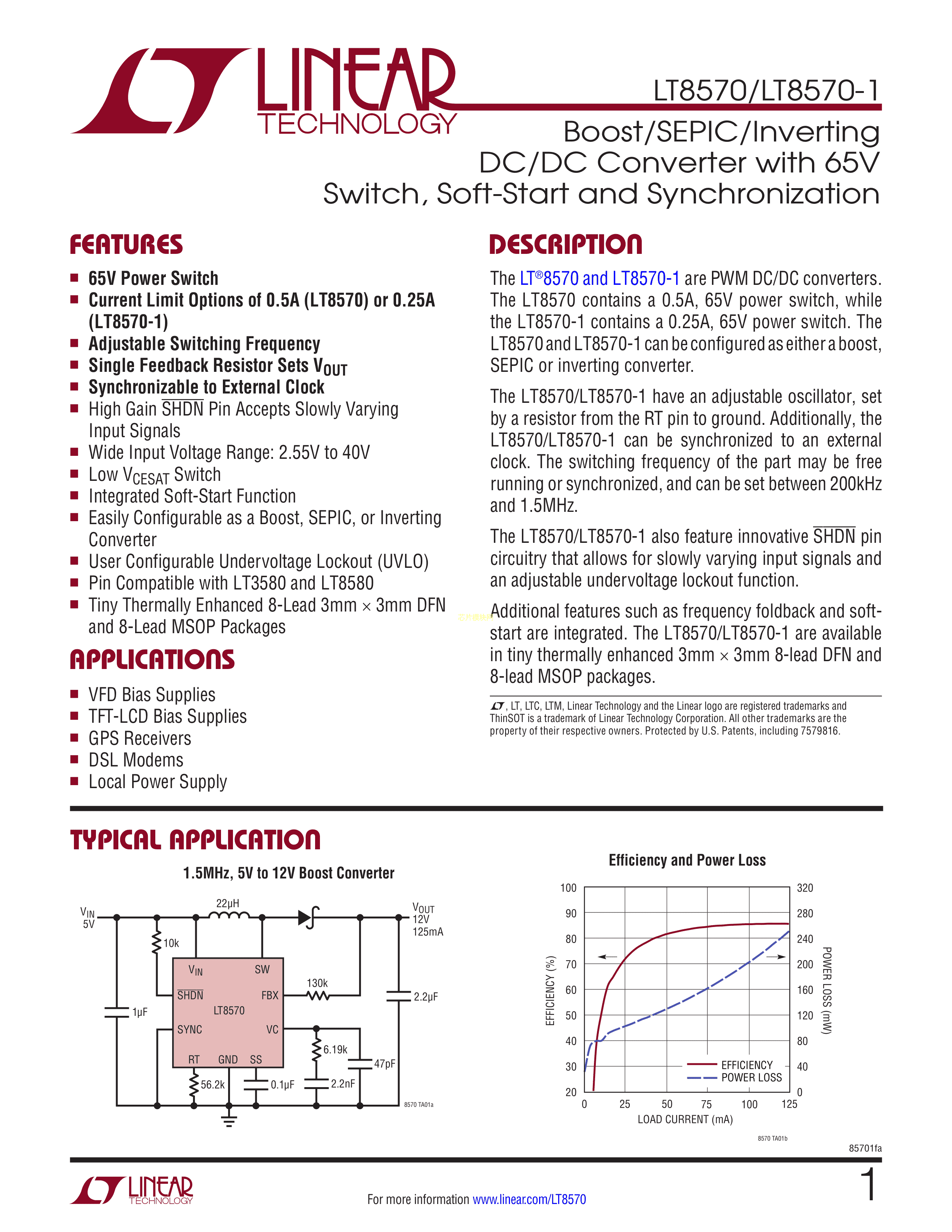 LT8570EMS8E-1#TRPBF数据手册MSOP-8封装ADI(亚德诺)-LINEARPDF规格书,中英文下载