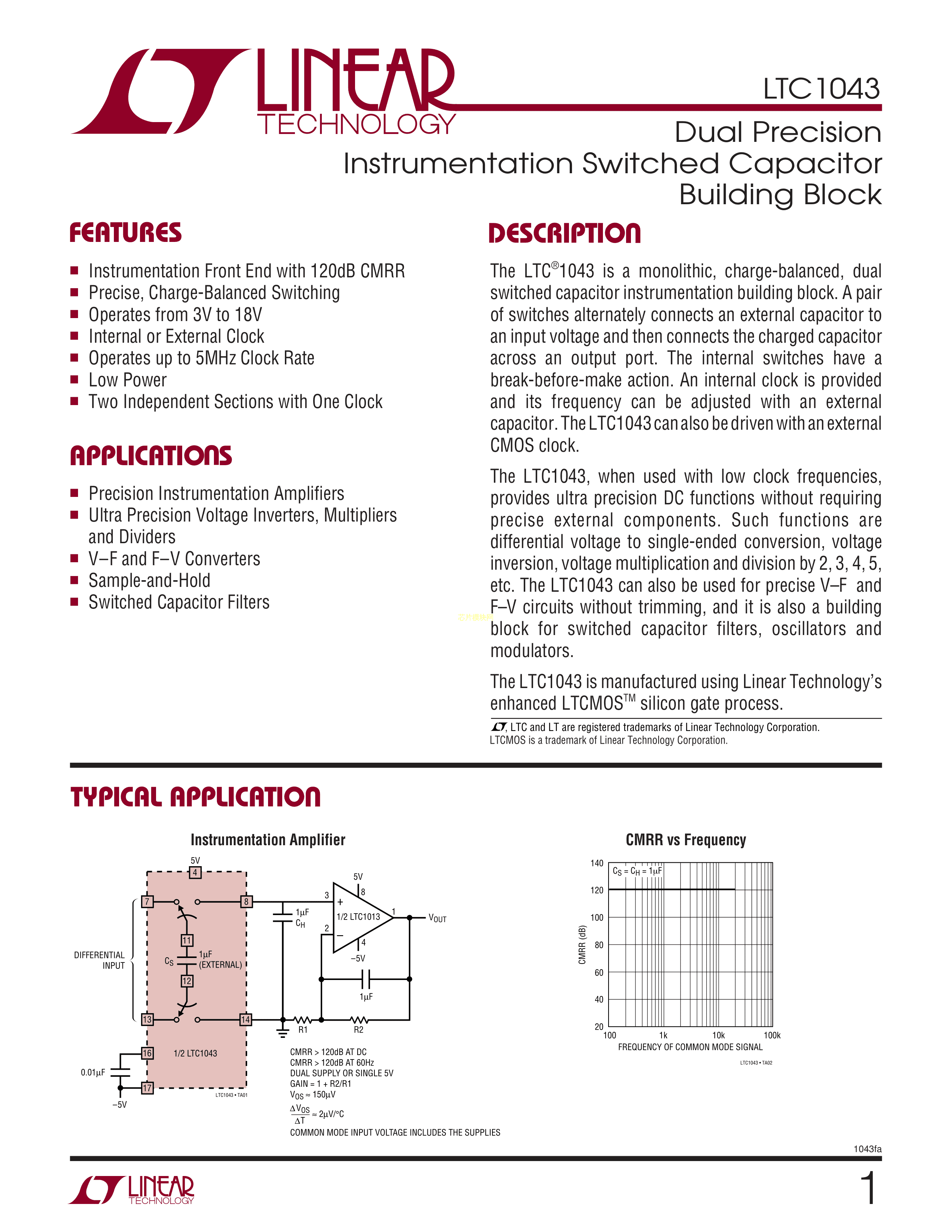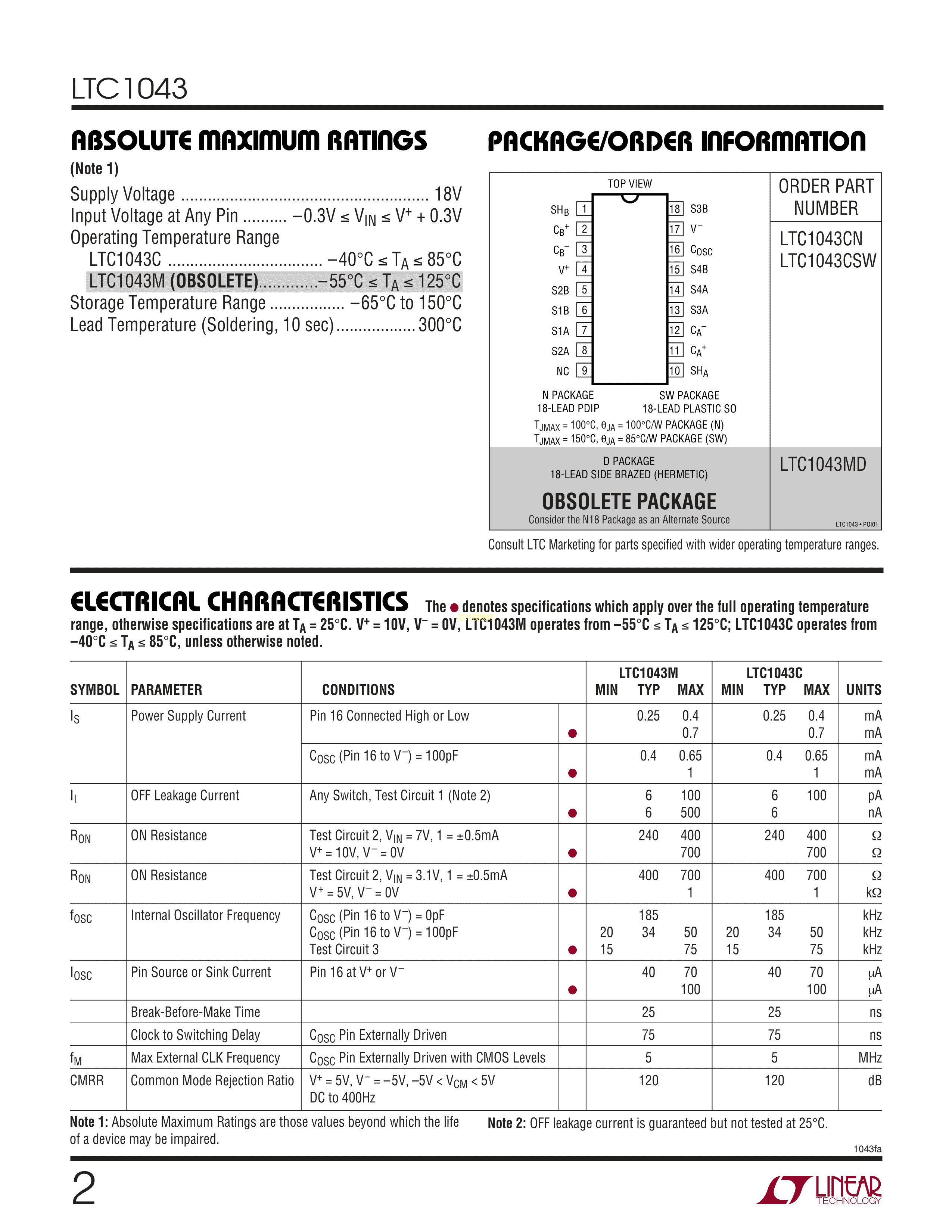 LTC1043CSW#PBF数据手册SO-18封装ADI(亚德诺)-LINEARPDF规格书,中英文