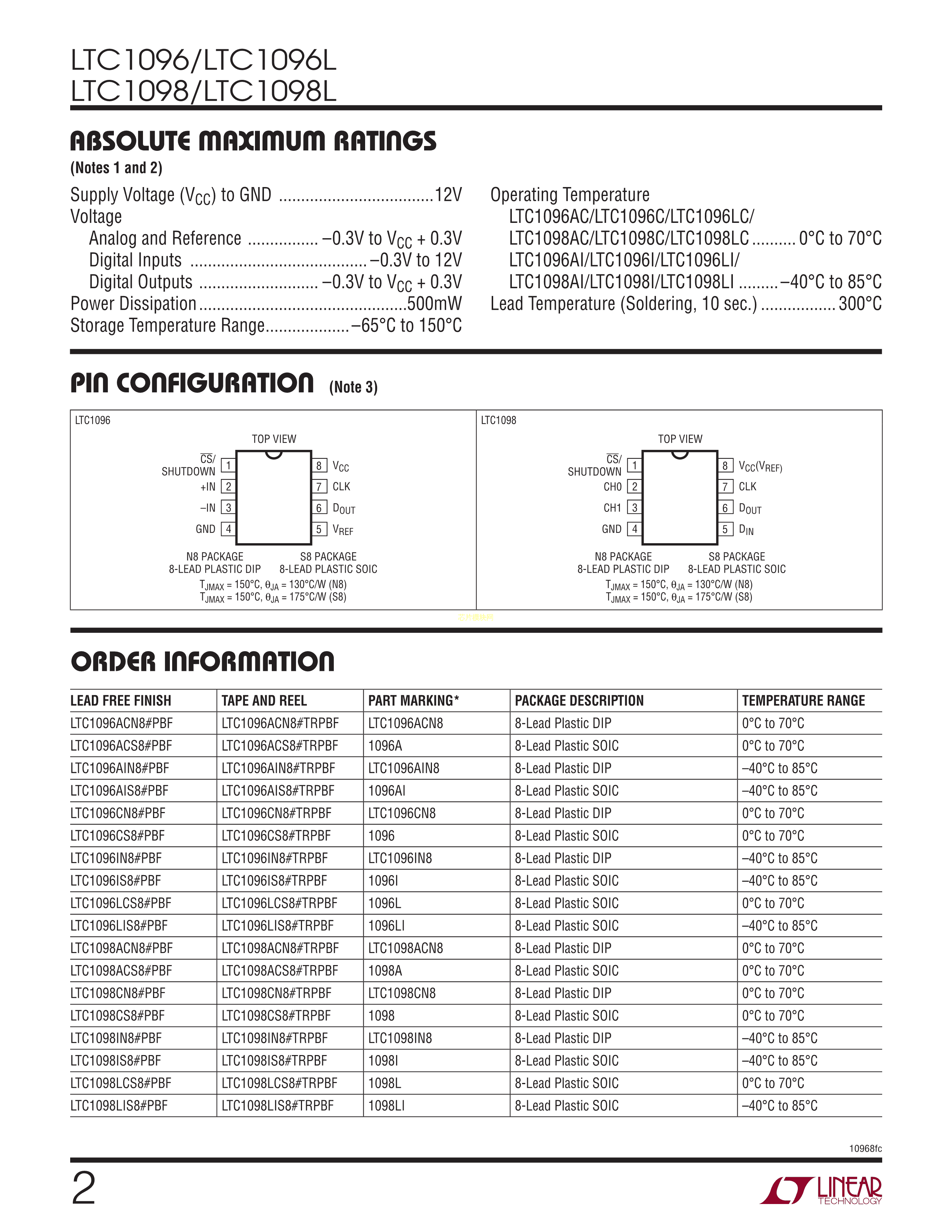 LTC1098CS8#TRPBF数据手册SOIC-8封装ADI(亚德诺)-LINEARPDF规格书,