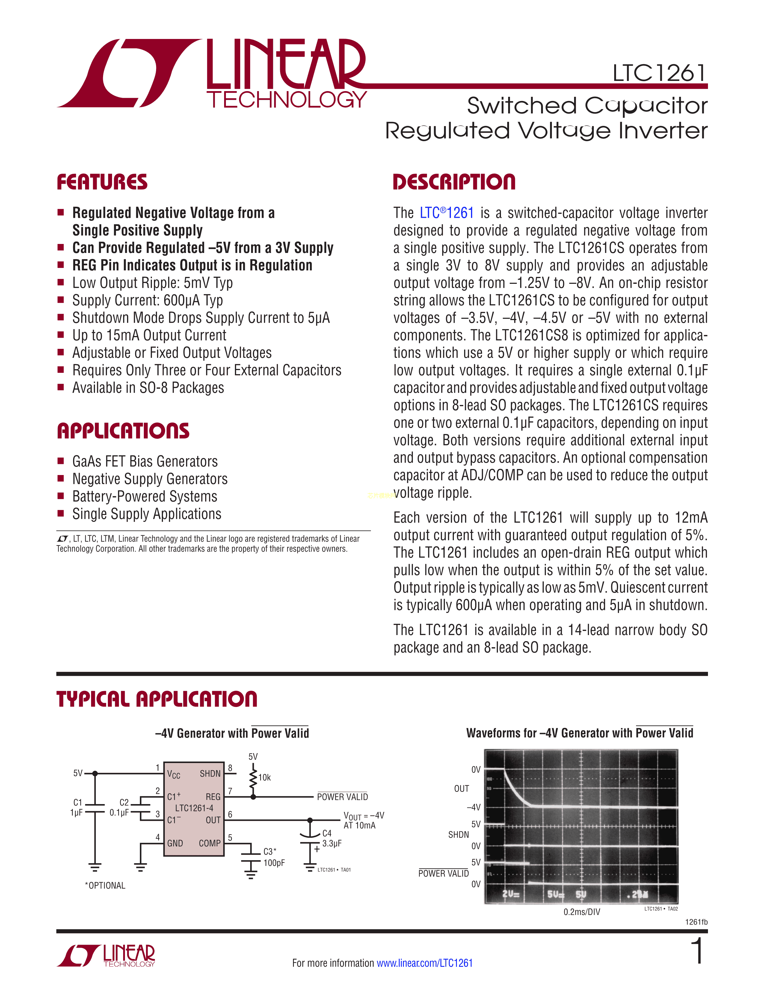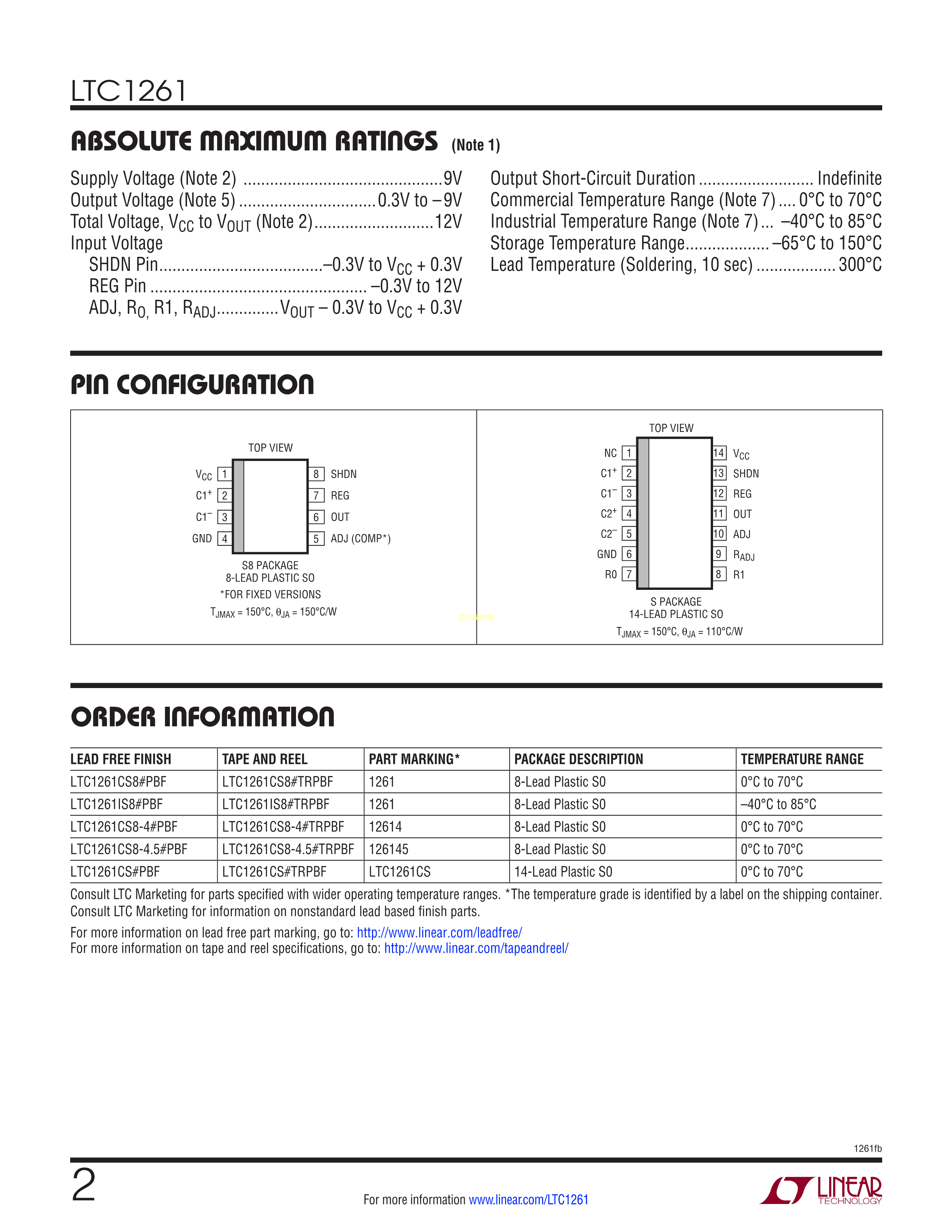 LTC1261CS8-4.5#PBF数据手册SO-8封装ADI(亚德诺)-LINEARPDF规格书,