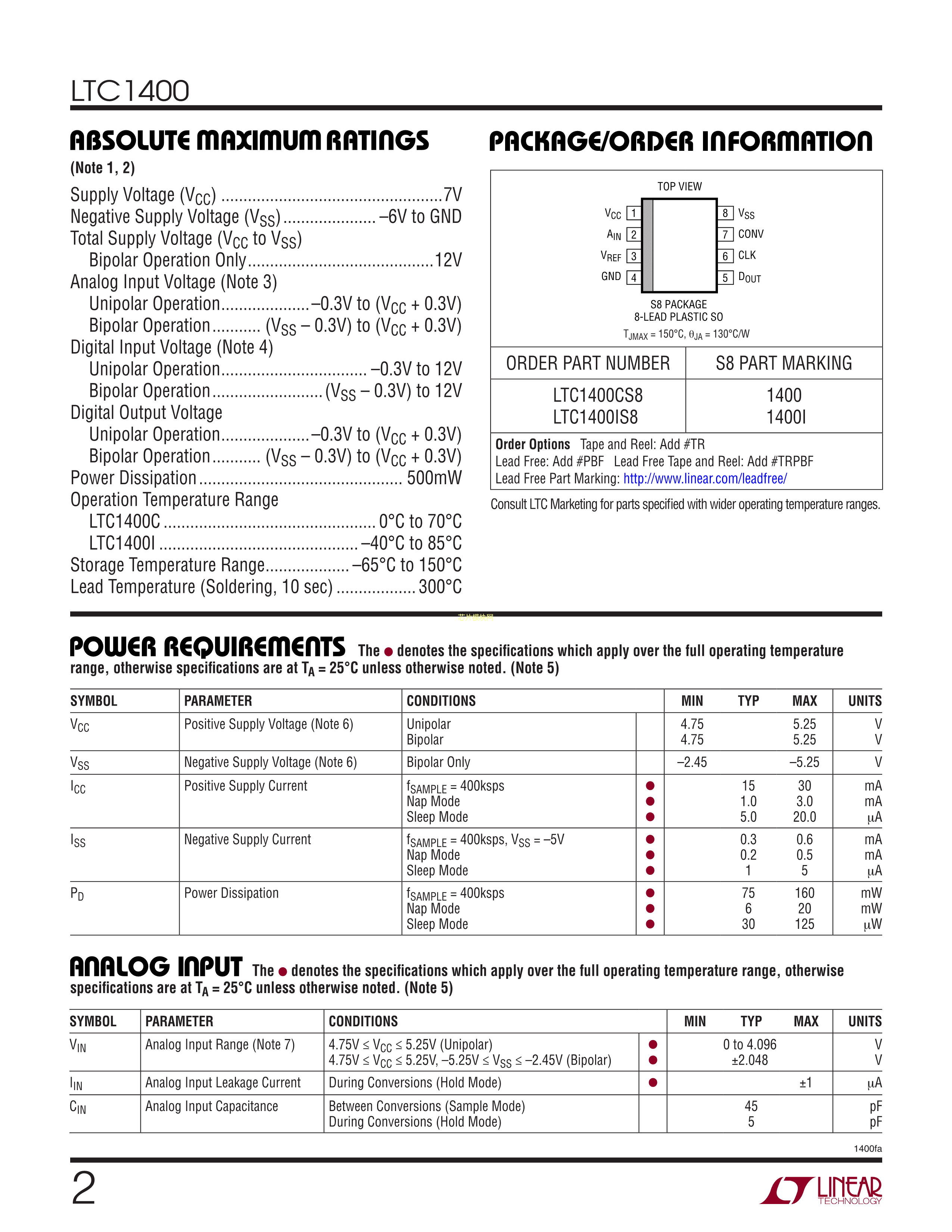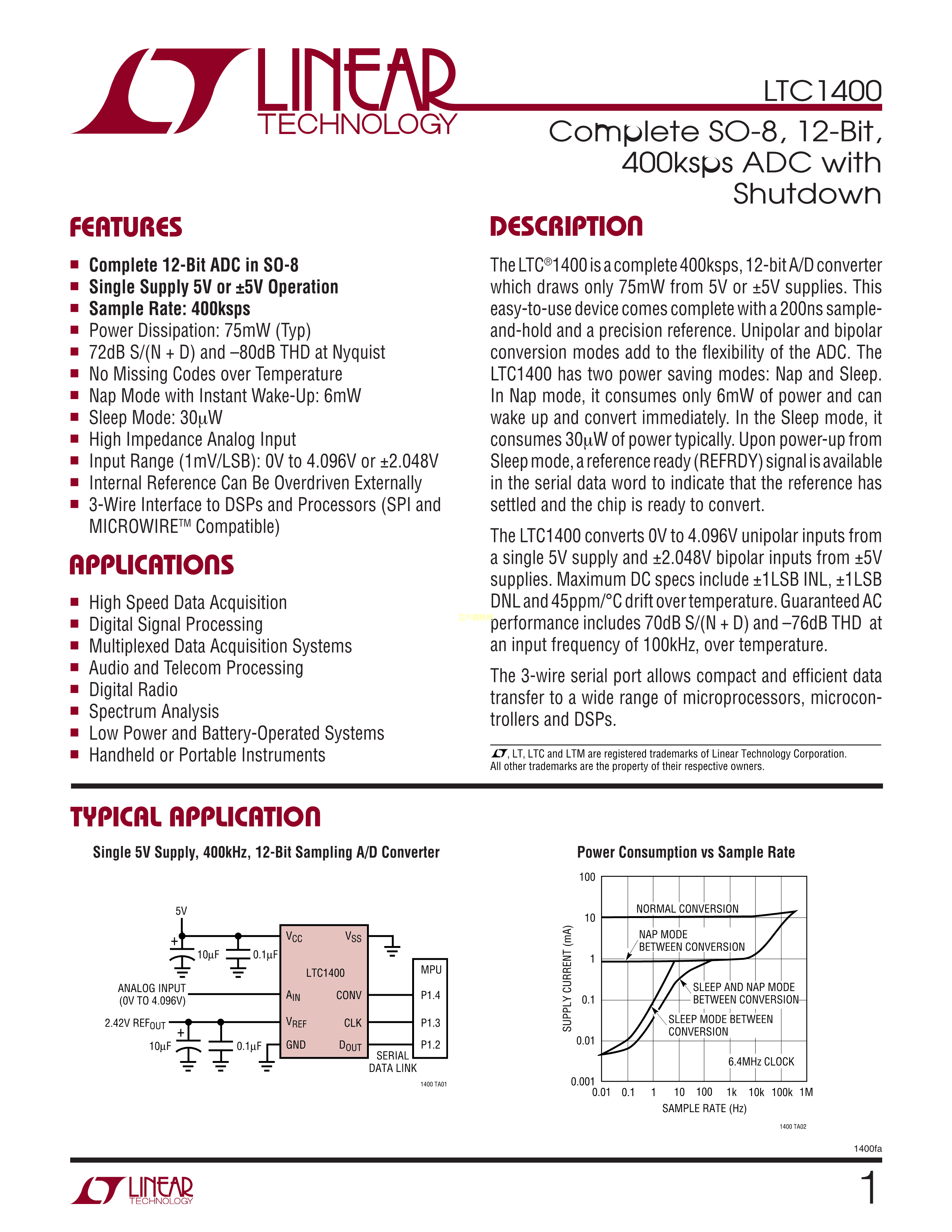 LTC1400IS8#TRPBF数据手册SO-8封装ADI(亚德诺)-LINEARPDF规格书,中英