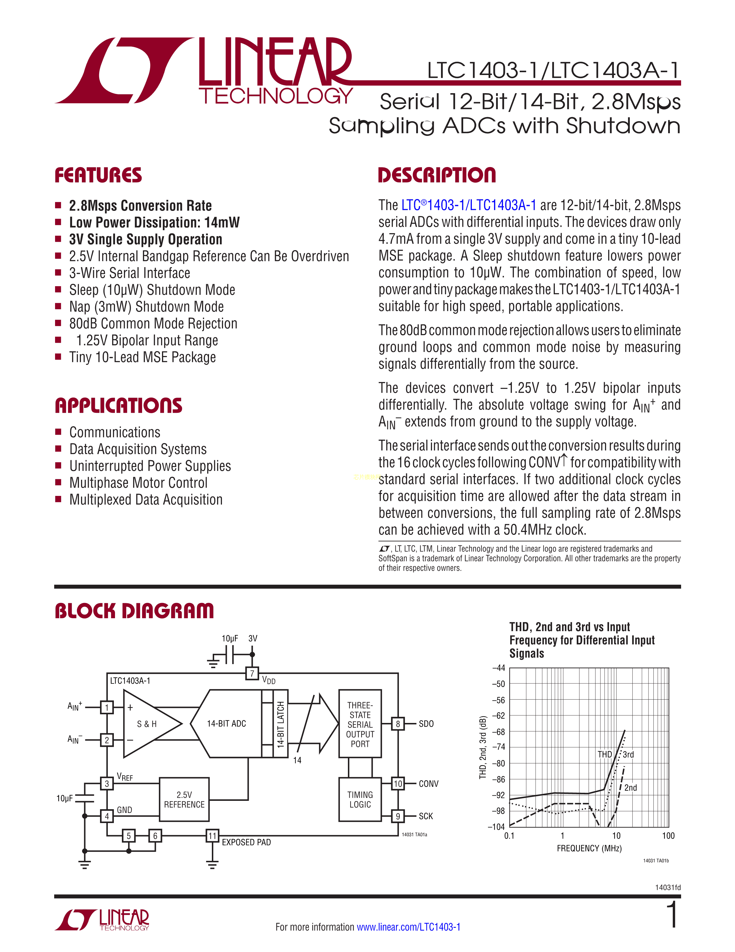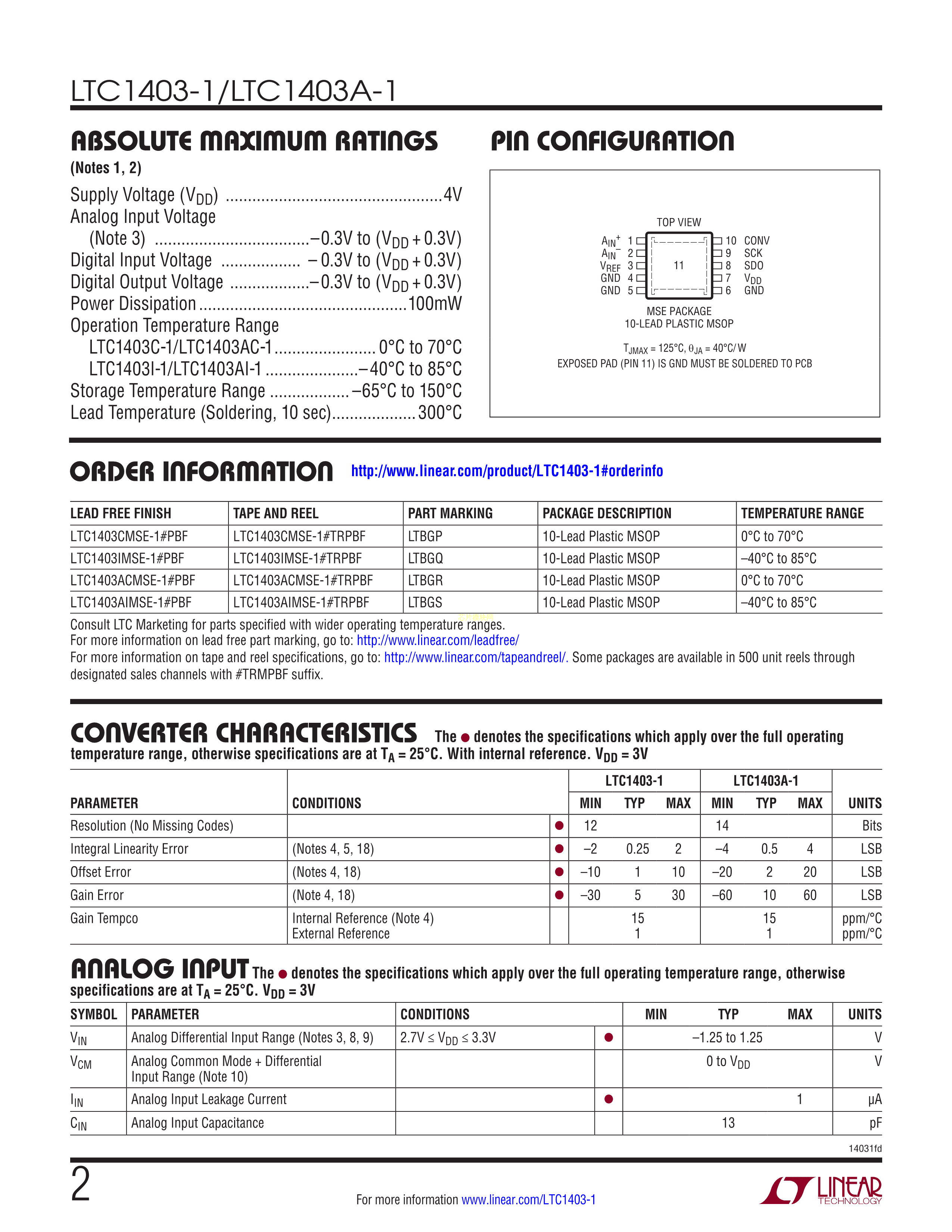 LTC1403CMSE-1#TRPBF数据手册MSOP-10封装ADI(亚德诺)-LINEARPDF