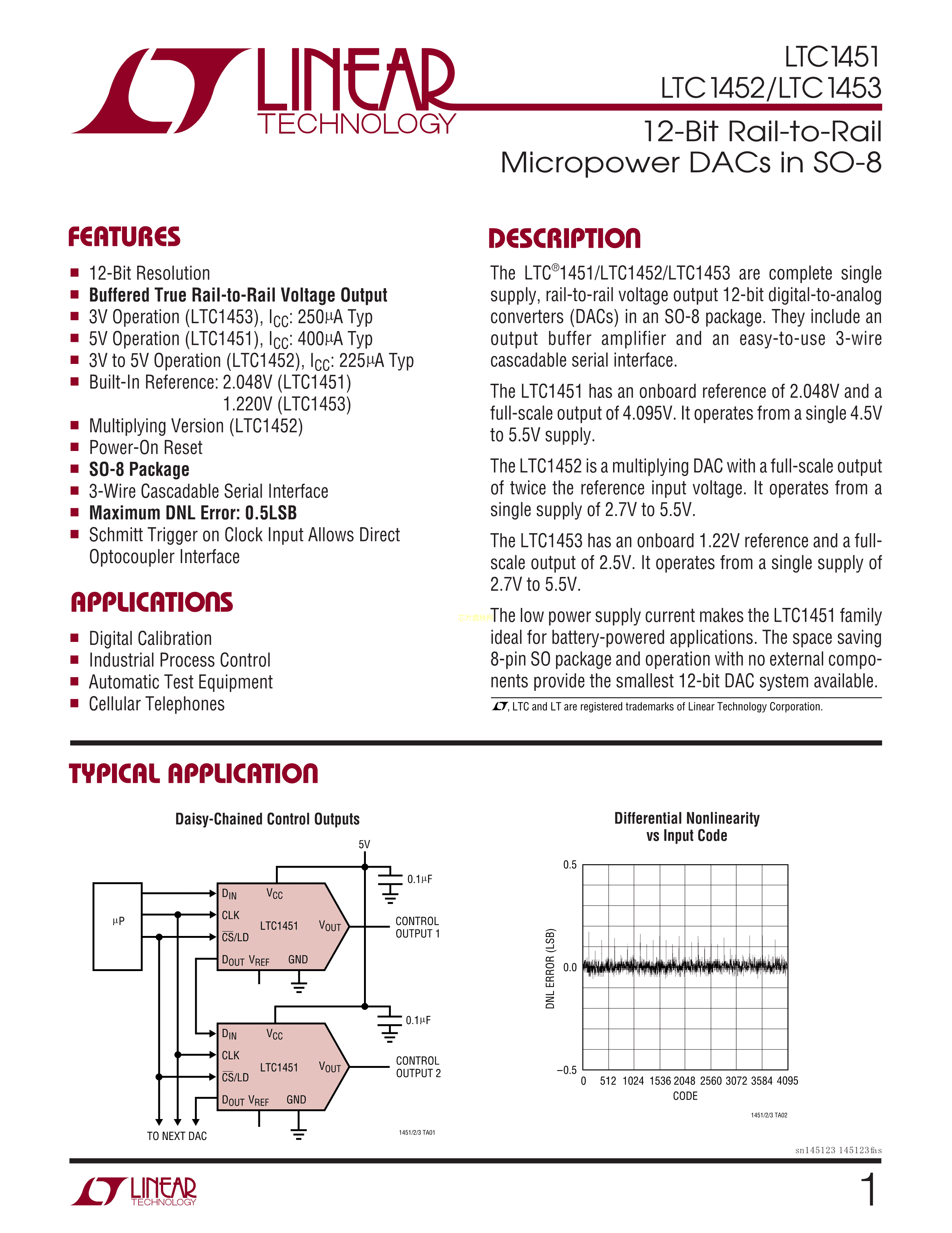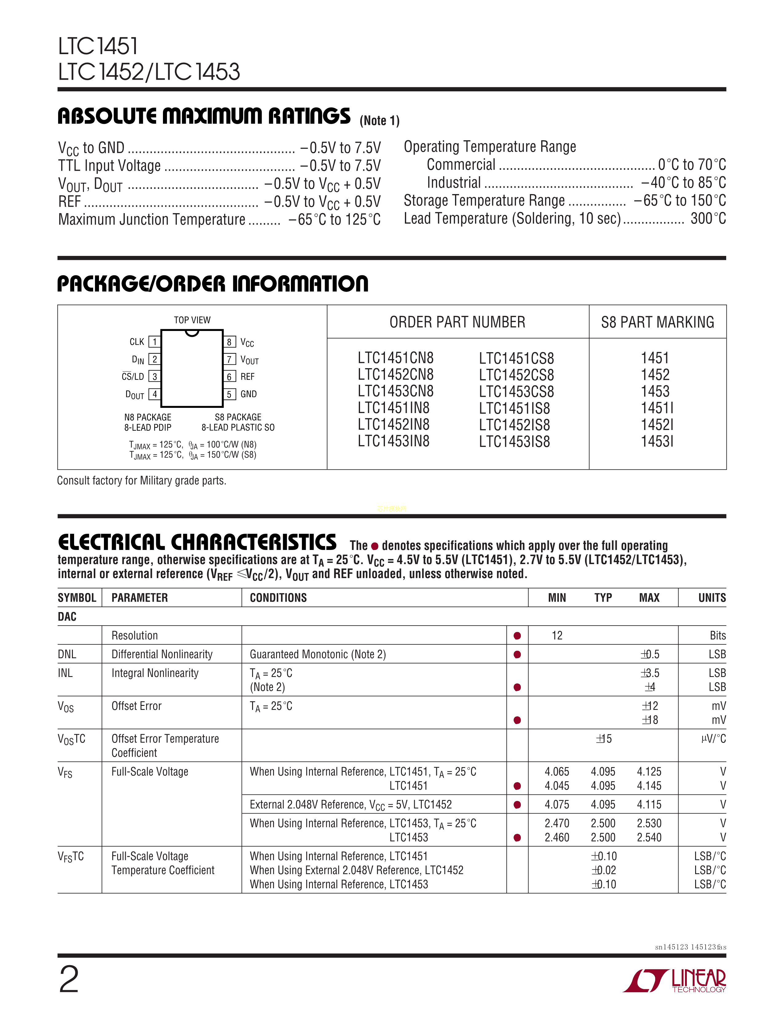 LTC1452IN8#PBF数据手册PDIP-8封装ADI(亚德诺)-LINEARPDF规格书,中英