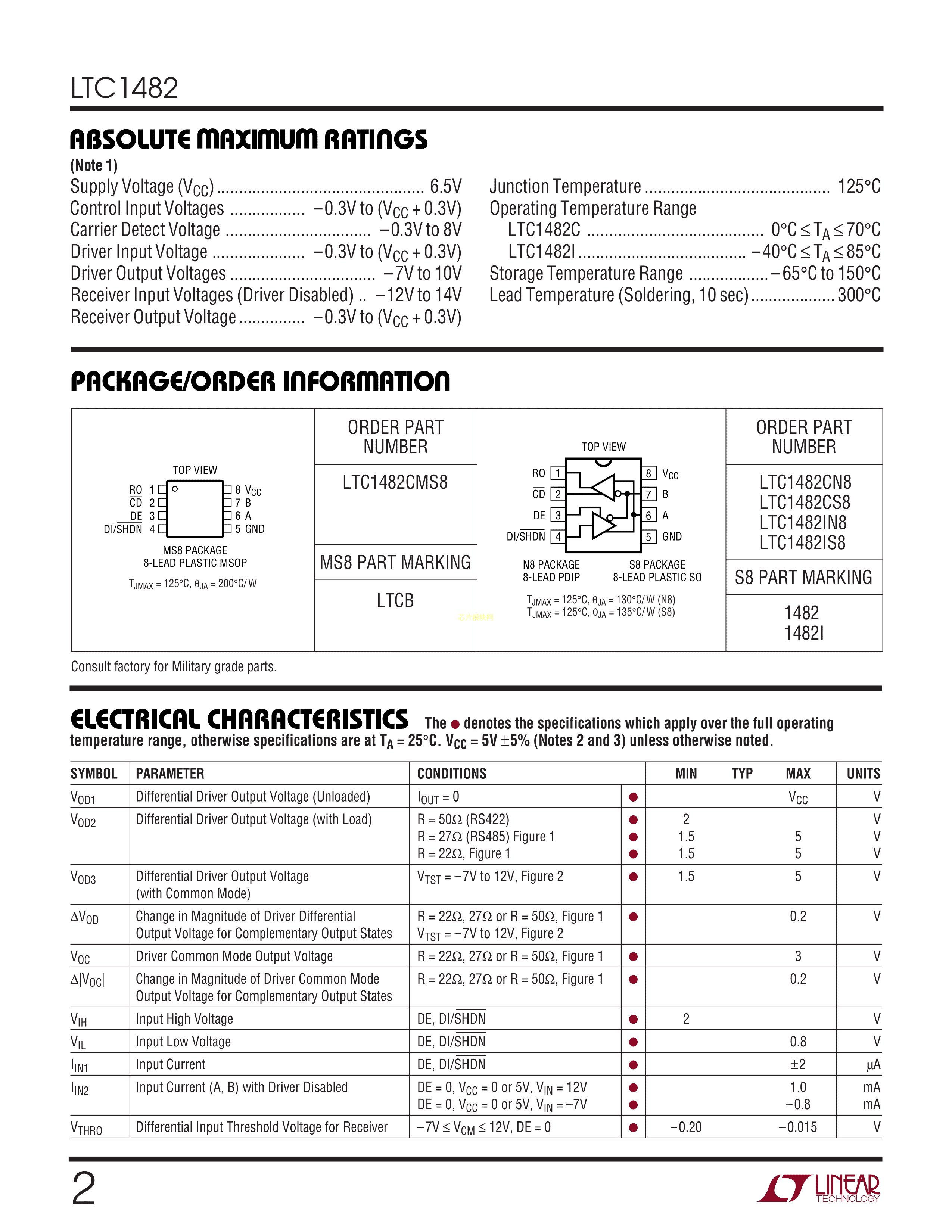 LTC1482CN8#PBF数据手册PDIP-8封装ADI(亚德诺)-LINEARPDF规格书,中英