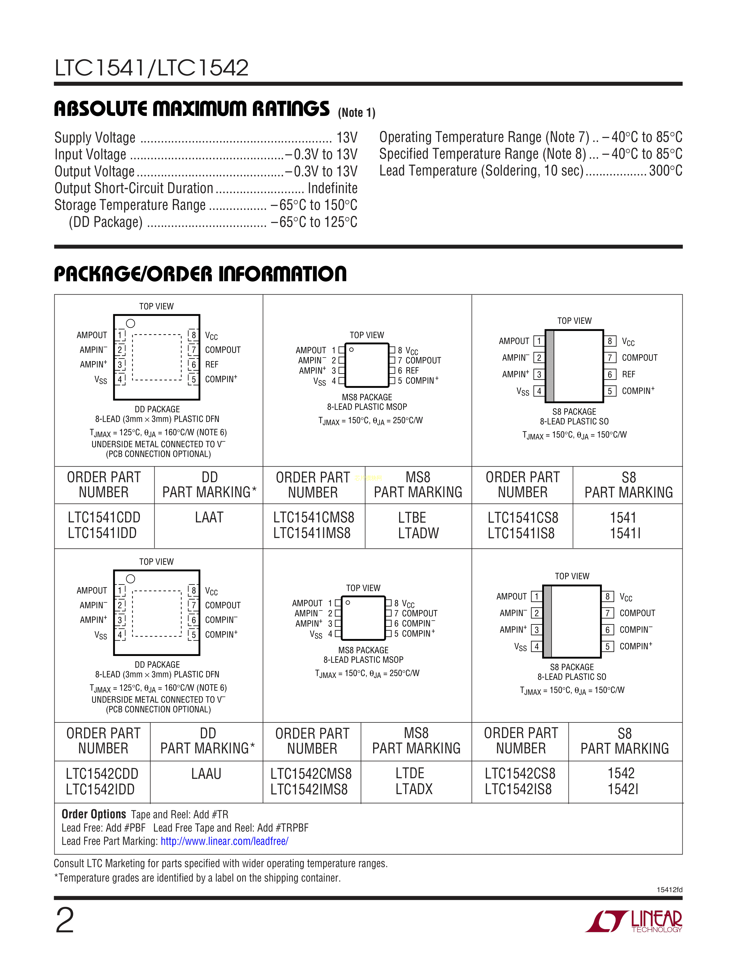 LTC1542CDD#PBF数据手册DFN-8封装ADI(亚德诺)-LINEARPDF规格书,中英文下载